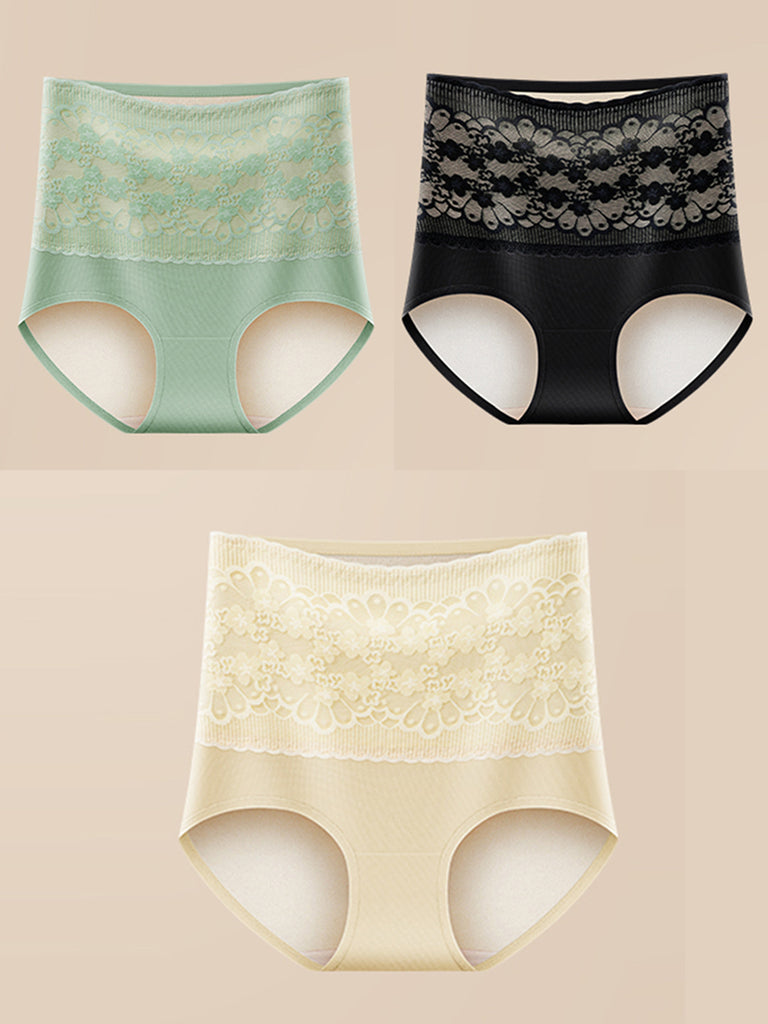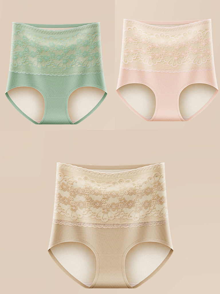 3 Pieces Women Pure Color High Waist Cotton Underwear