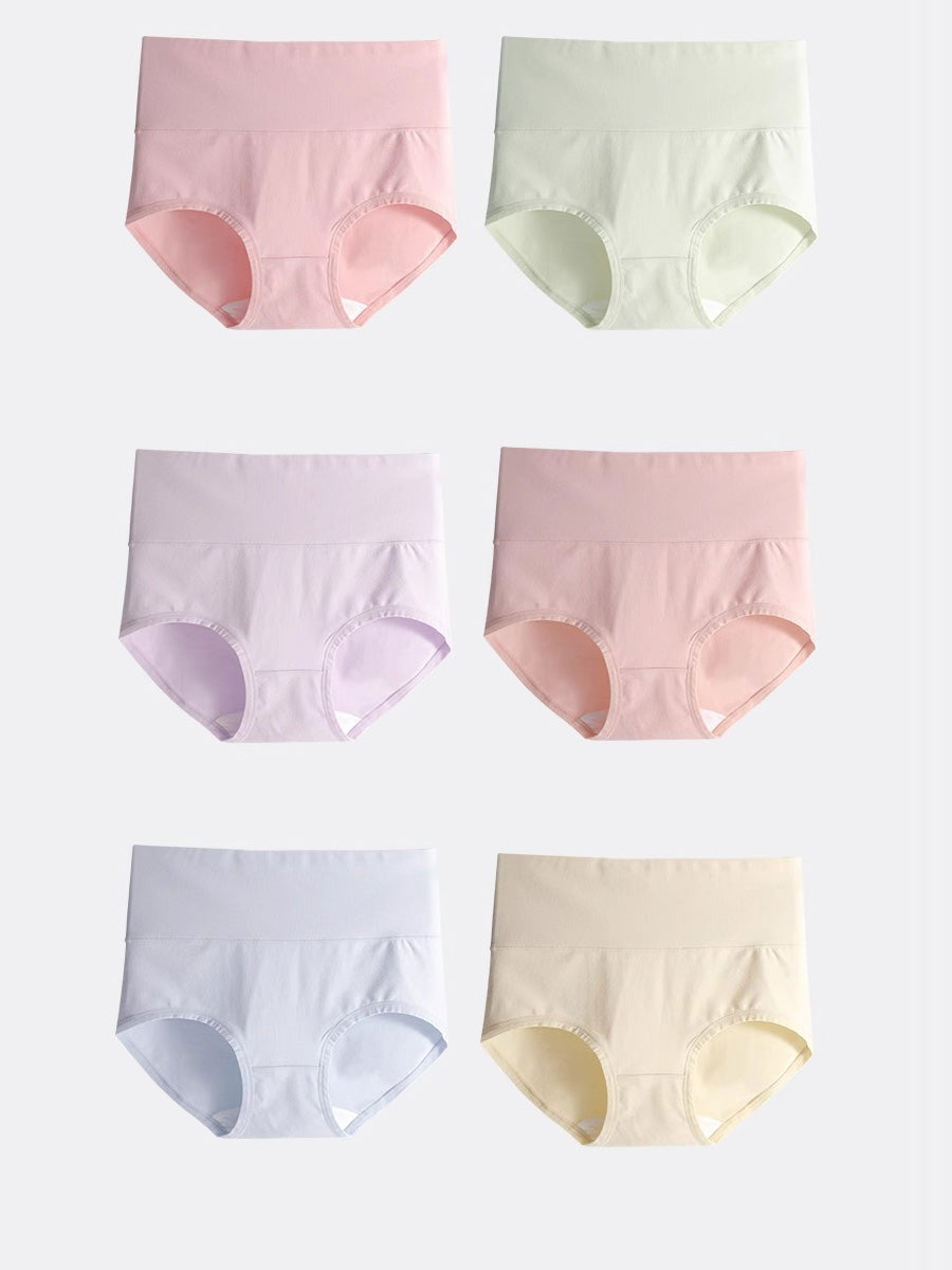 6 Pieces Women Casual Pure Color High Waist Underwear