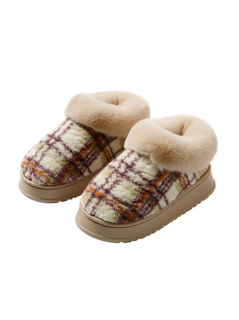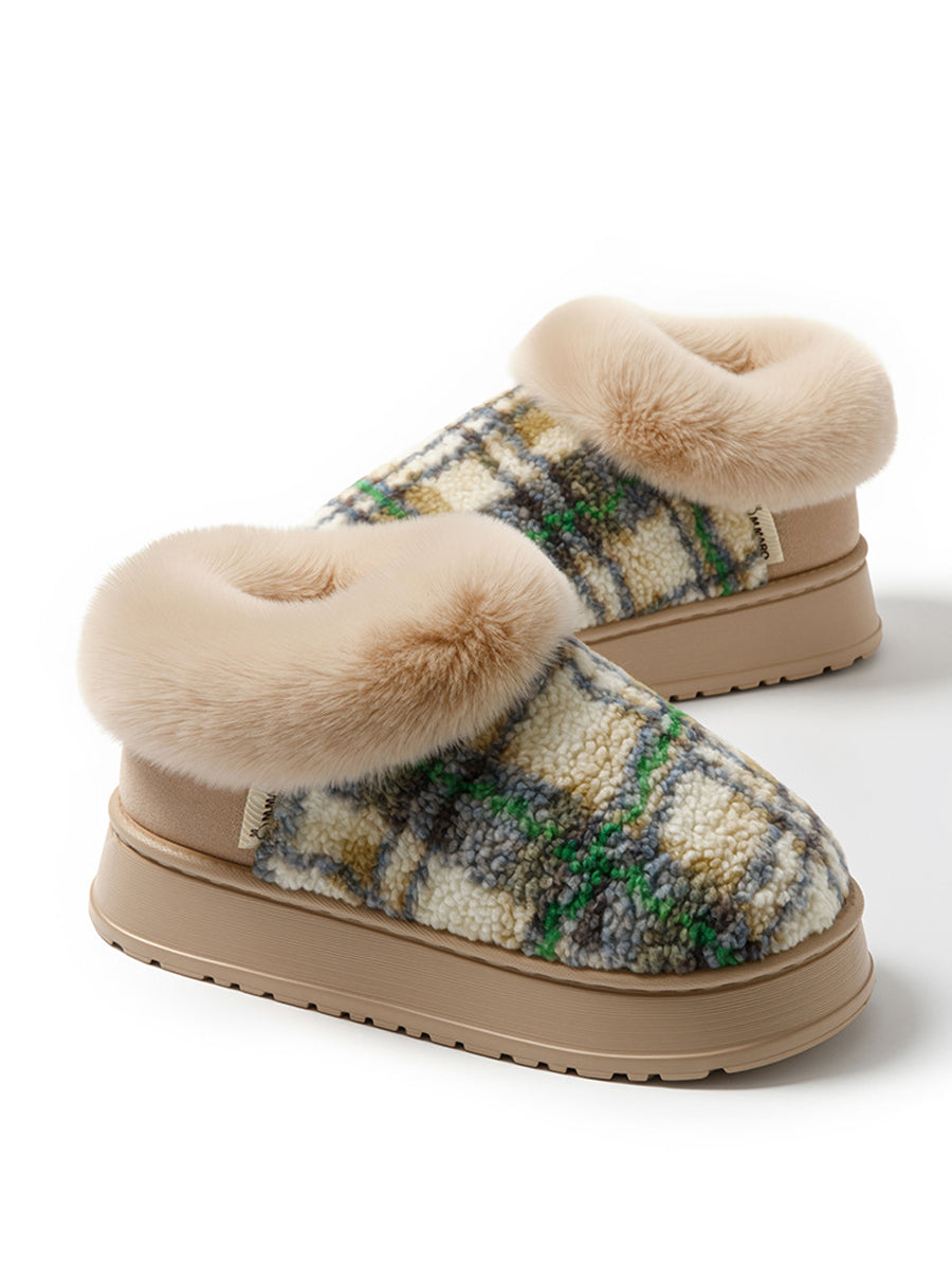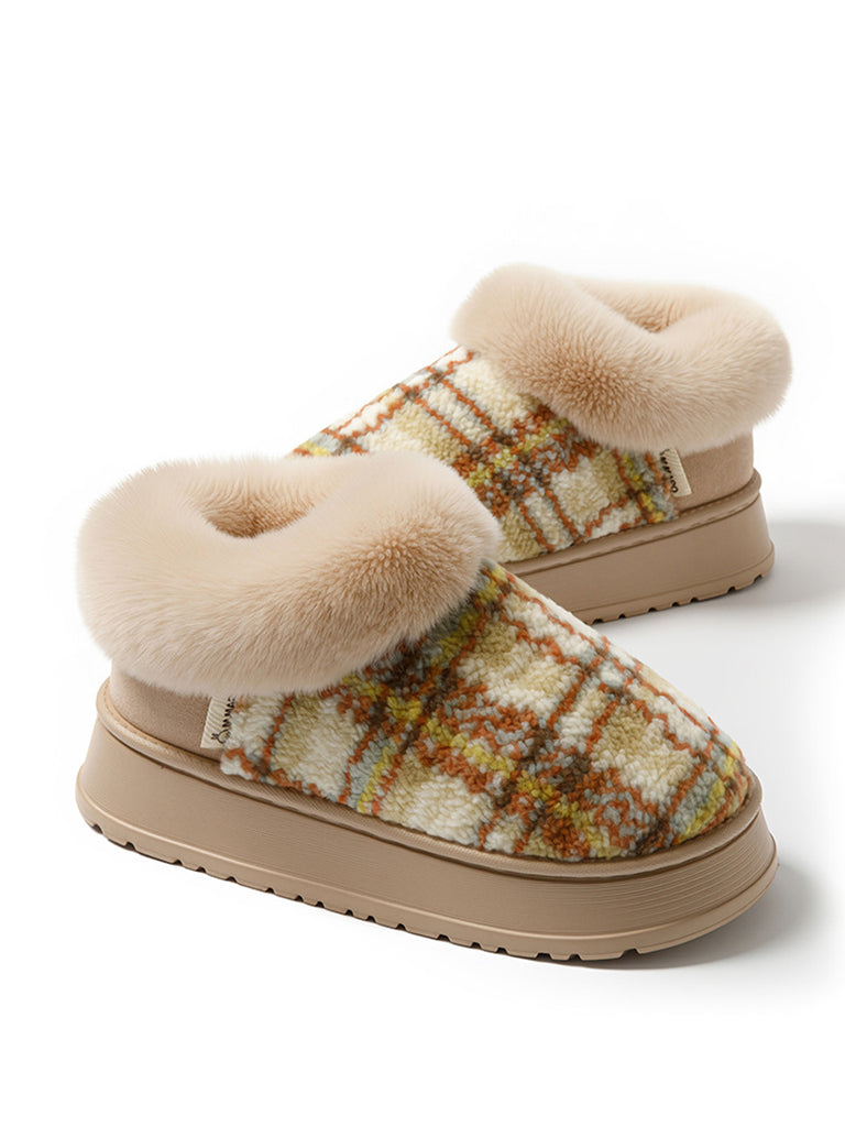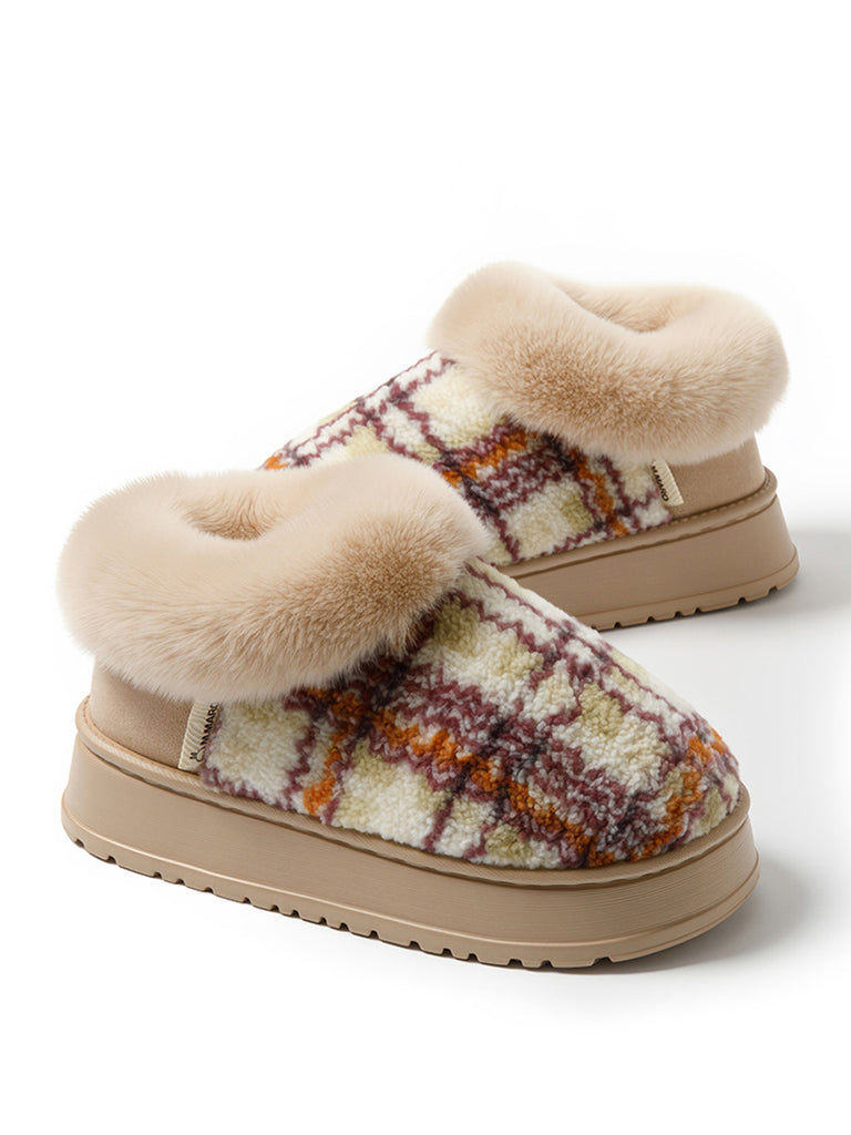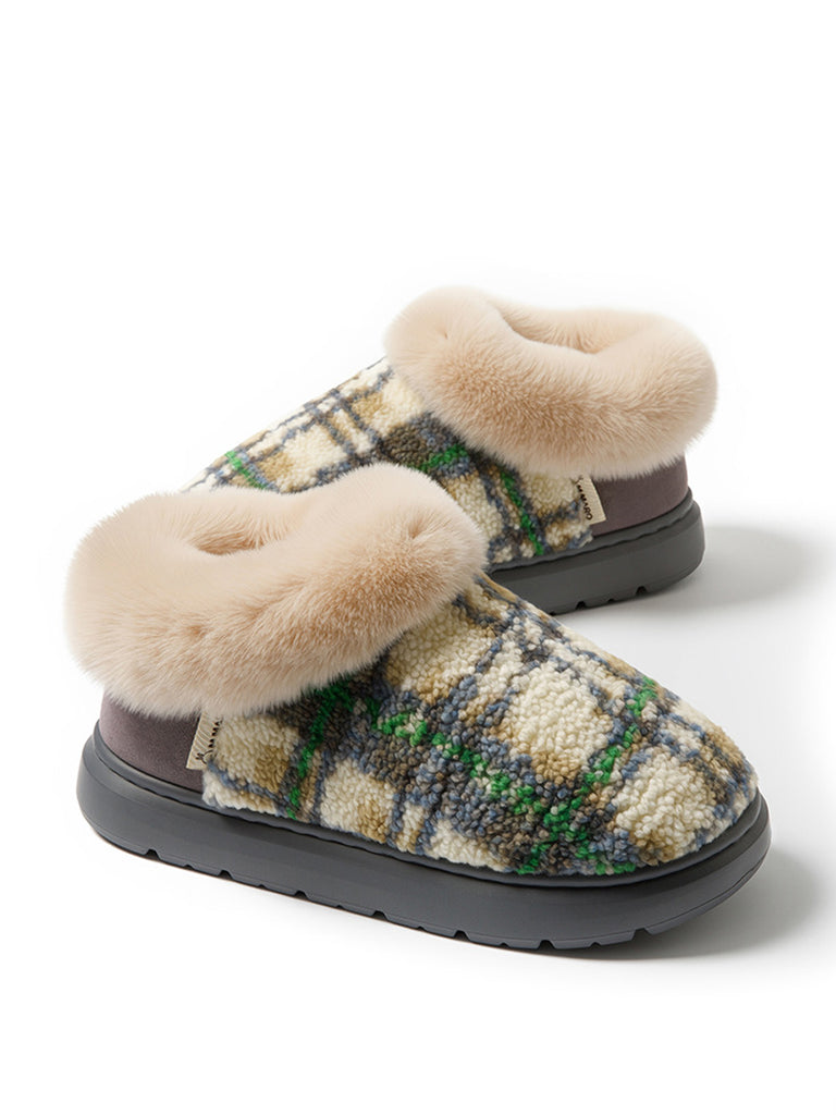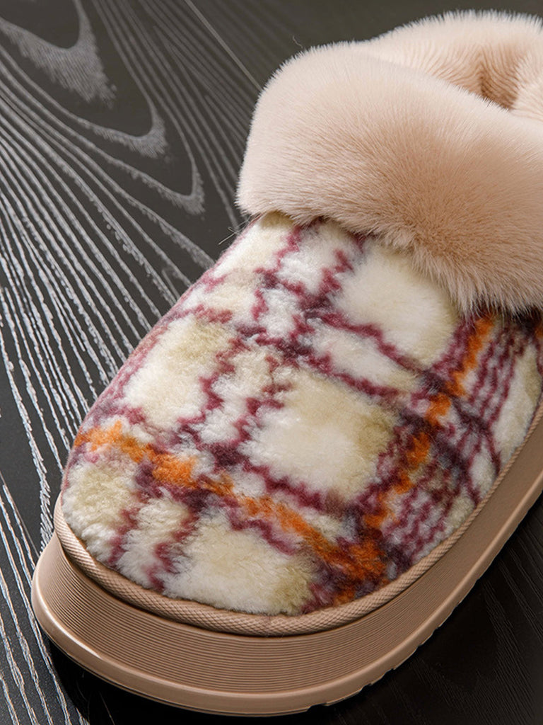 Couple Winter Casual Plaid Indoor Plush Slippers