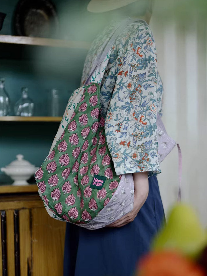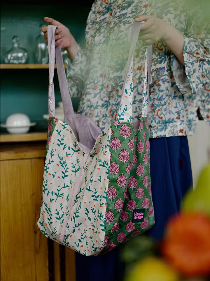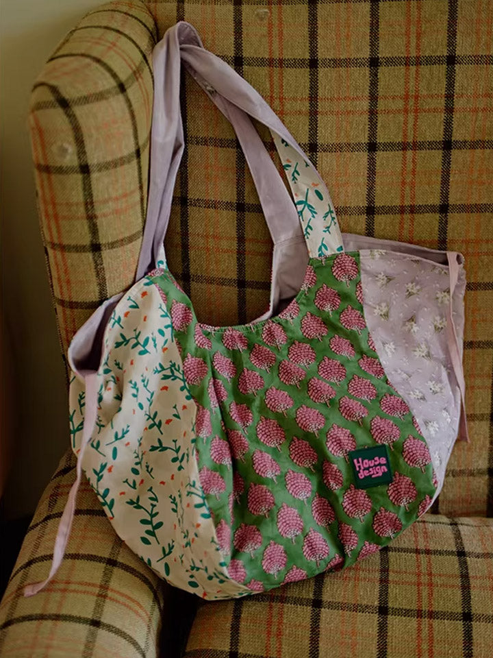 Retro Berry Block Printing Spliced Shoulder Bag