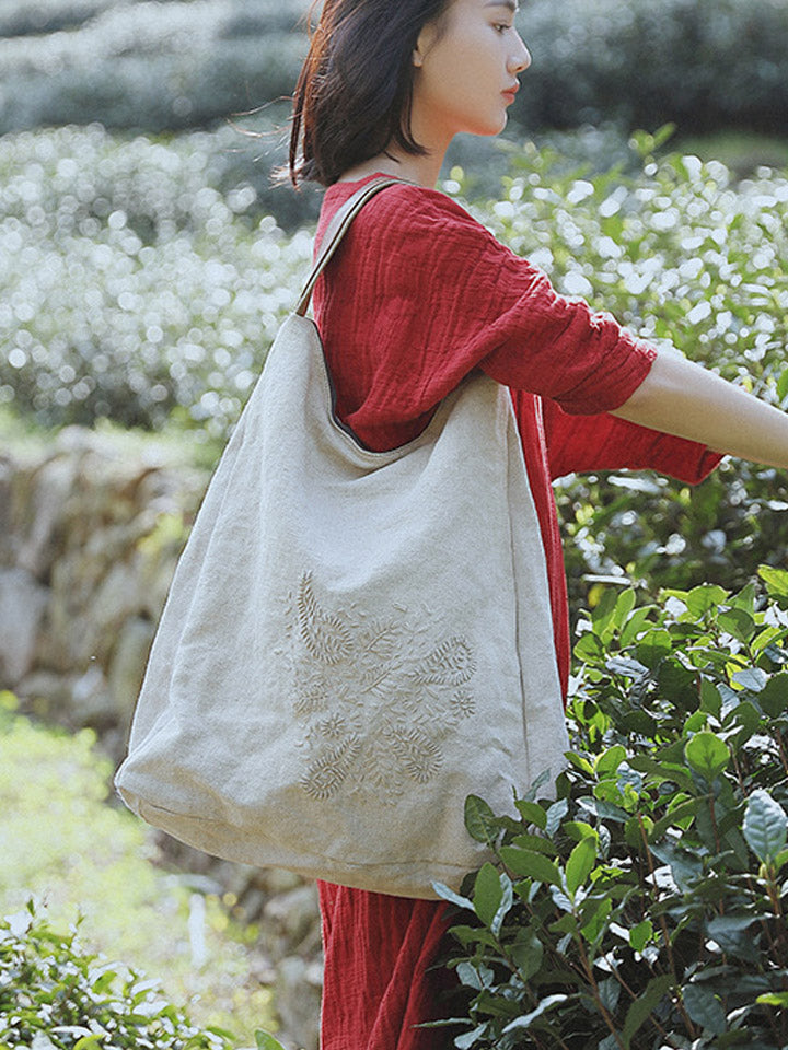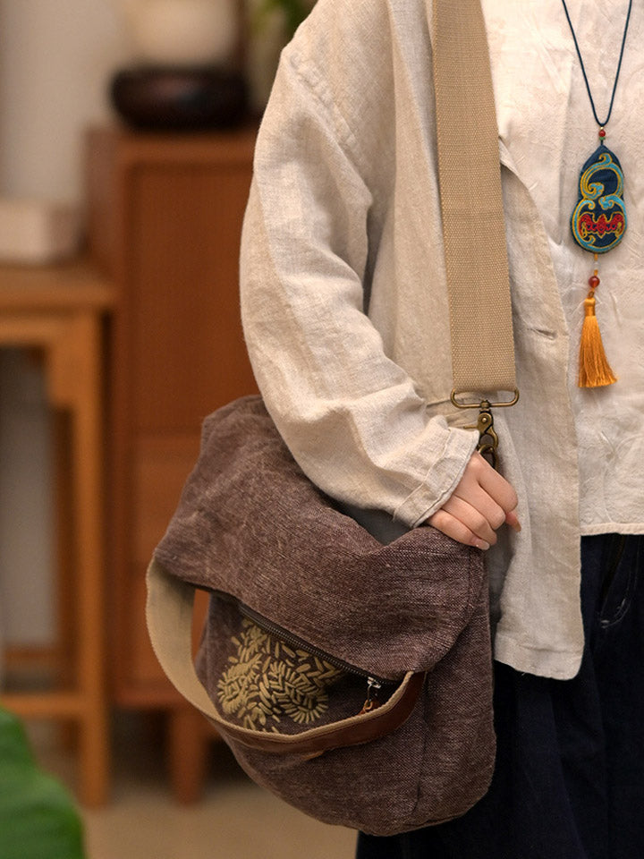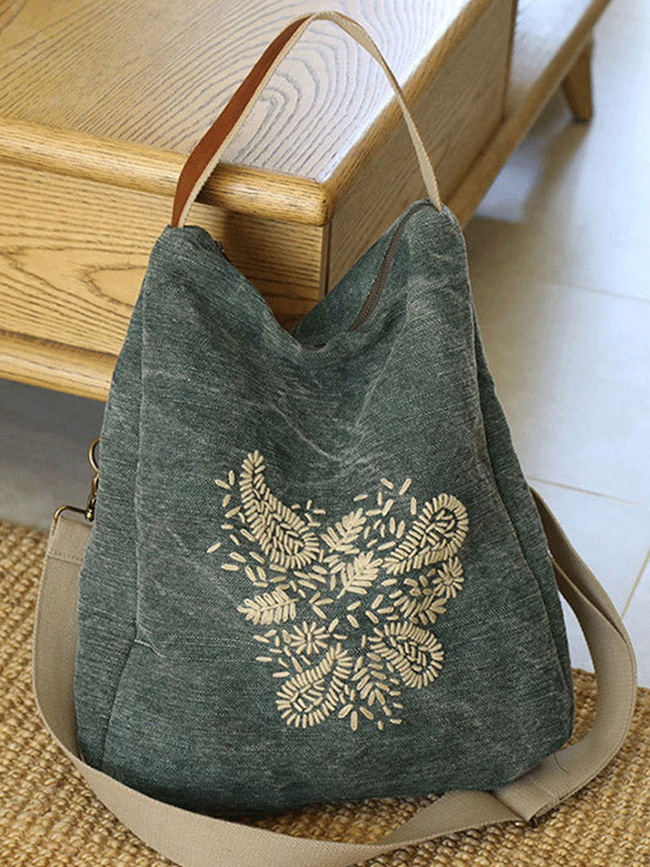 Retro Embroidered Flower Shoulder Bag