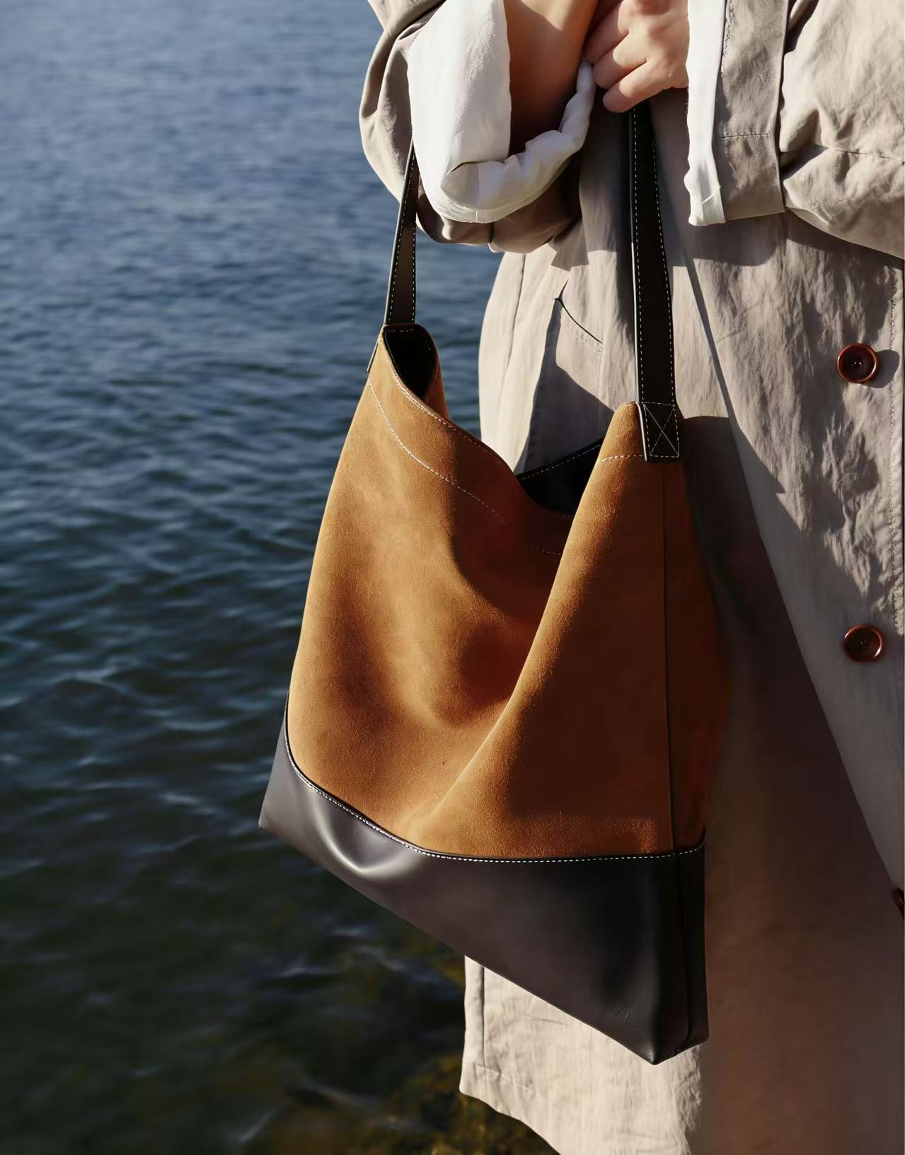 Retro Suede Leather Tote Bag