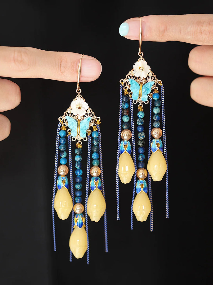 Vintage Butterfly Beads Tassel Earrings