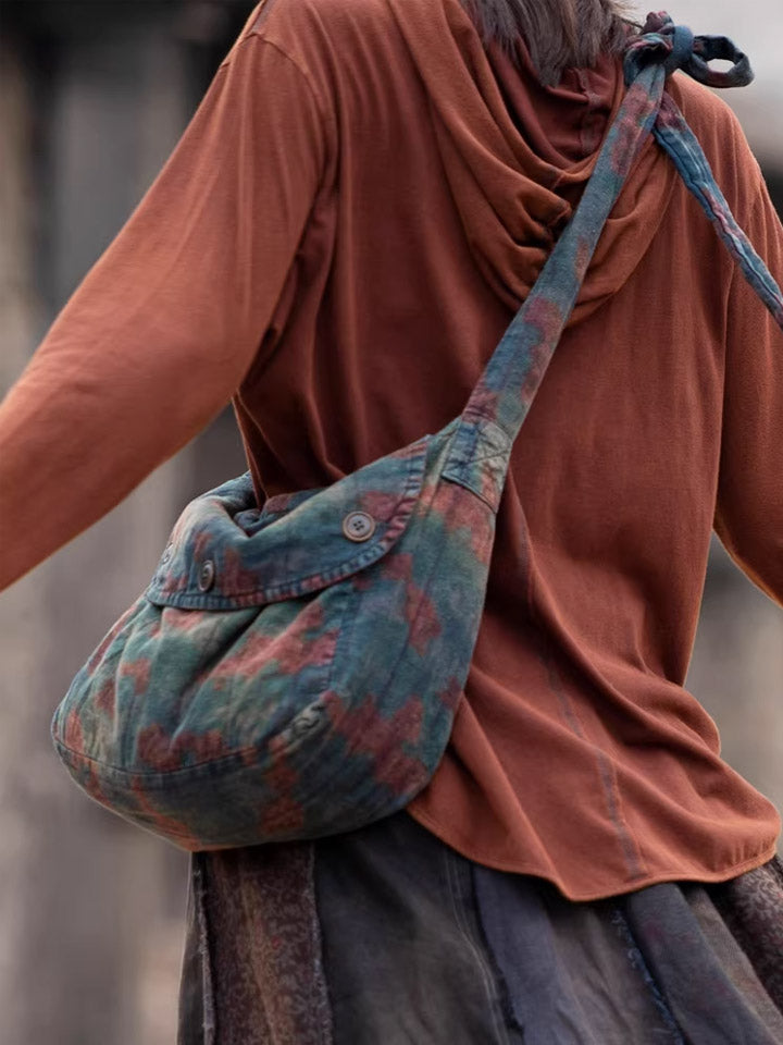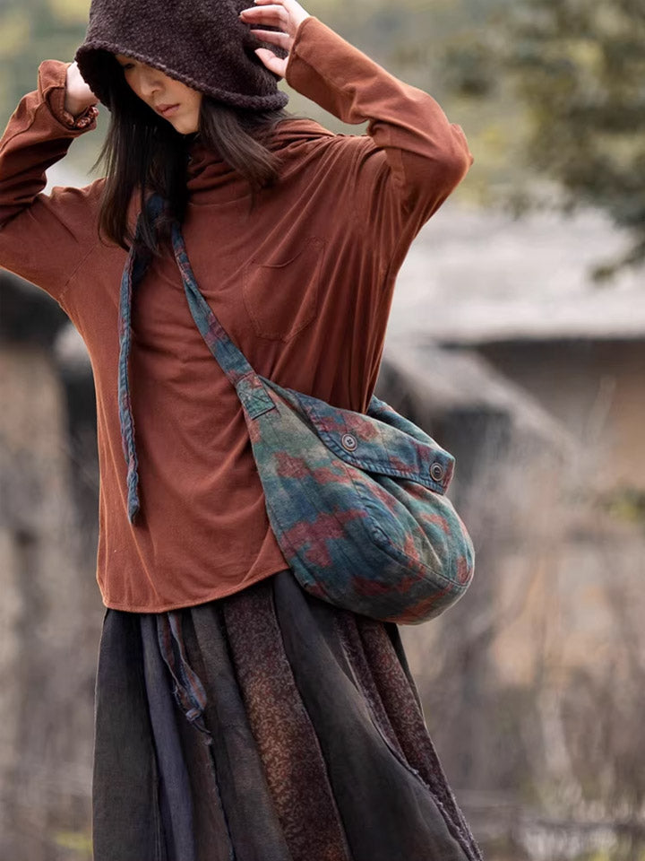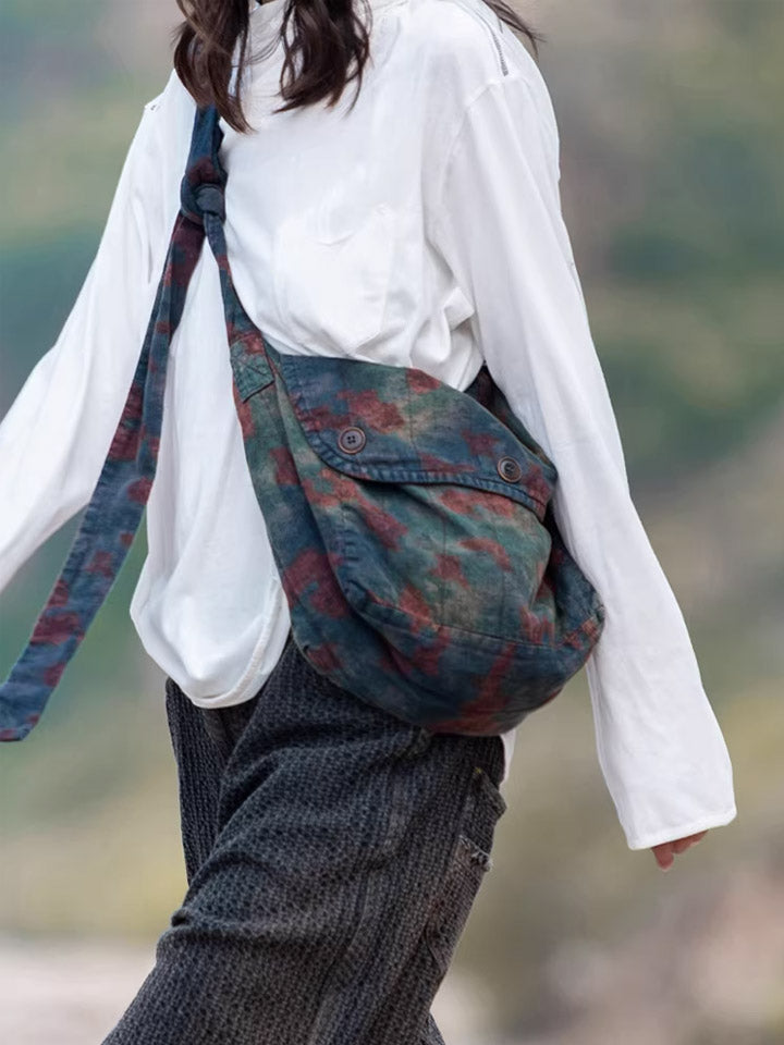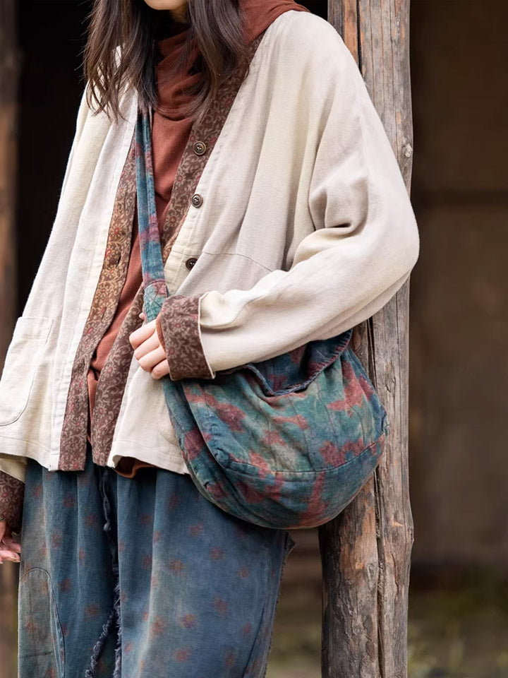 Vintage Distressed Floral Linen Crossbody Bag