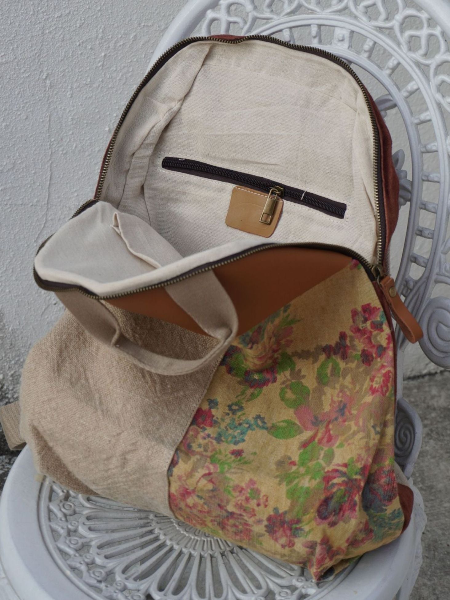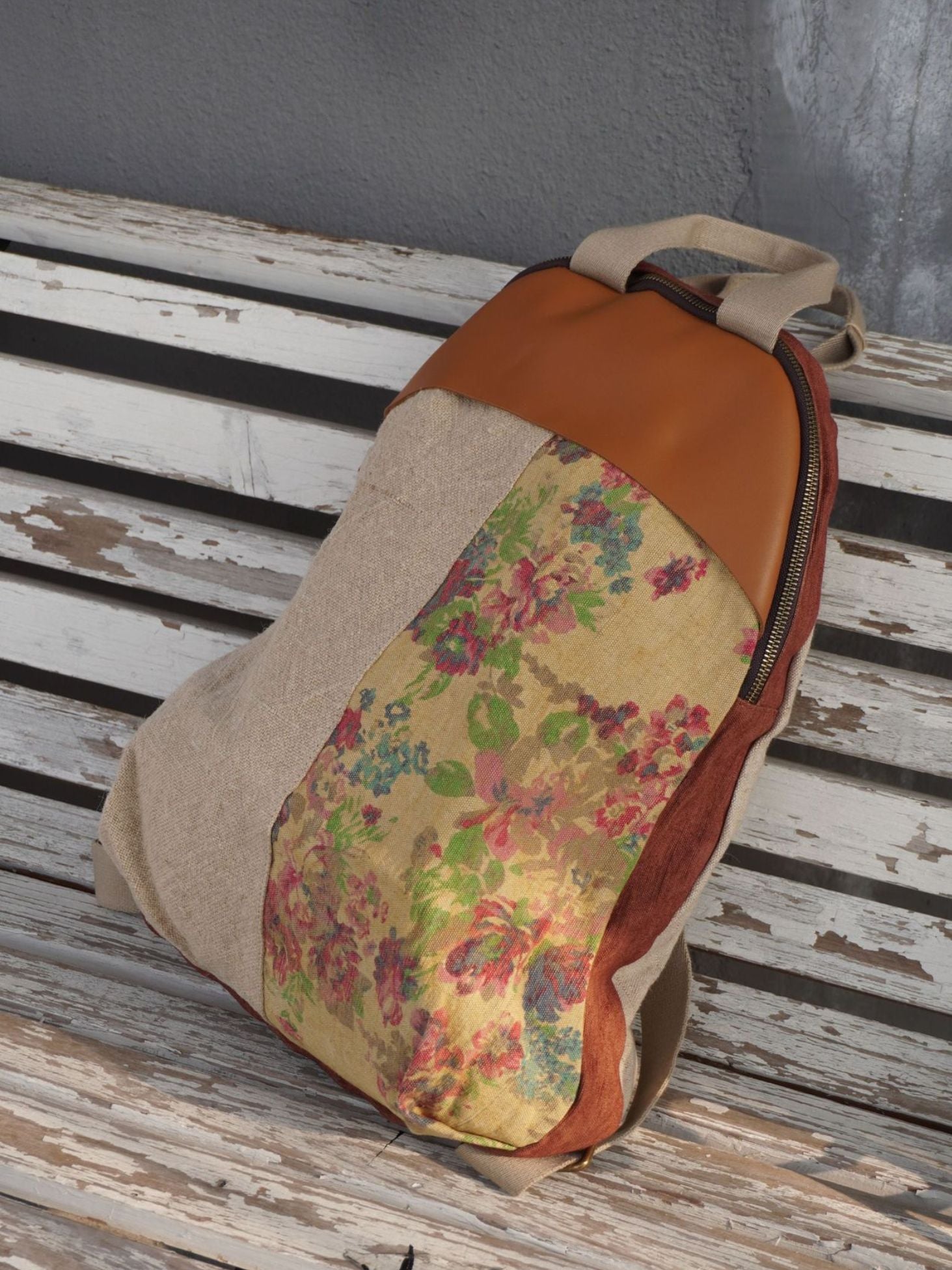 Vintage Linen Spliced Leather Backpack