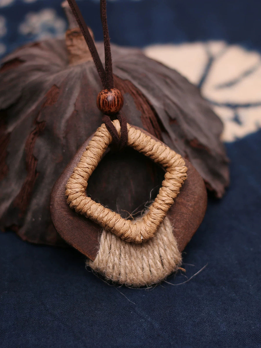 Vintage Wooden Hemp Rope Weave Sweater Necklace