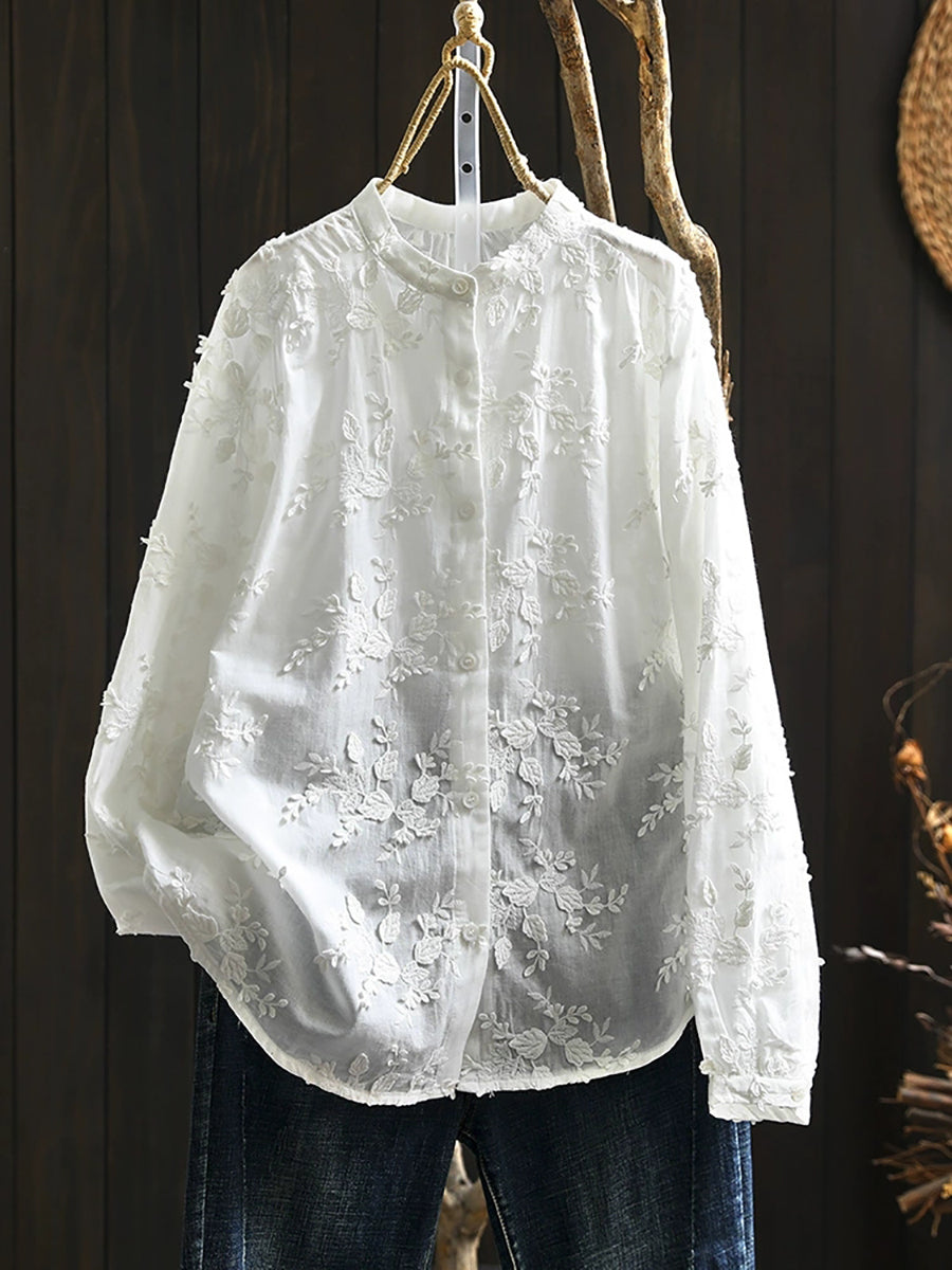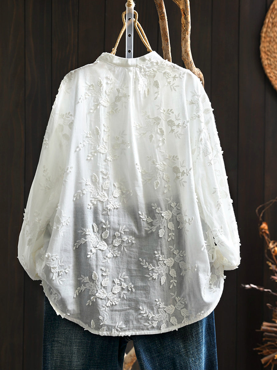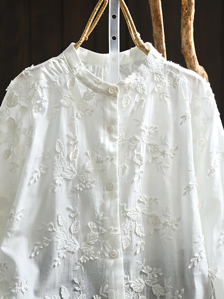 Women Artsy 100%Cotton Embroidery Stand Collar Blouse