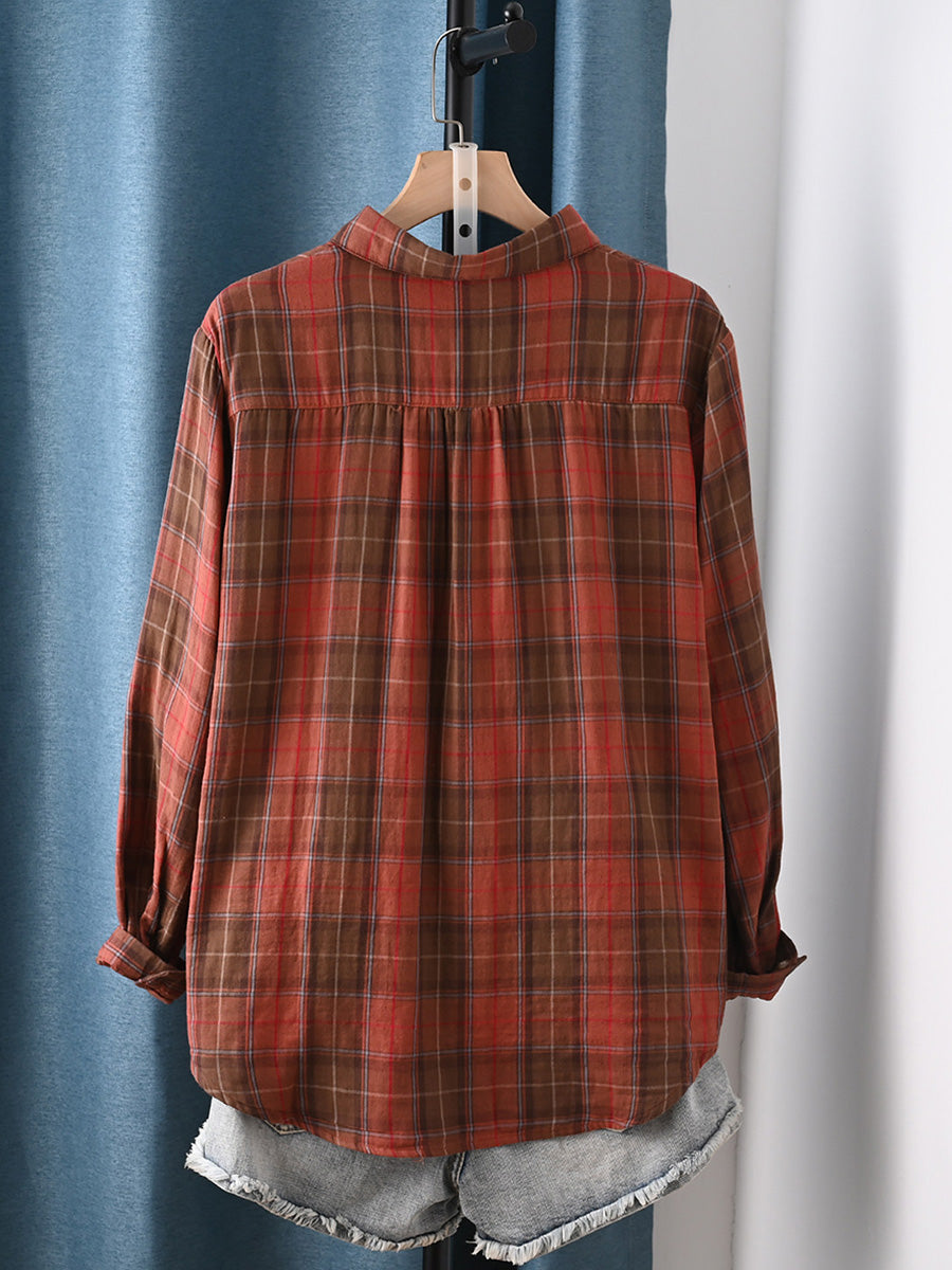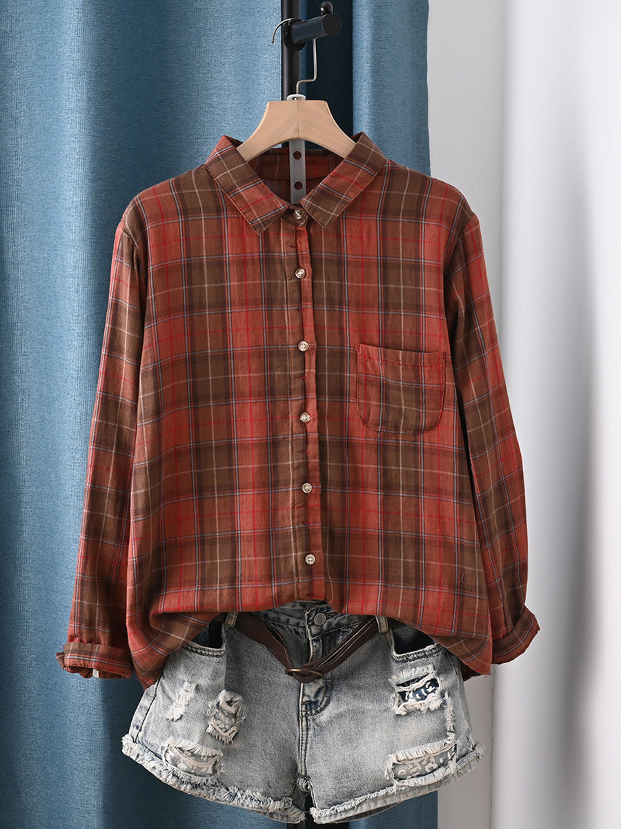 Women Artsy Spring Plaid 100%Cotton Shirt