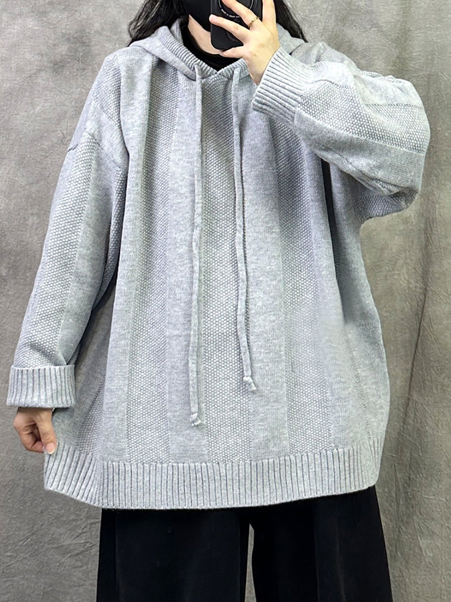 Women Autumn Artsy Pure Color Hooded Sweater
