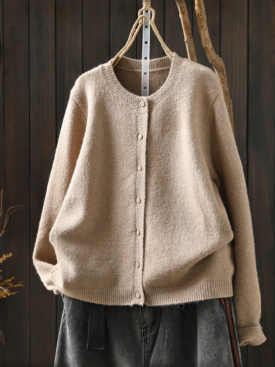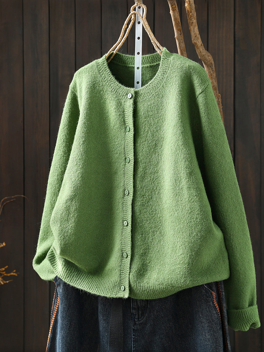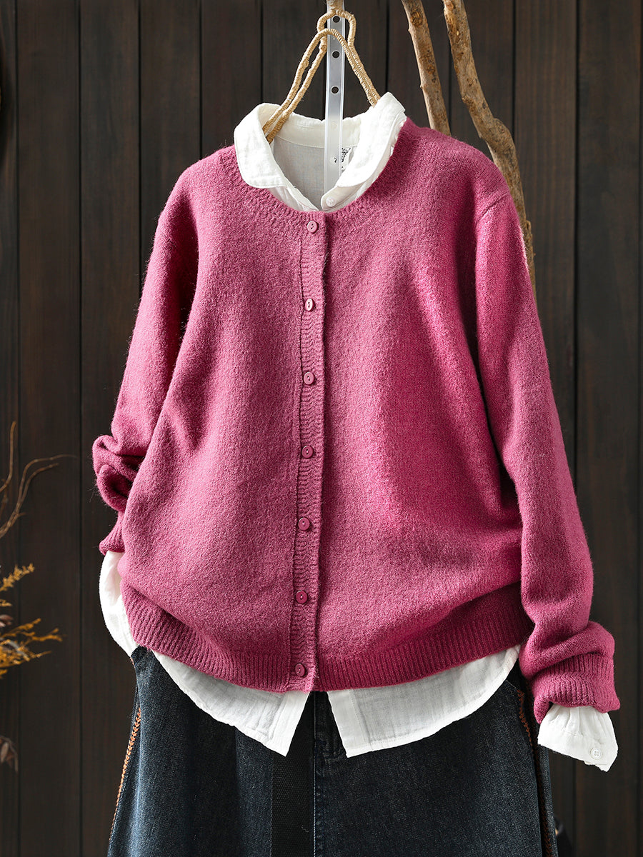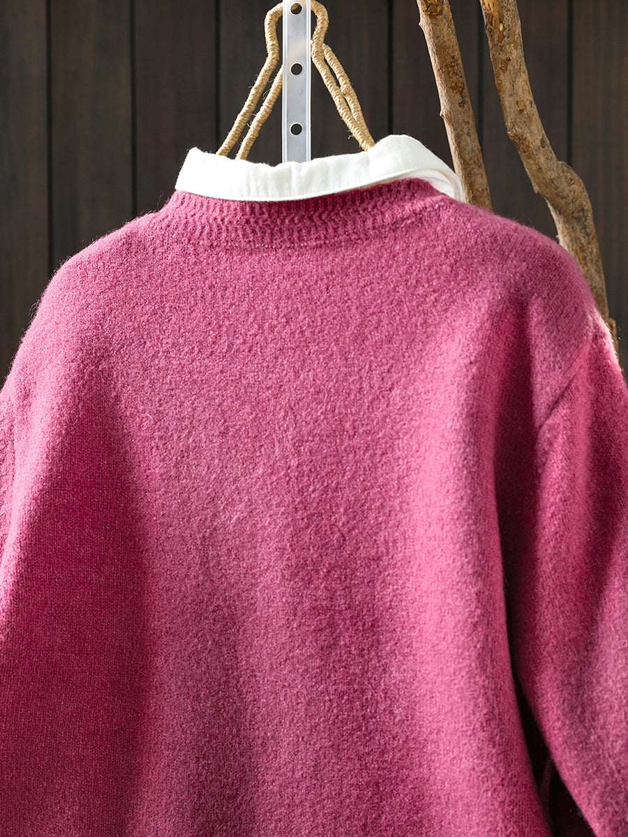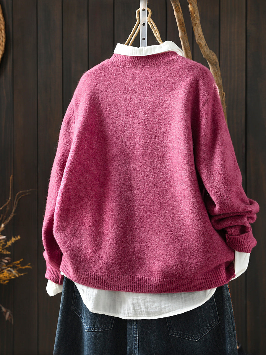Women Autumn Artsy Pure Color Knitted O-Neck Sweater