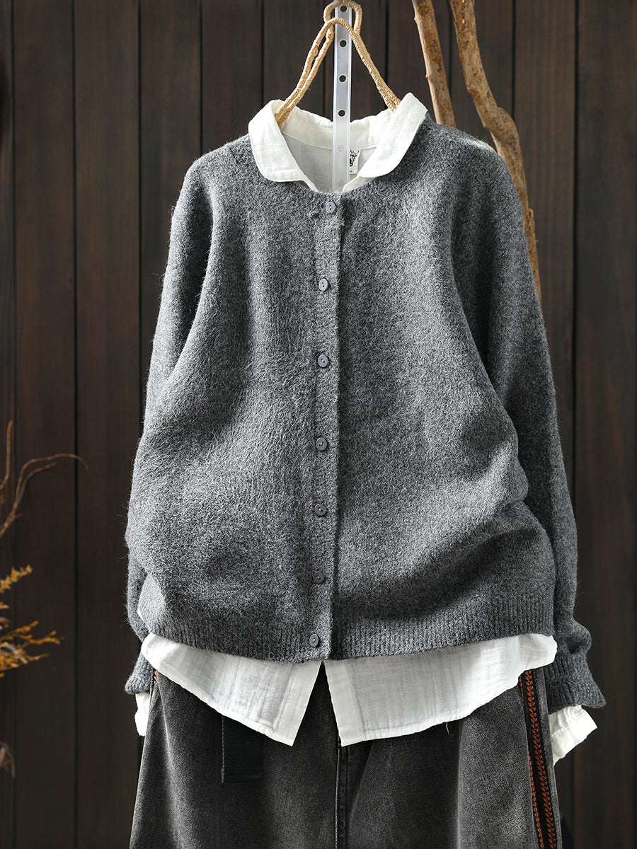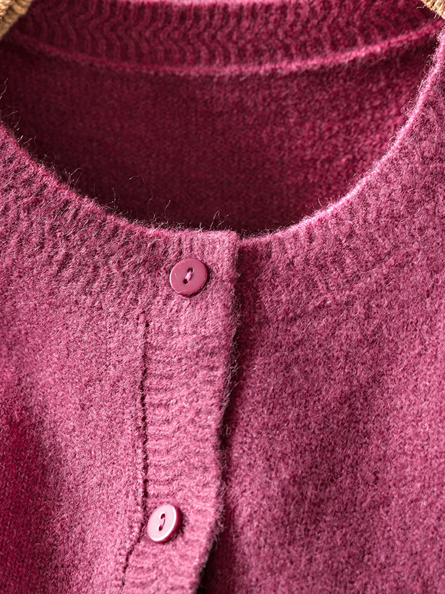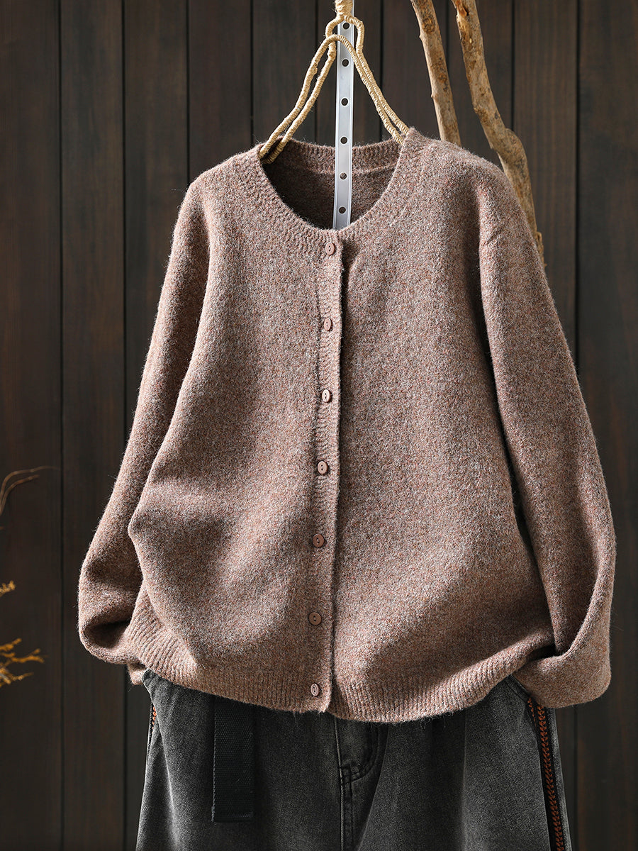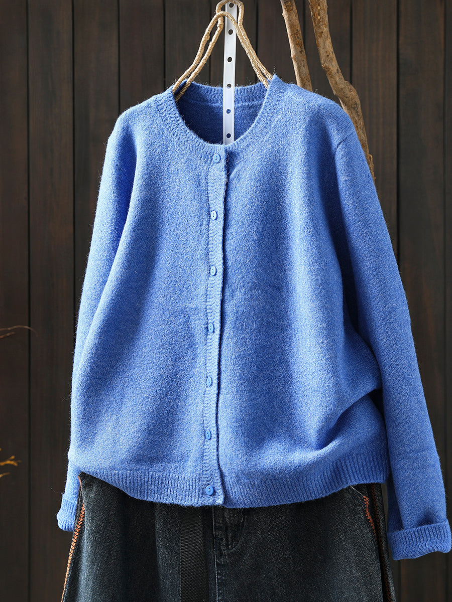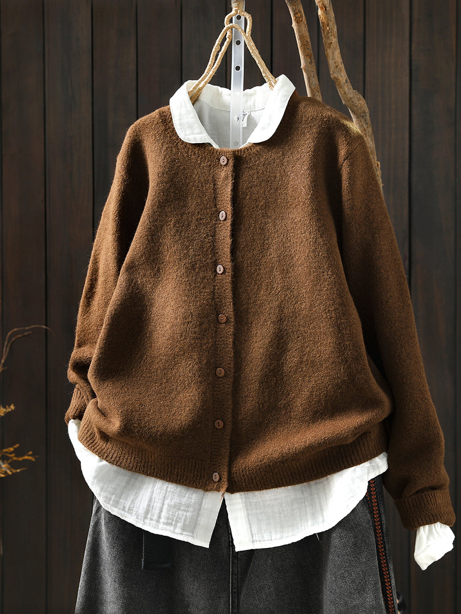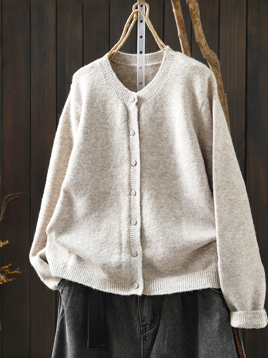 Women Autumn Artsy Pure Color Knitted O-Neck Sweater