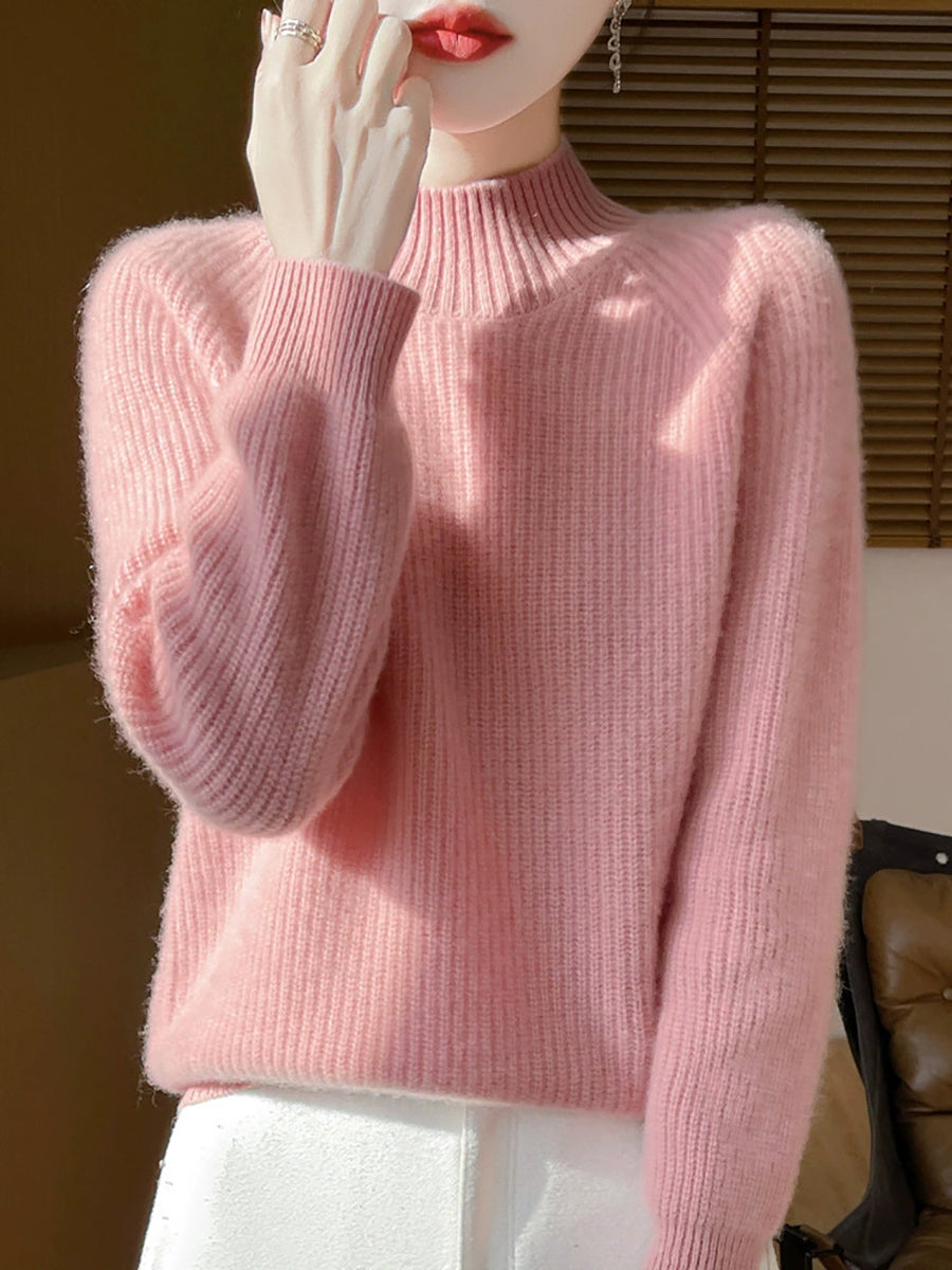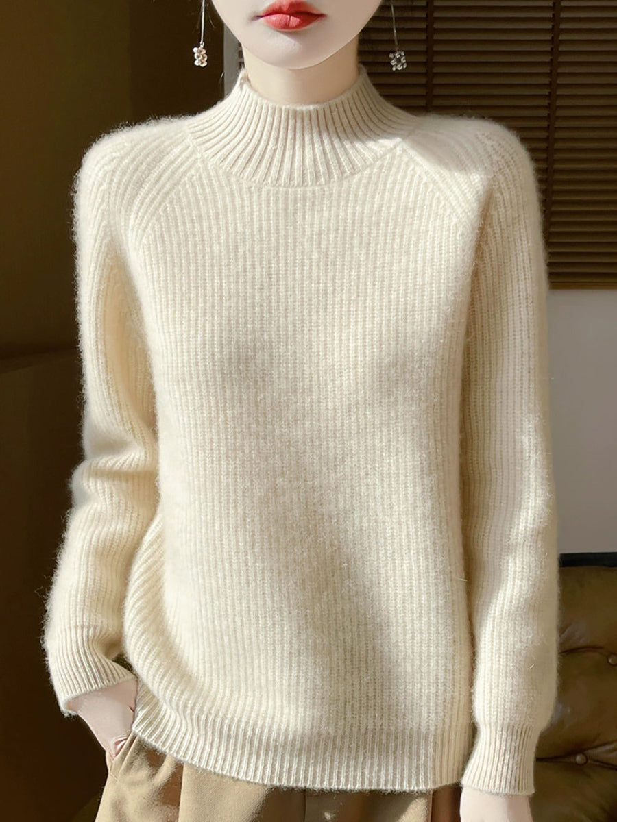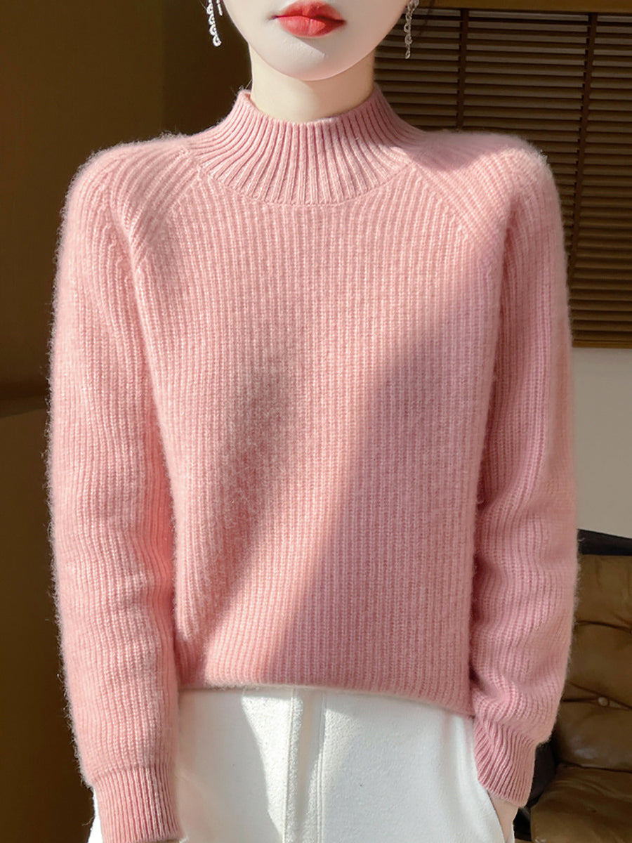 Women Autumn Artsy Pure Color Wool Half-Turtleneck Sweater