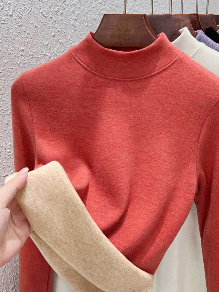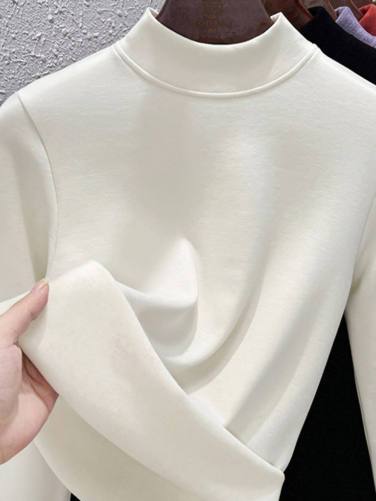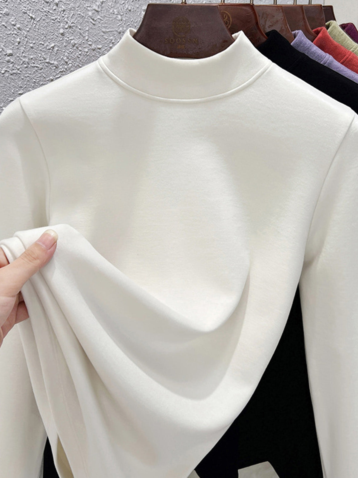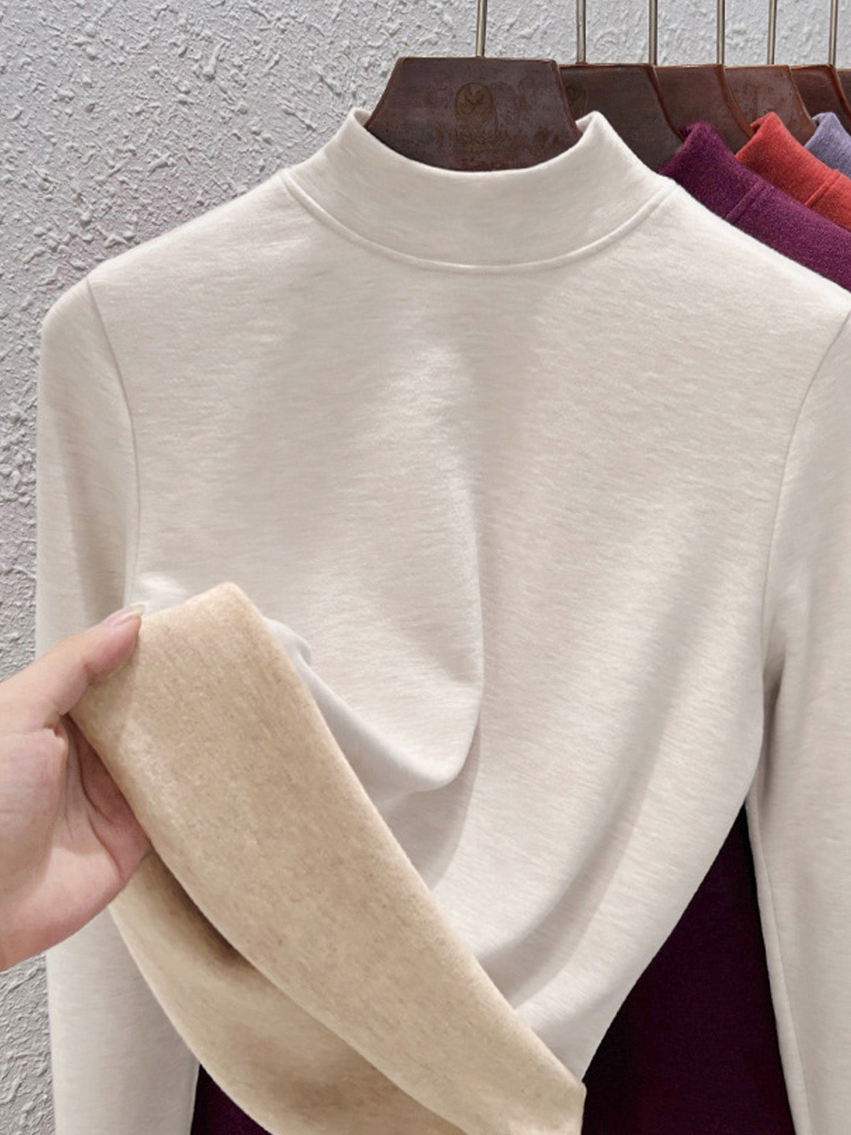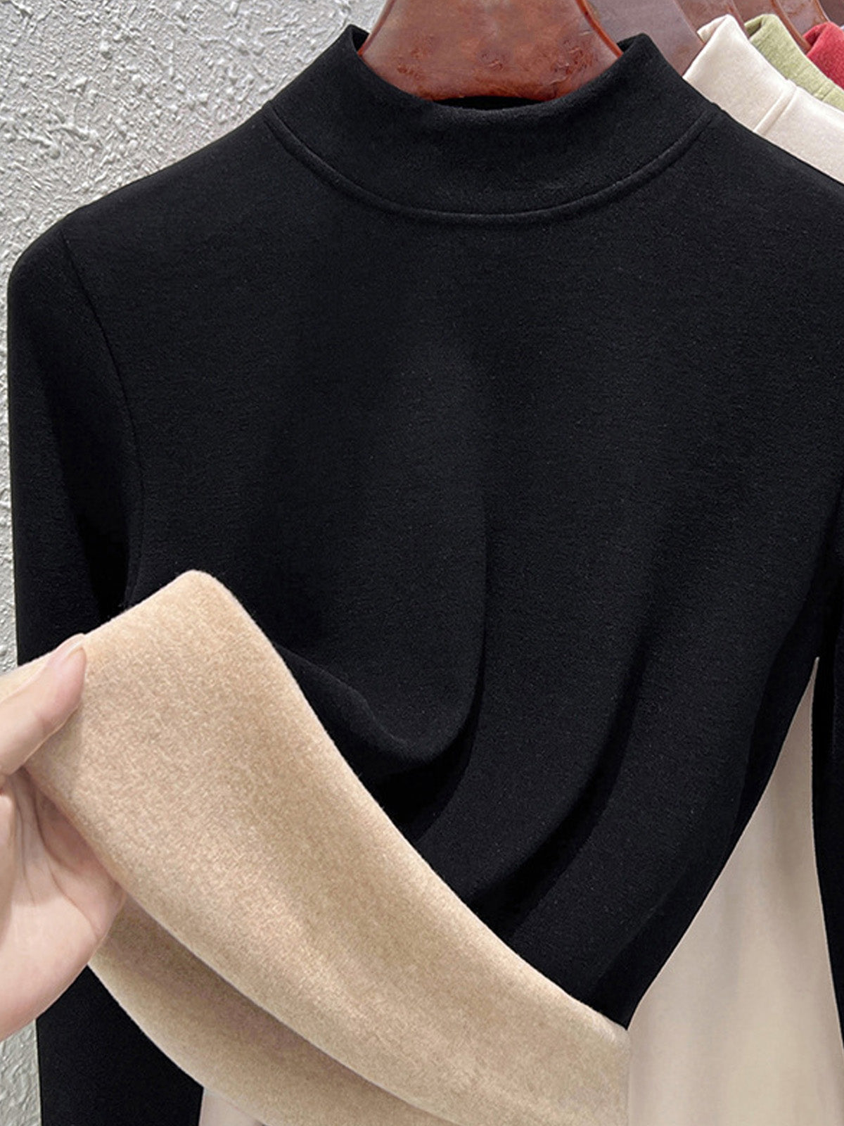 Women Autumn Casual Fleece-lined Half-Turtleneck Base Blouse