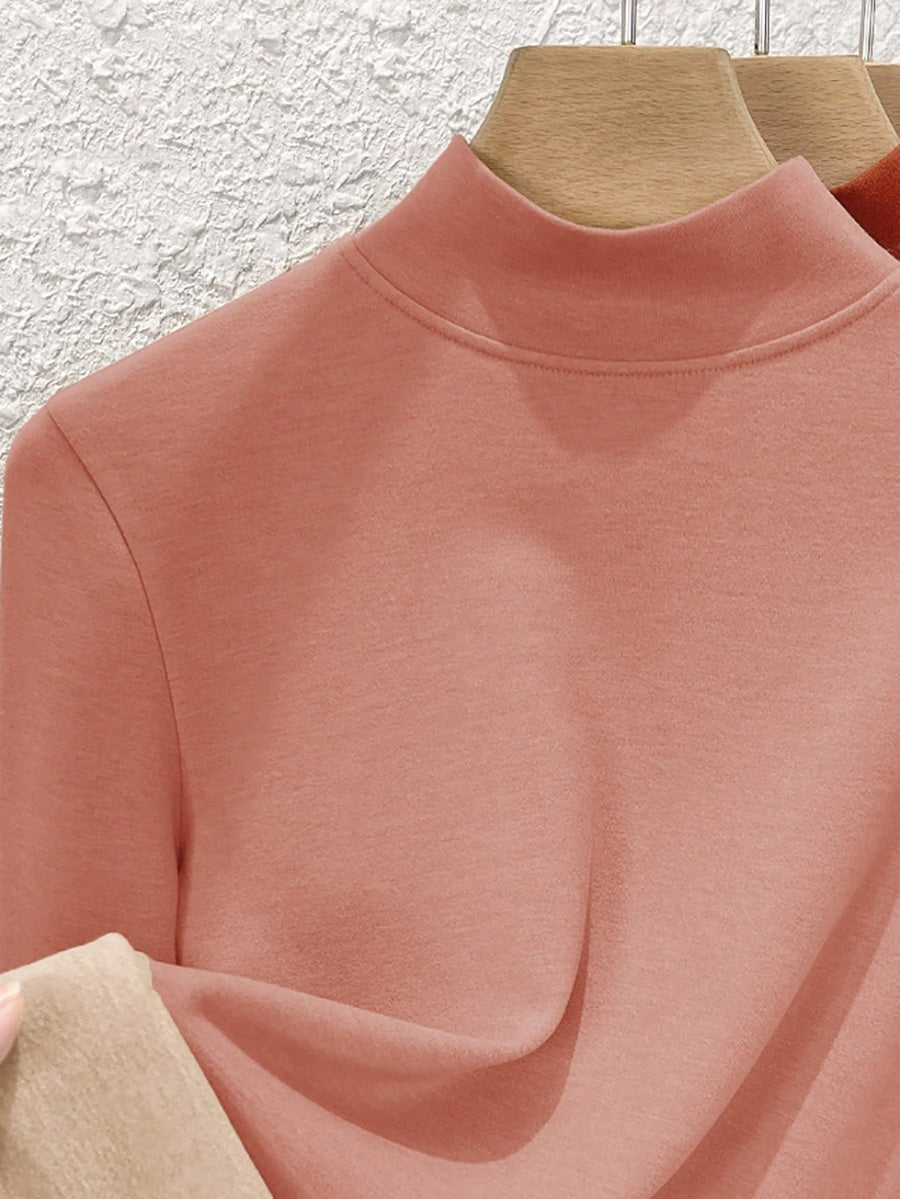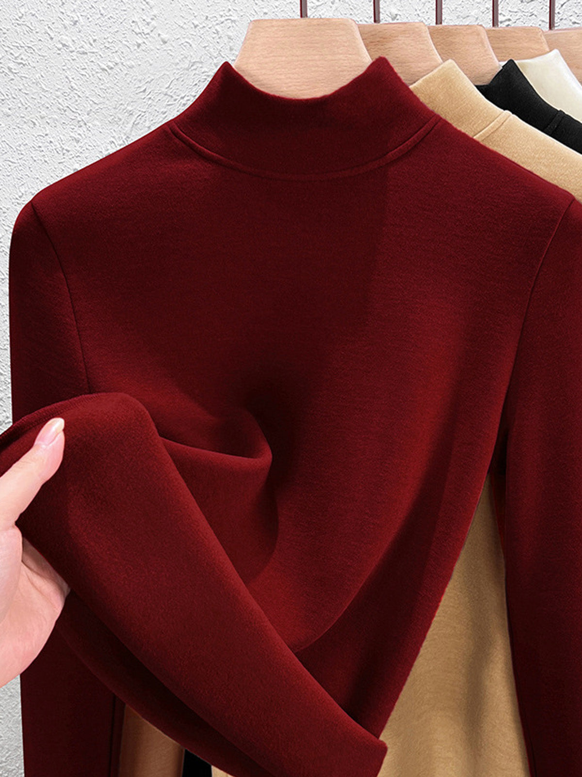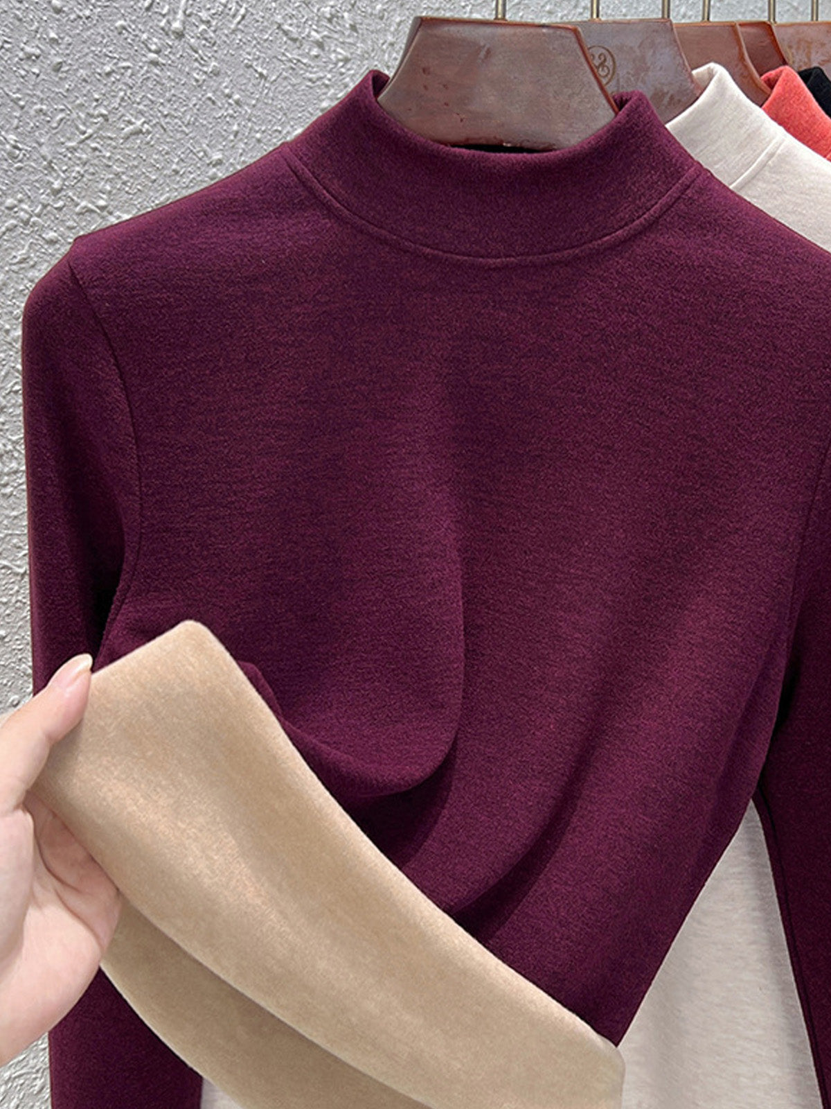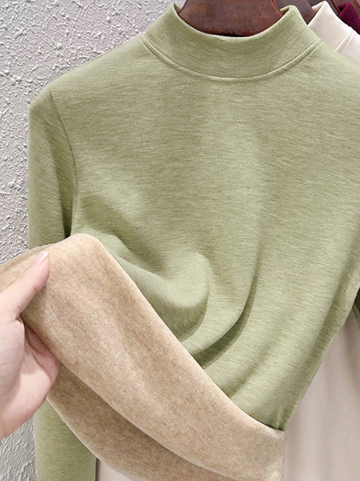 Women Autumn Casual Fleece-lined Half-Turtleneck Base Blouse