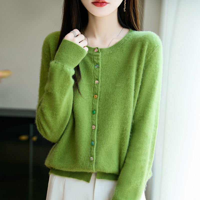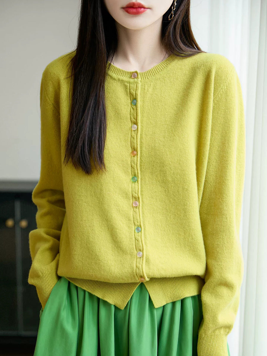 Women Autumn Casual Pure Color O-Neck Wool Sweater