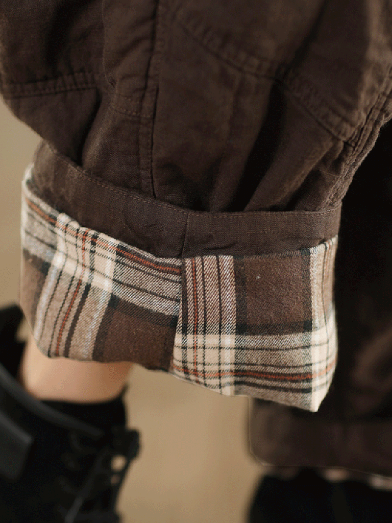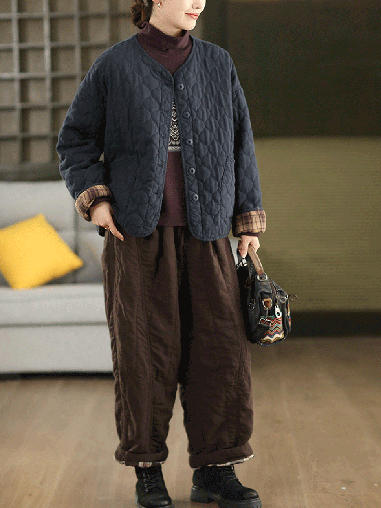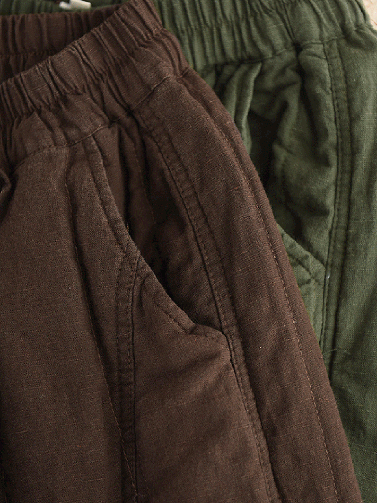 Women Autumn Pure Color 100%Linen Padded Straight Pants