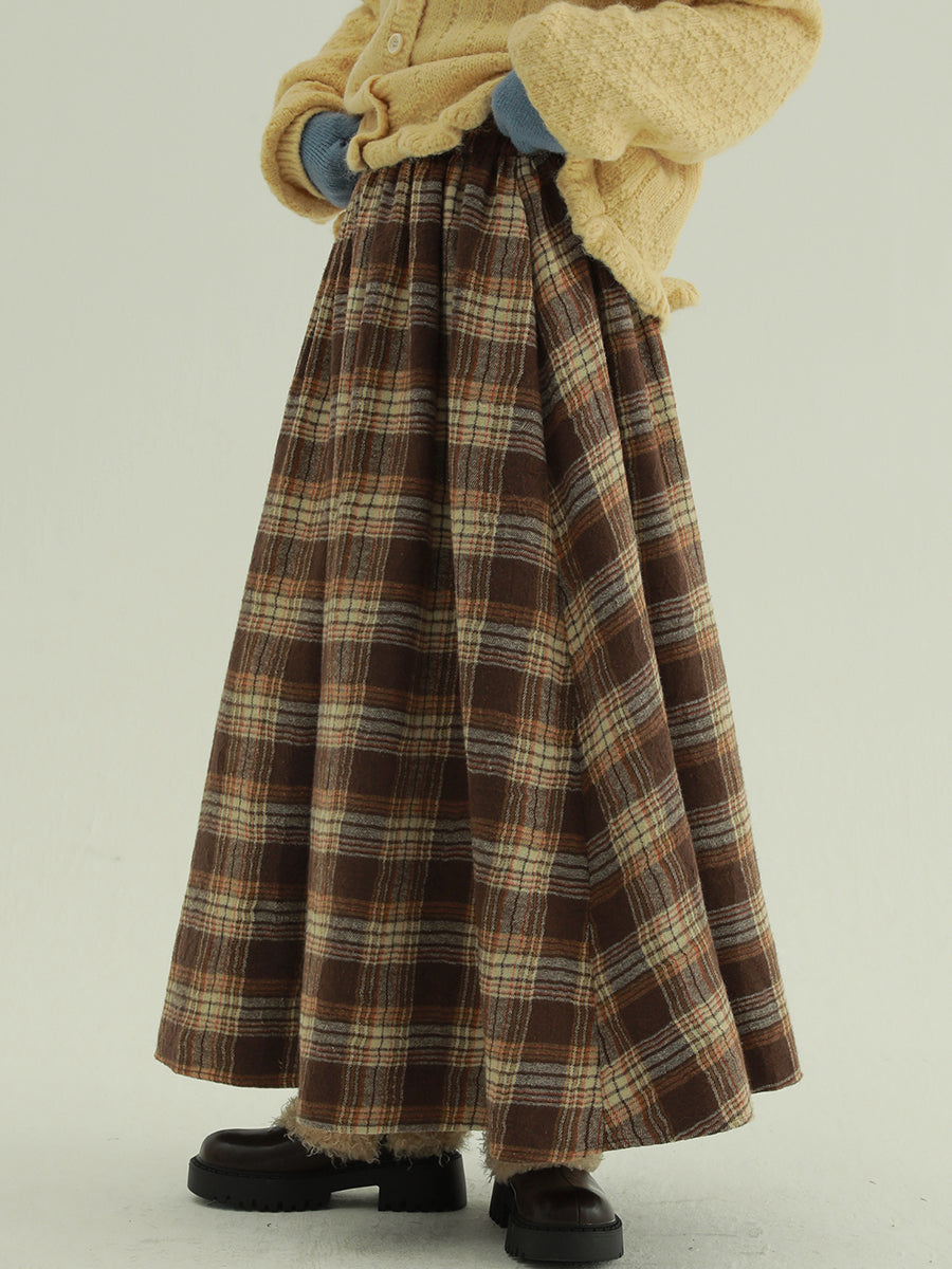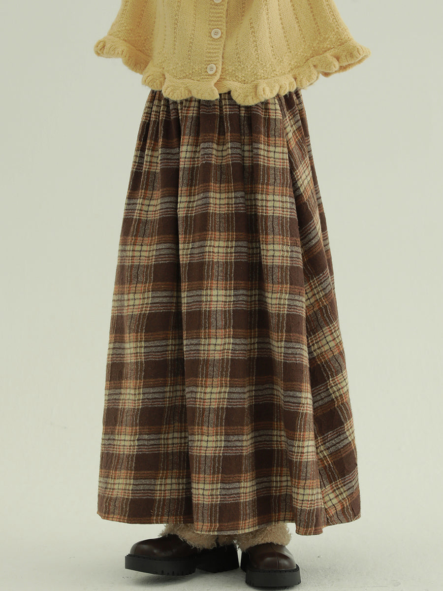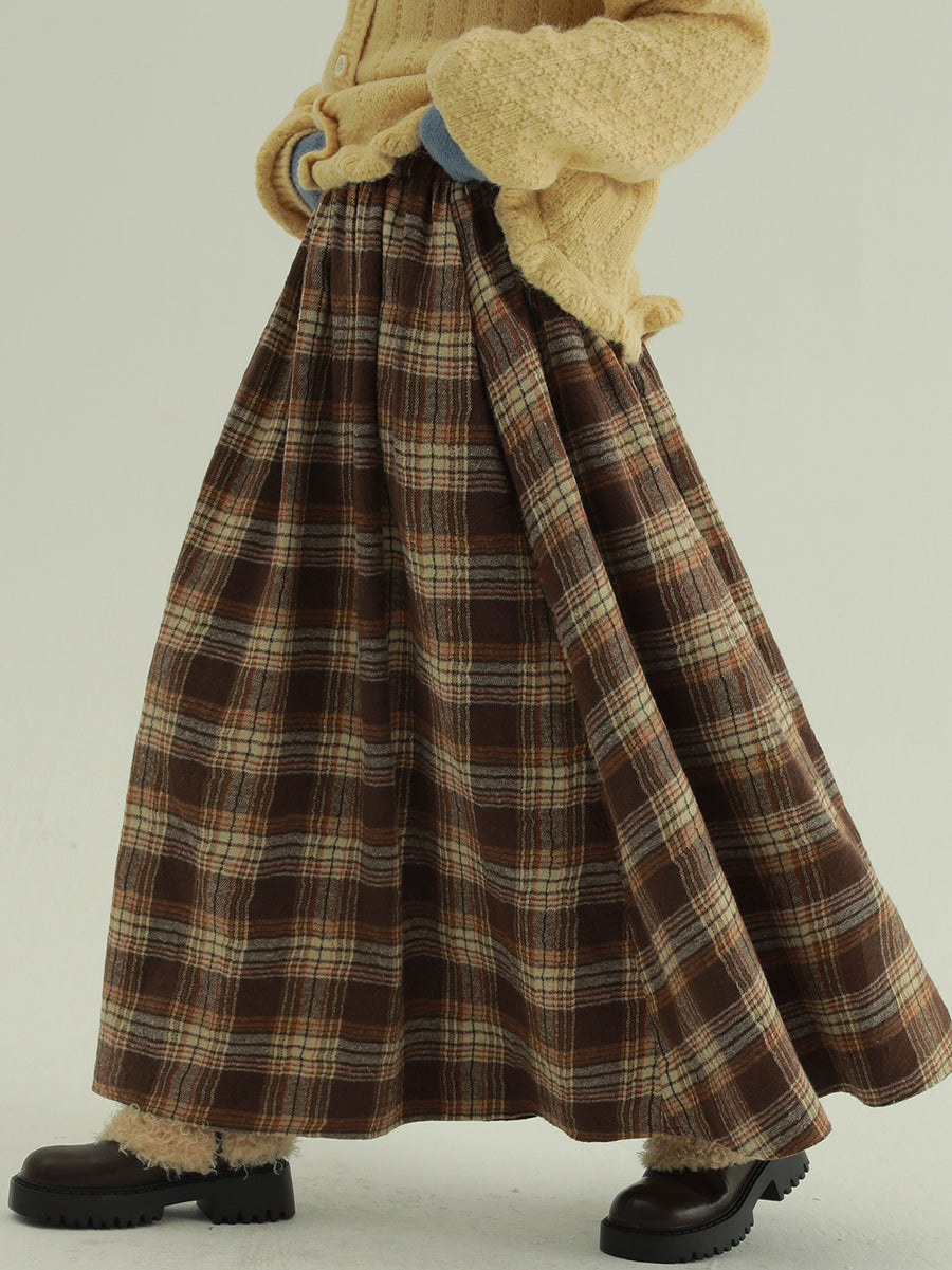 Women Autumn Retro Plaid A-Shape Skirt