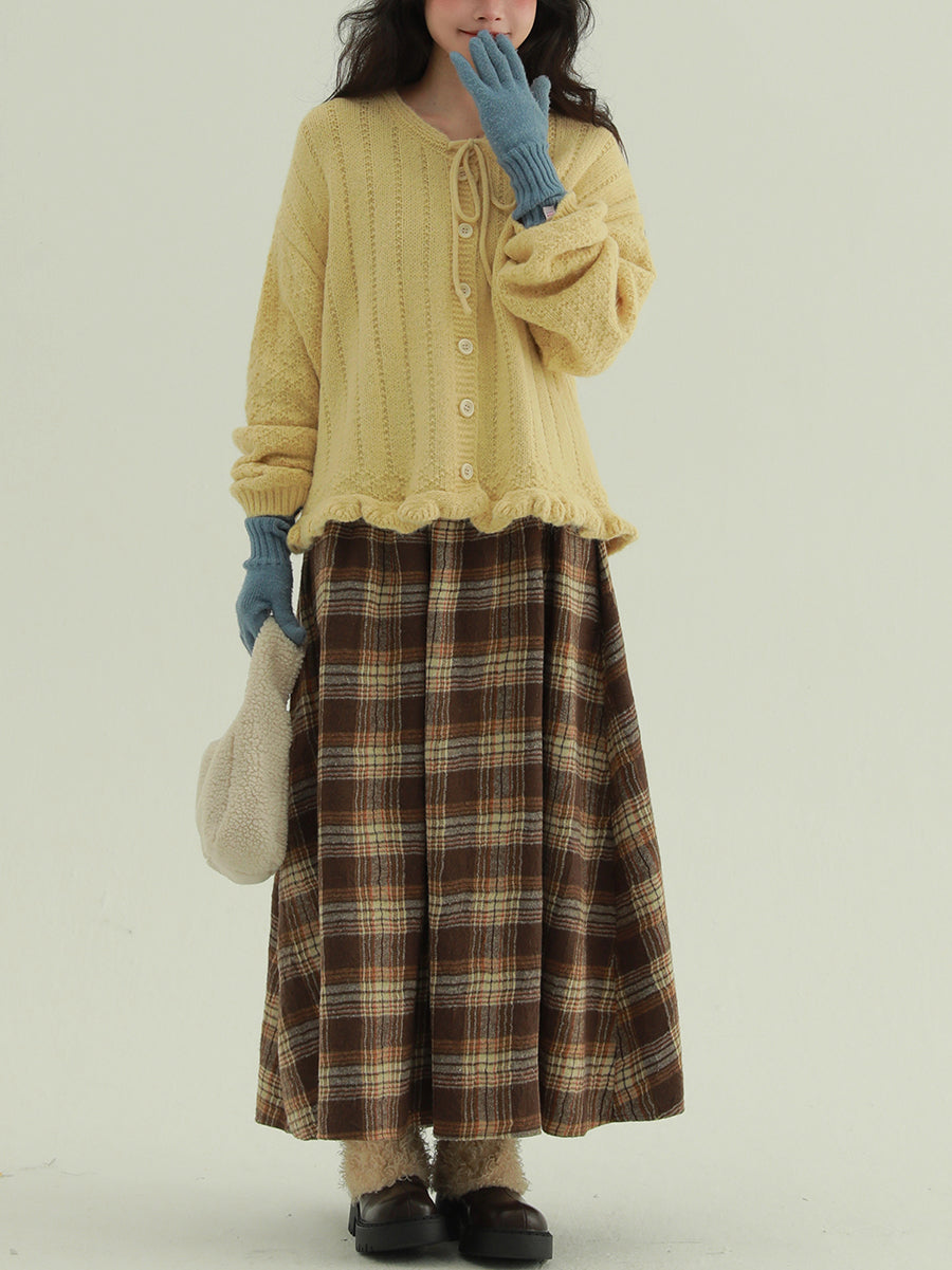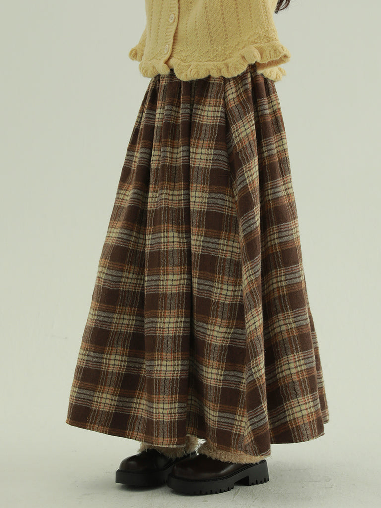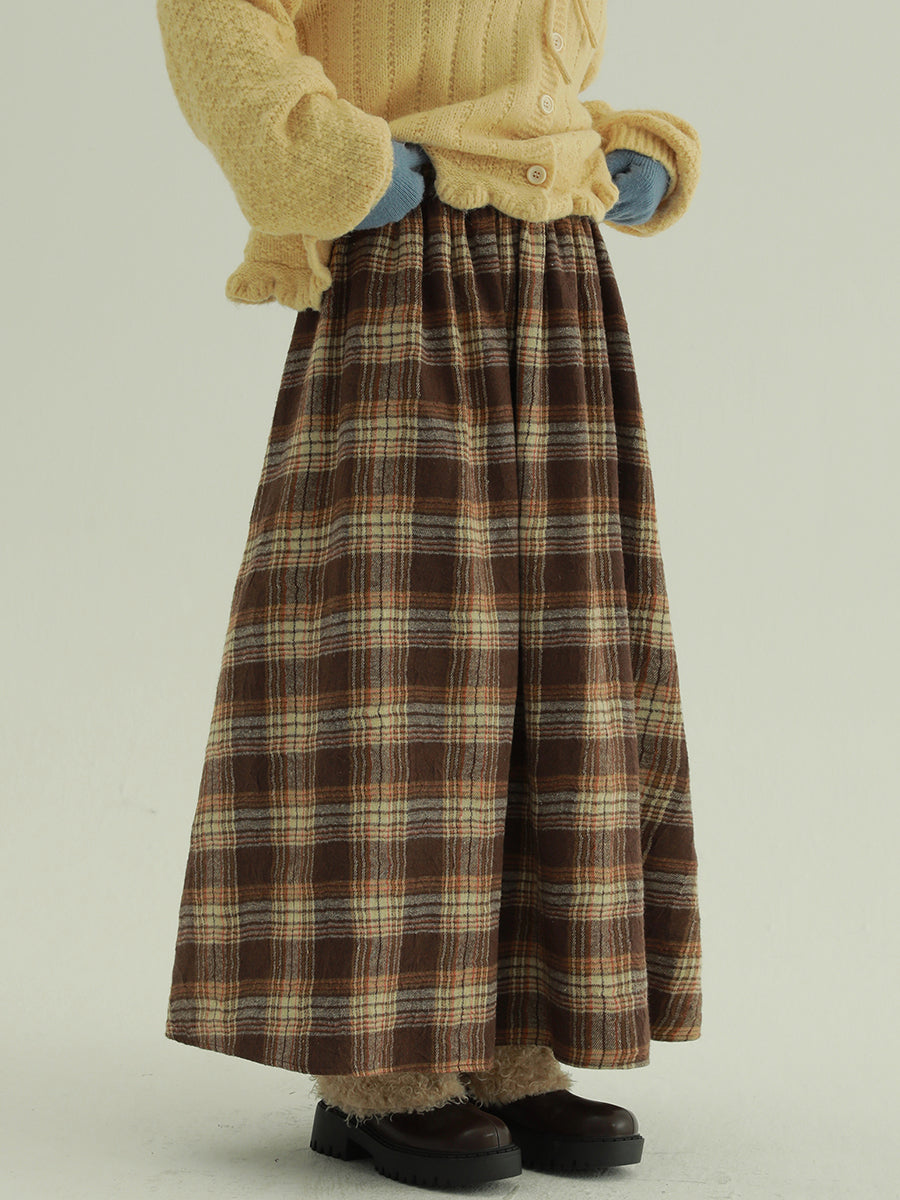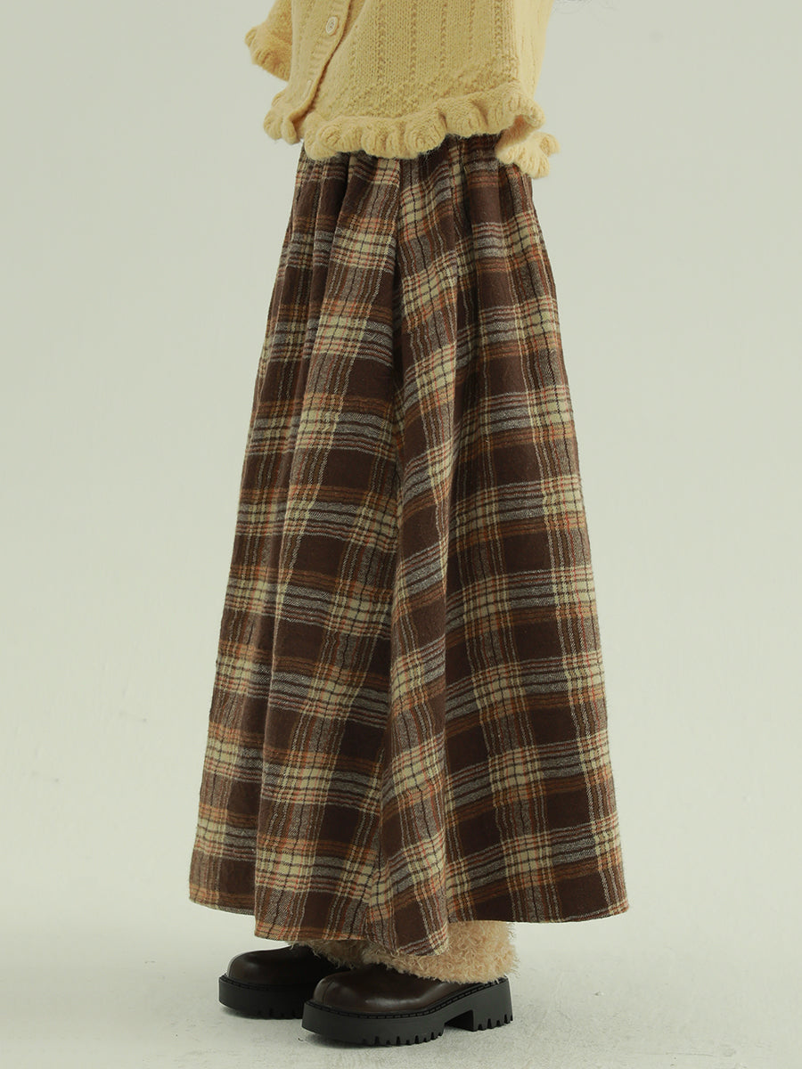 Women Autumn Retro Plaid A-Shape Skirt