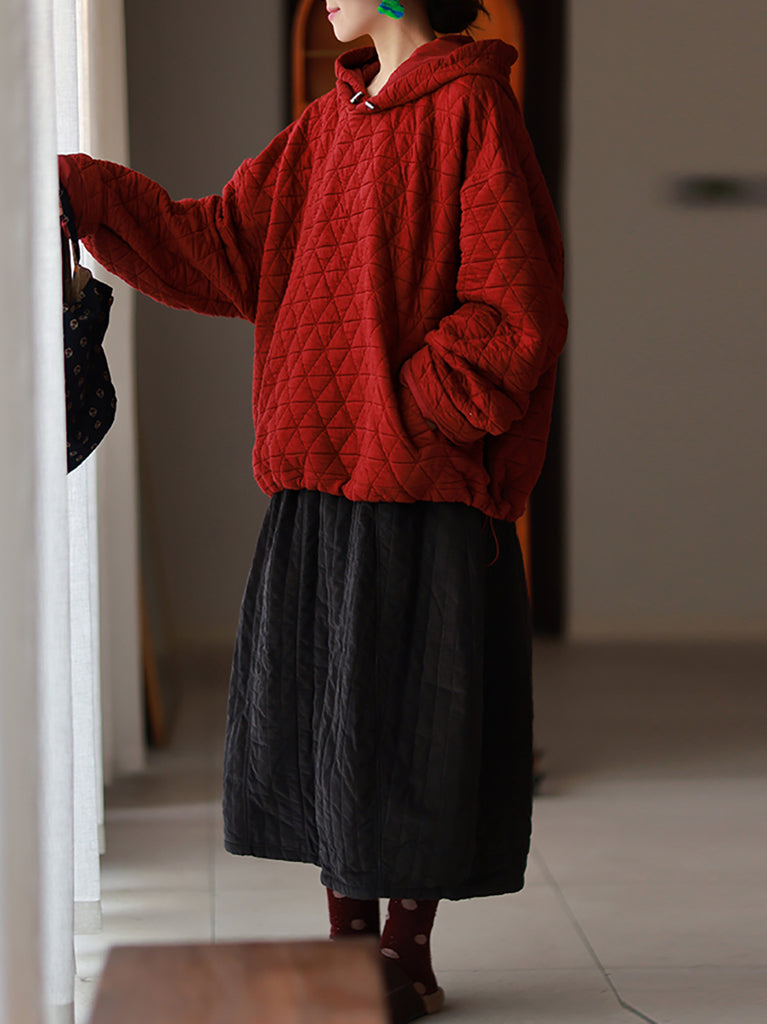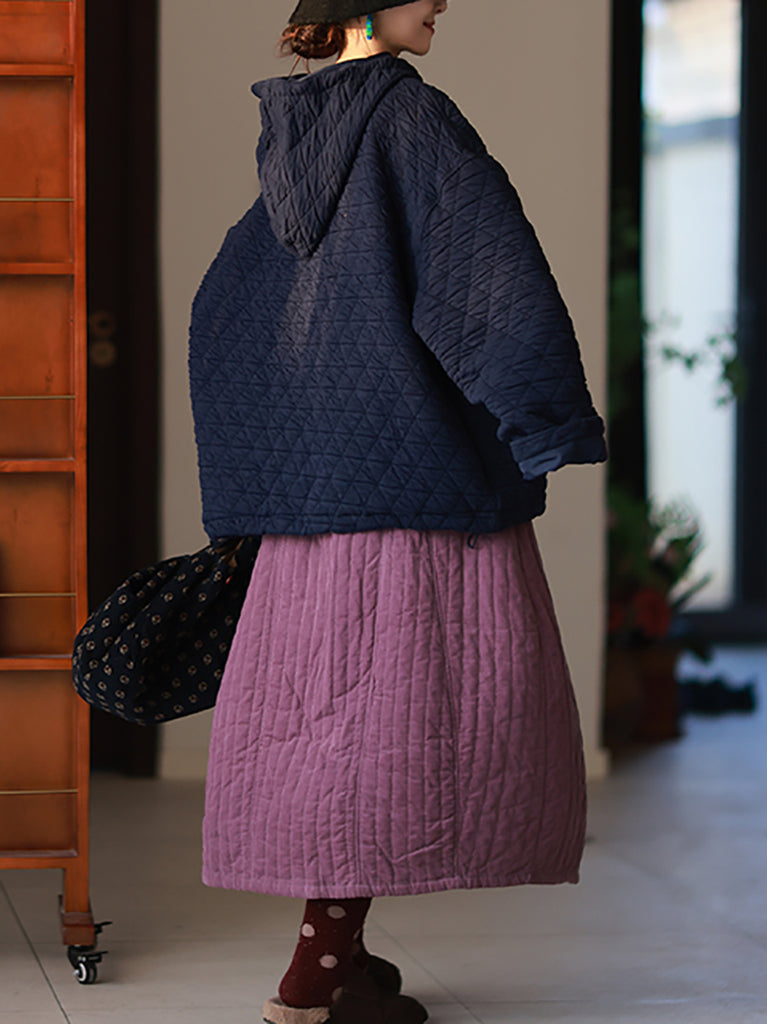 Women Casual Autumn Pure Color 100%Cotton Padded Hooded Coat
