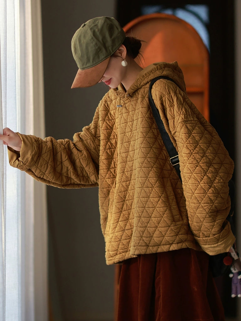 Crafted from premium 100% cotton, this women's padded hooded coat delivers exceptional comfort and durability through every autumn and winter season. The relaxed raglan sleeves provide unrestricted movement, while the full-length design offers complete coverage. Its minimalist solid-color aesthetic ensures versatile styling across casual wardrobes, making it an essential layering piece for transitional weather. The integrated hood adds practical protection without compromising the coat