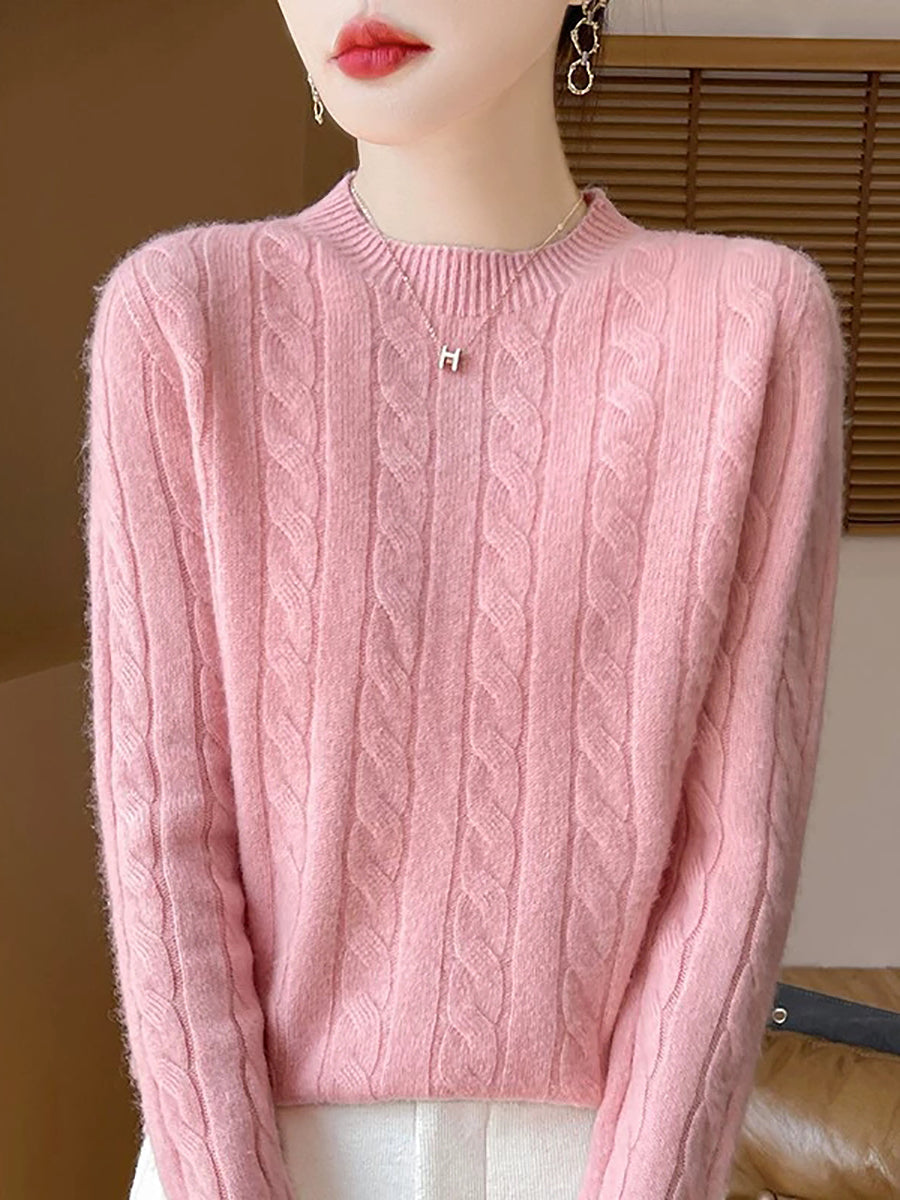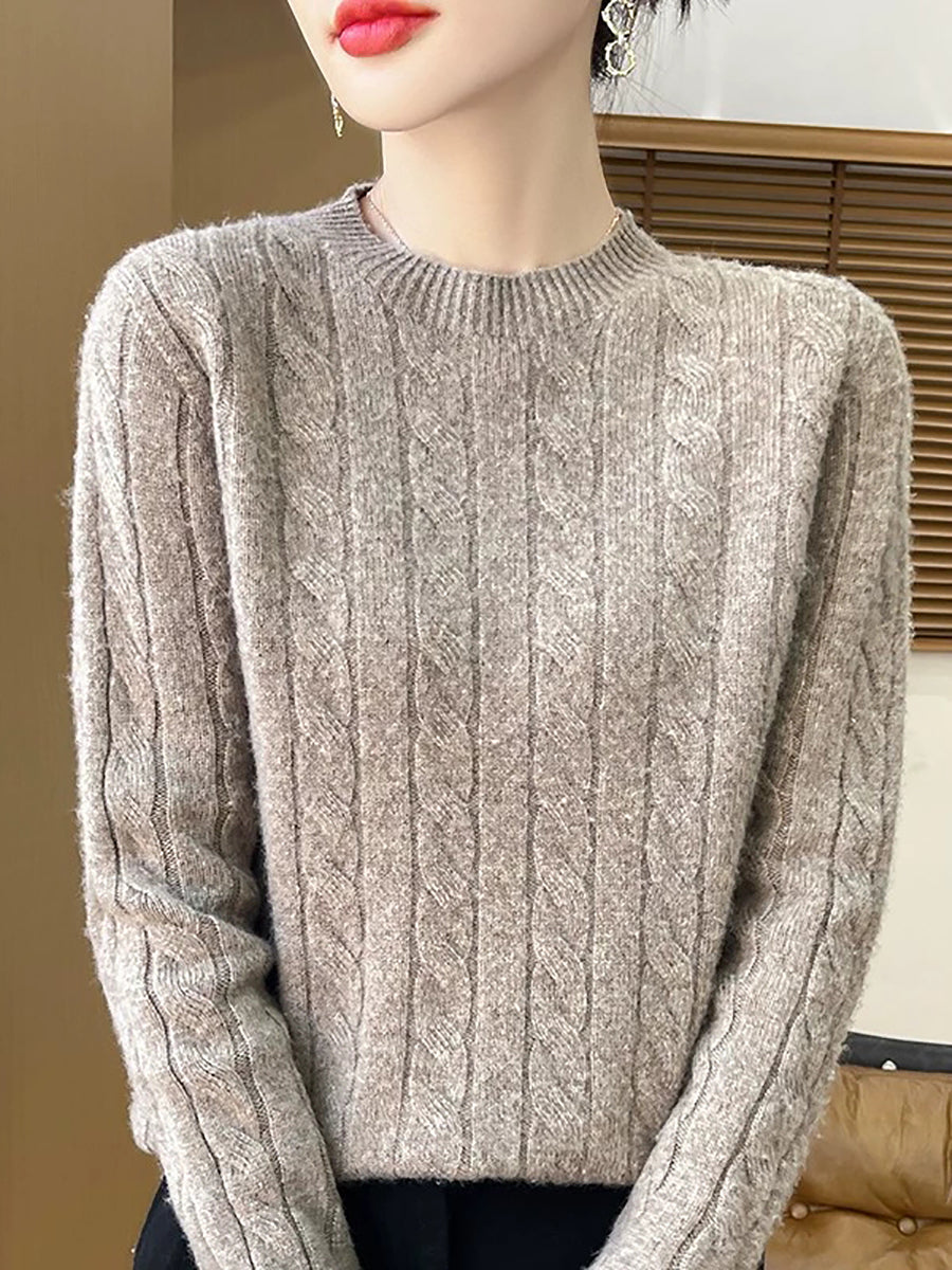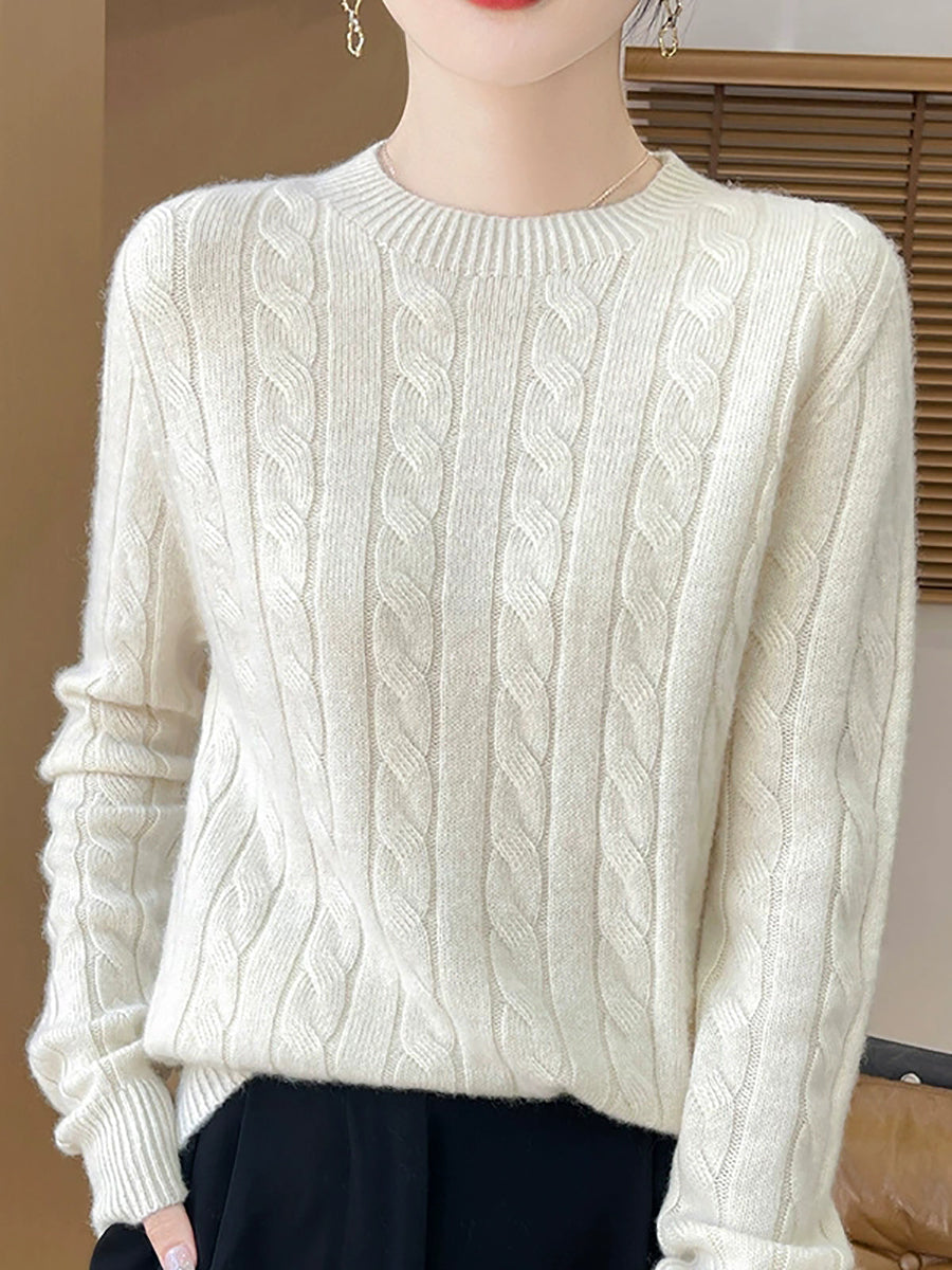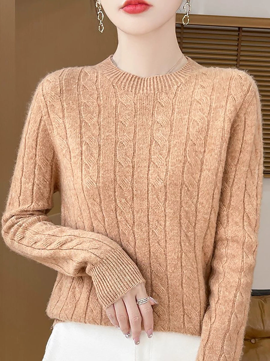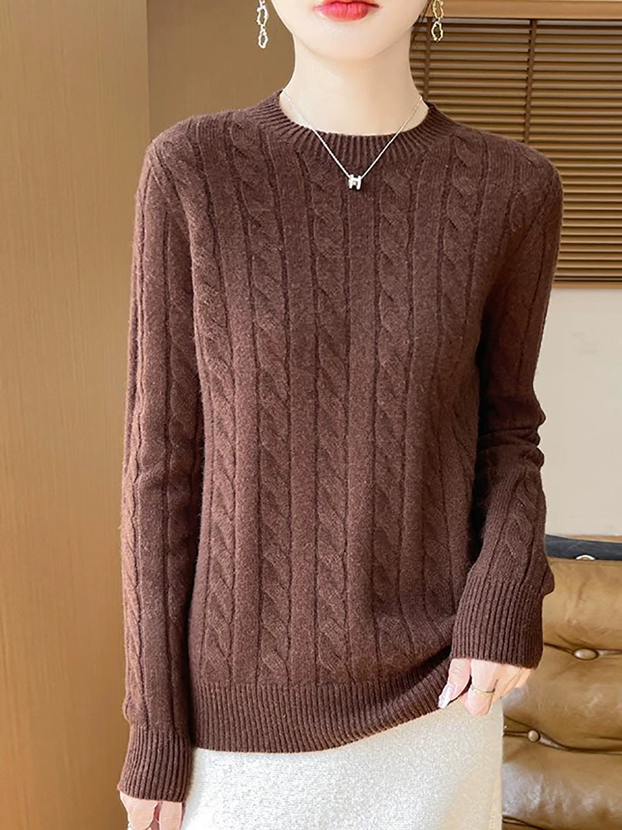 Women Casual Spring Cable-knit O-Neck Sweater