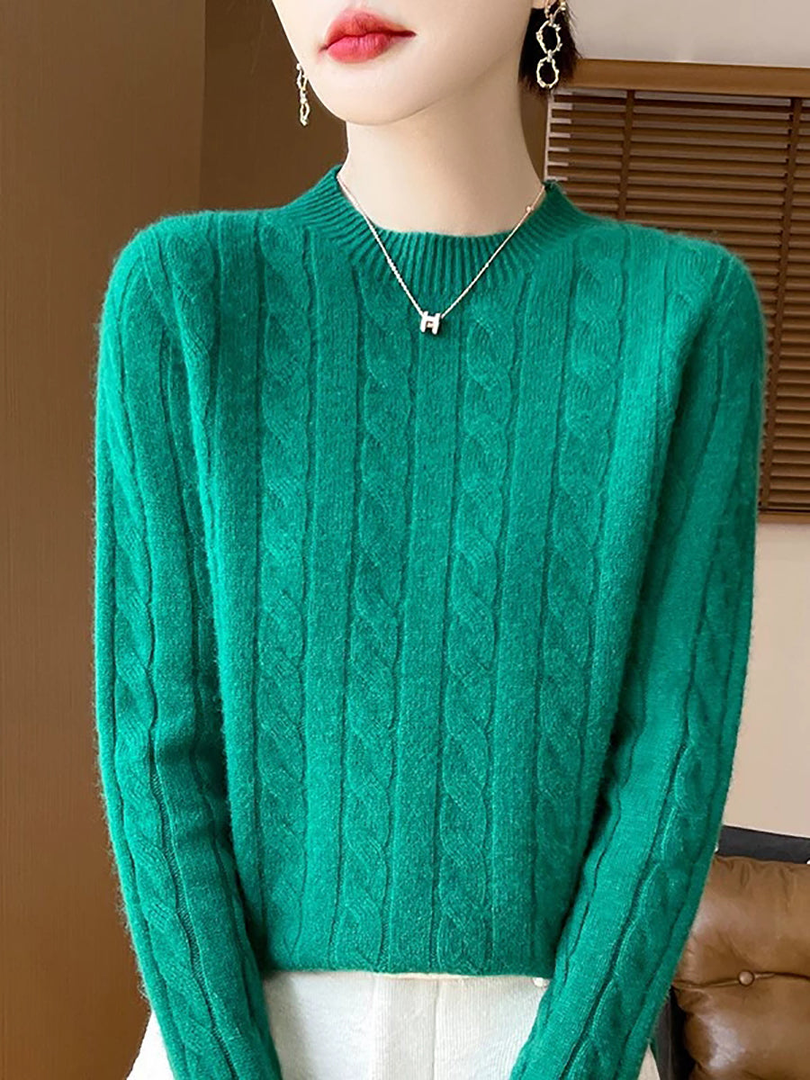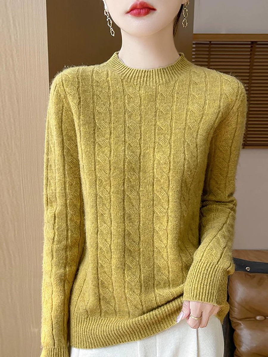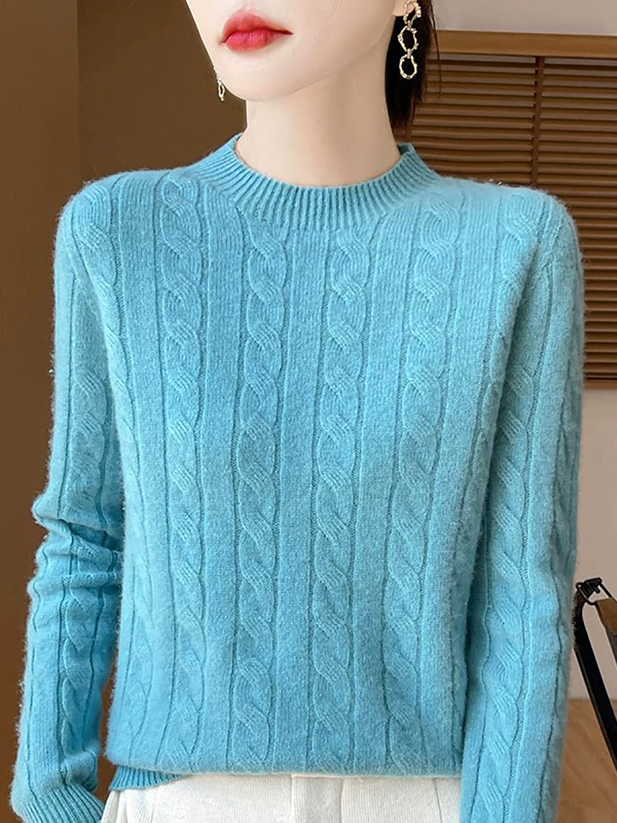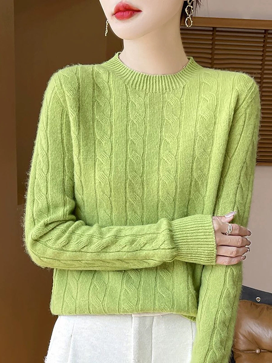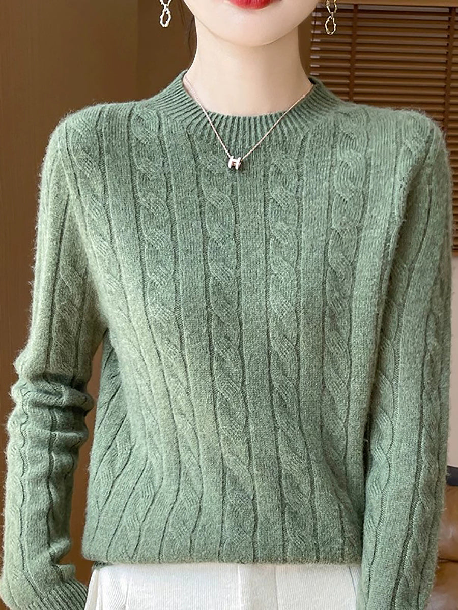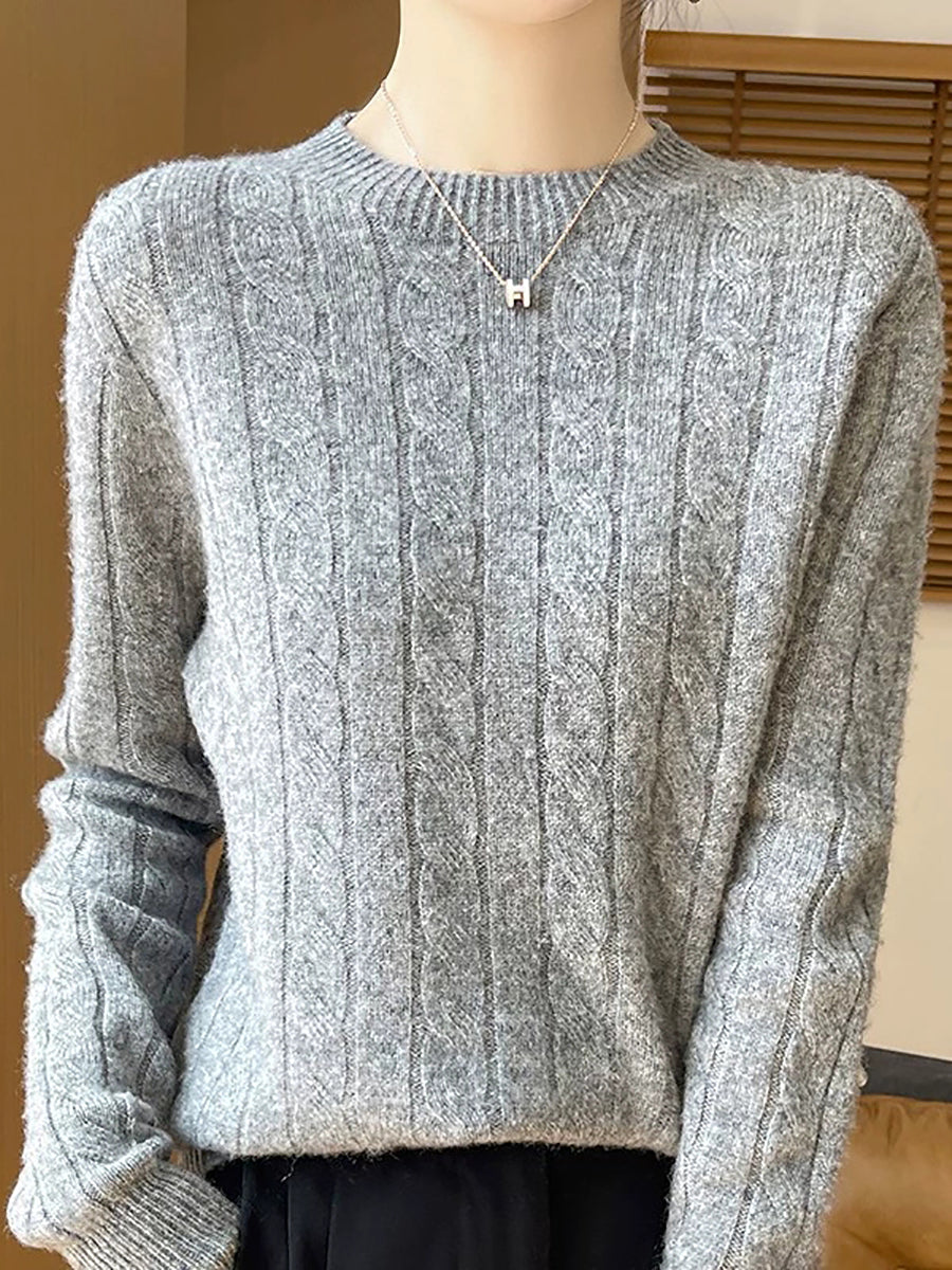 Women Casual Spring Cable-knit O-Neck Sweater