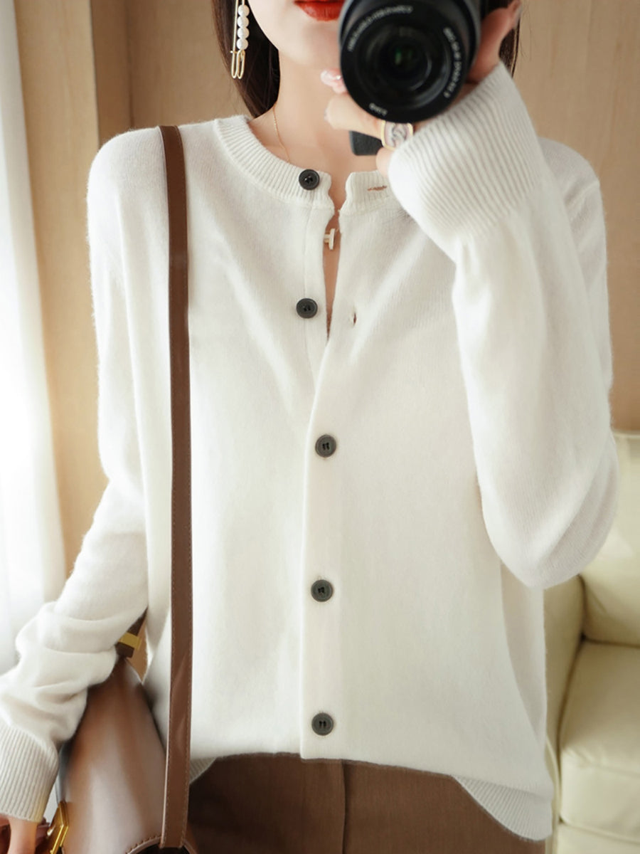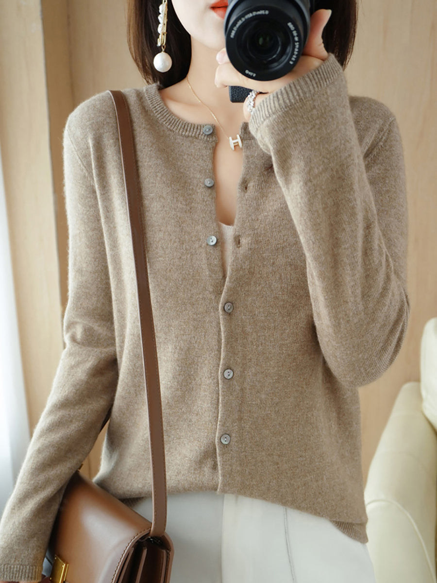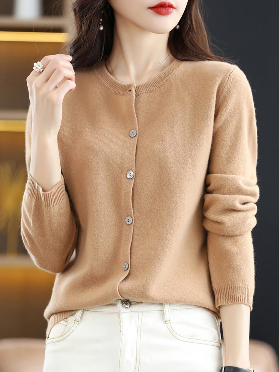 Women Casual Spring Pure Color O-Neck Sweater