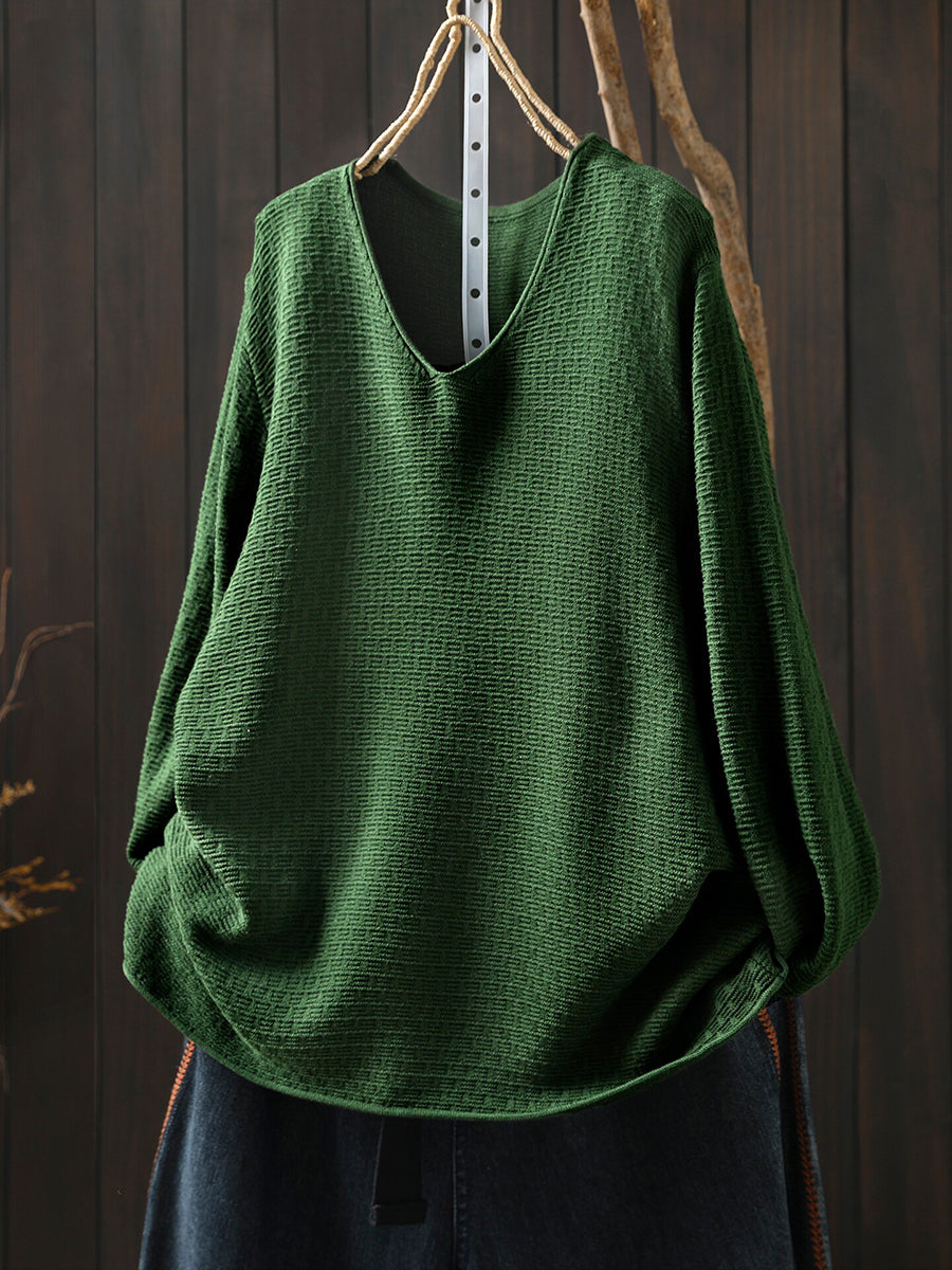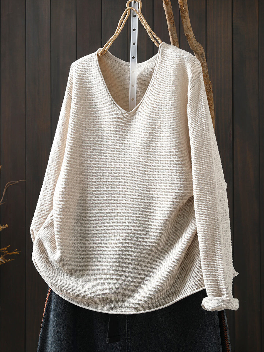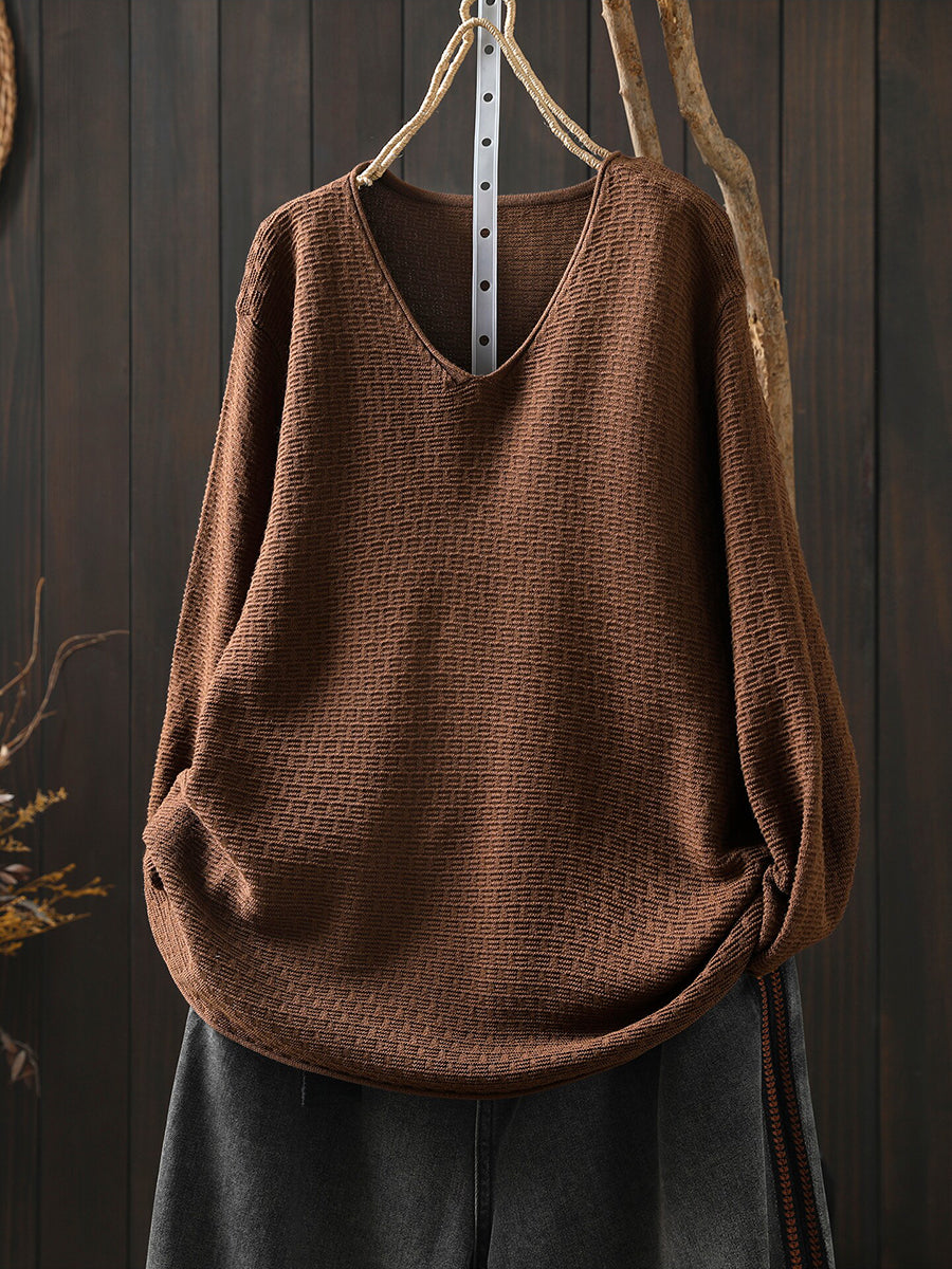 Women Casual Spring Pure Color V-Neck Sweater
