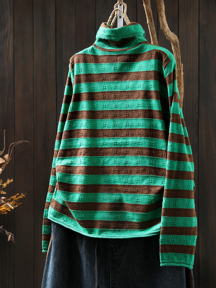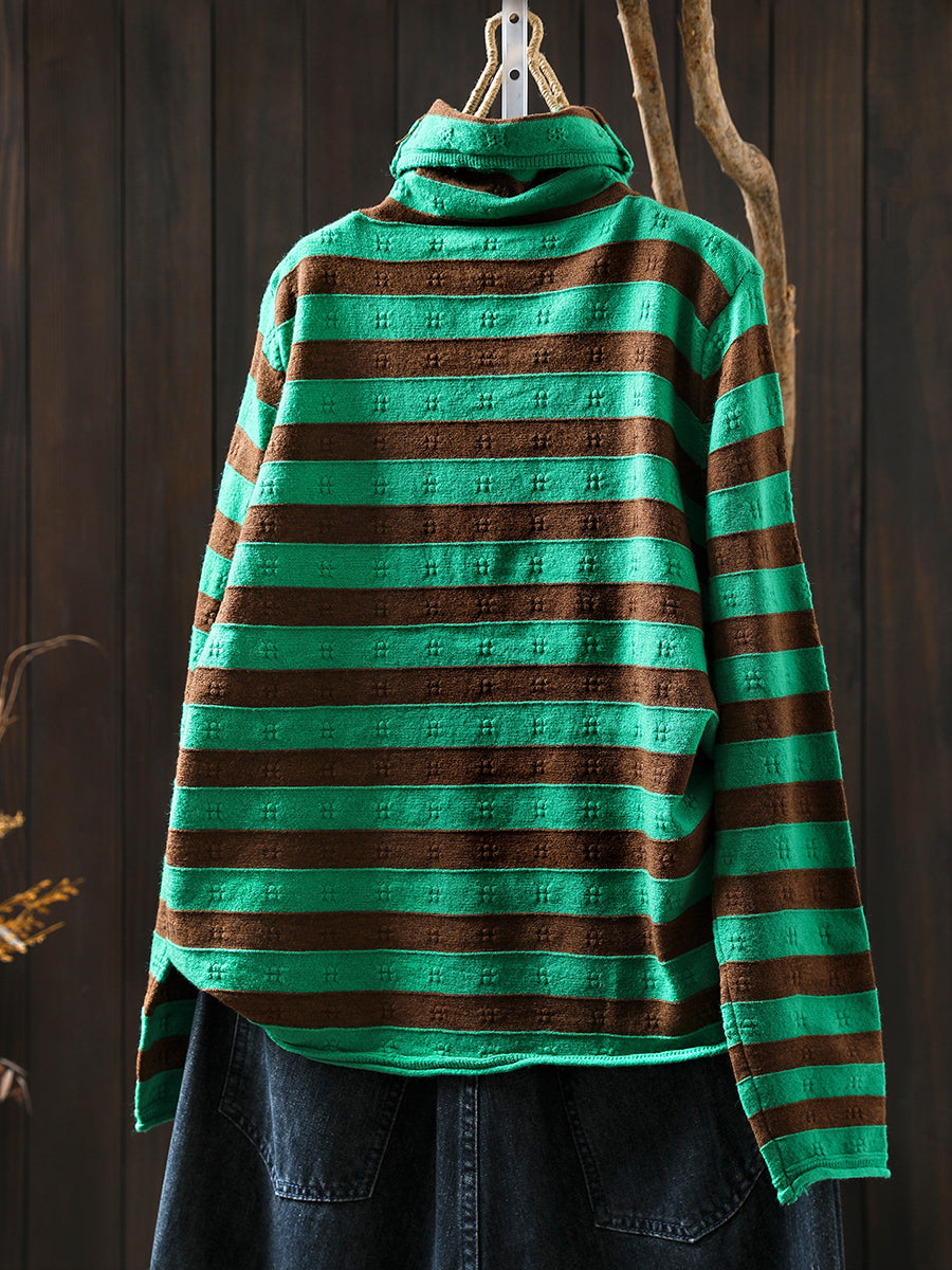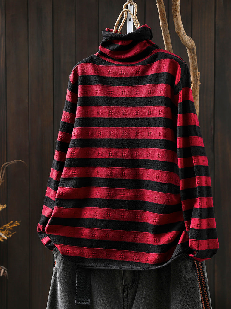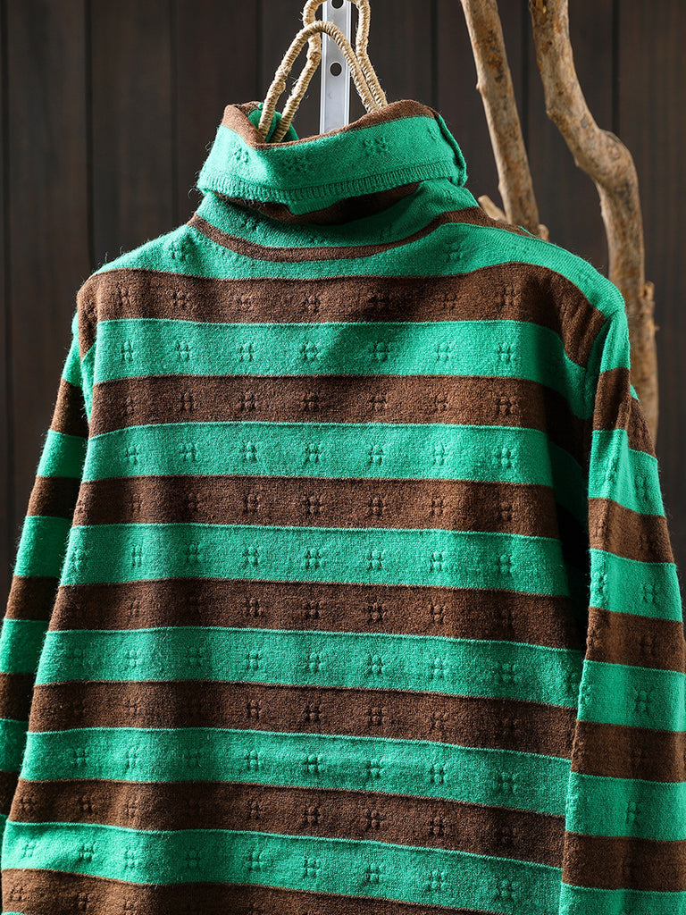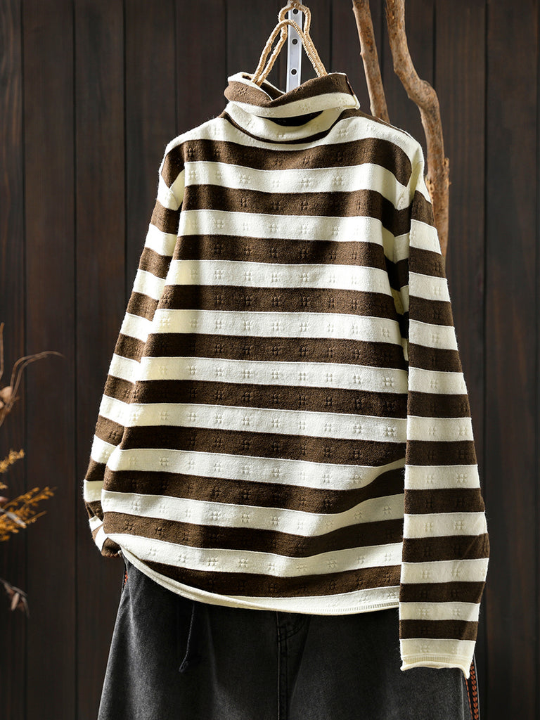 Crafted from a premium blend of 55% acrylic and 45% cotton, this winter essential delivers warmth without compromise. The classic stripe pattern pairs seamlessly with the structured turtleneck collar, while full-length regular sleeves provide complete coverage. Designed for effortless layering, this casual blouse transitions beautifully across autumn and winter seasons, making it an in