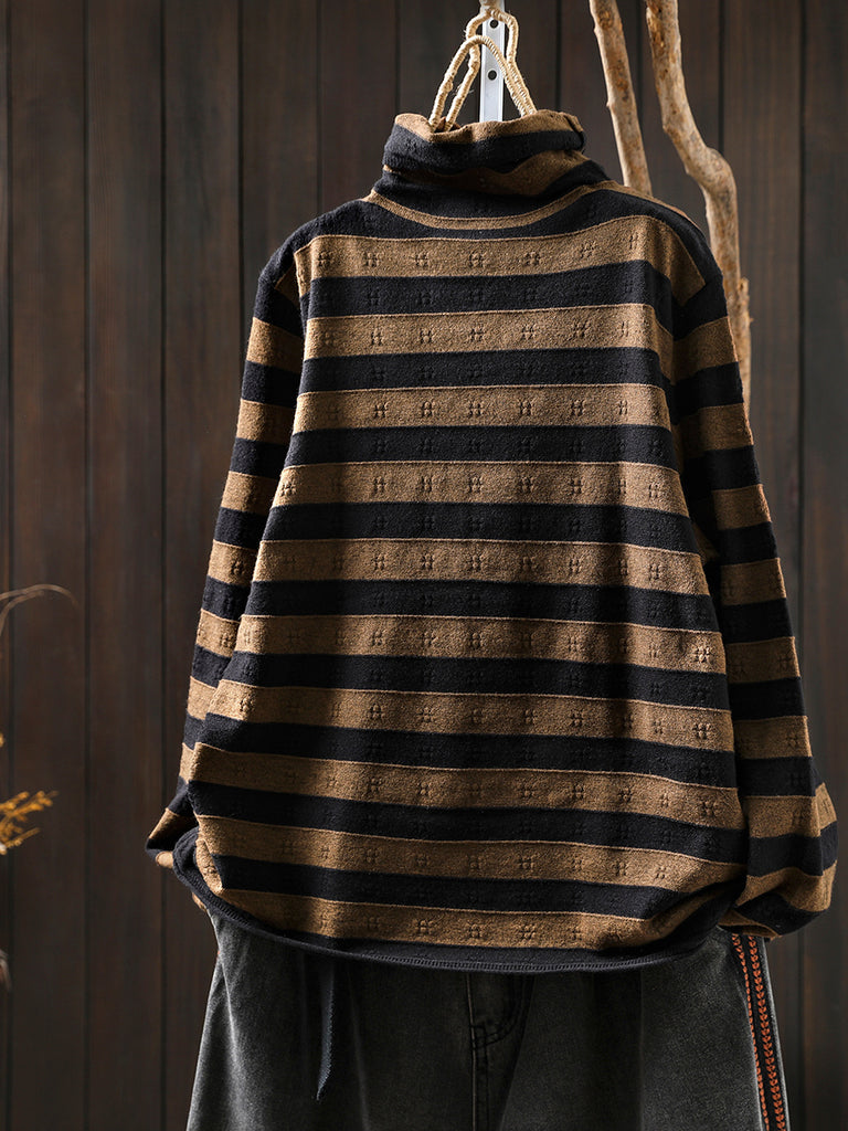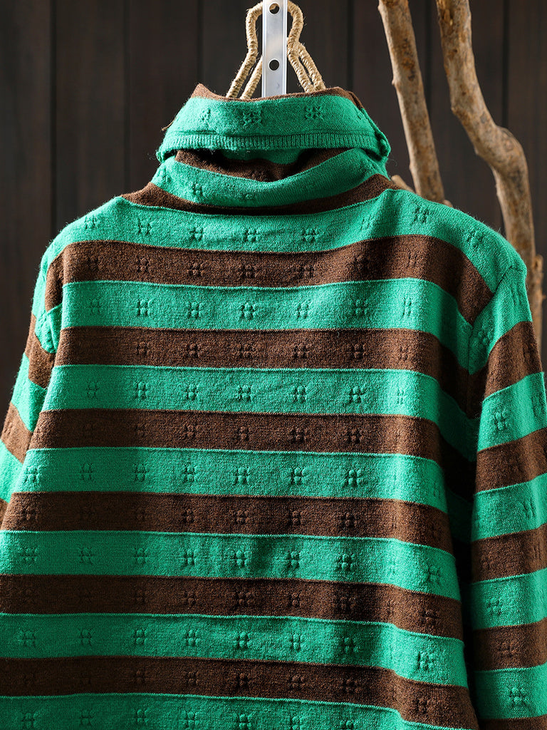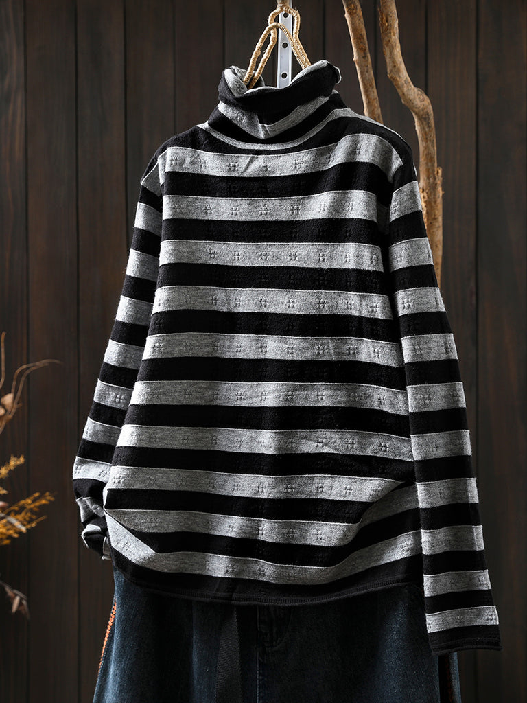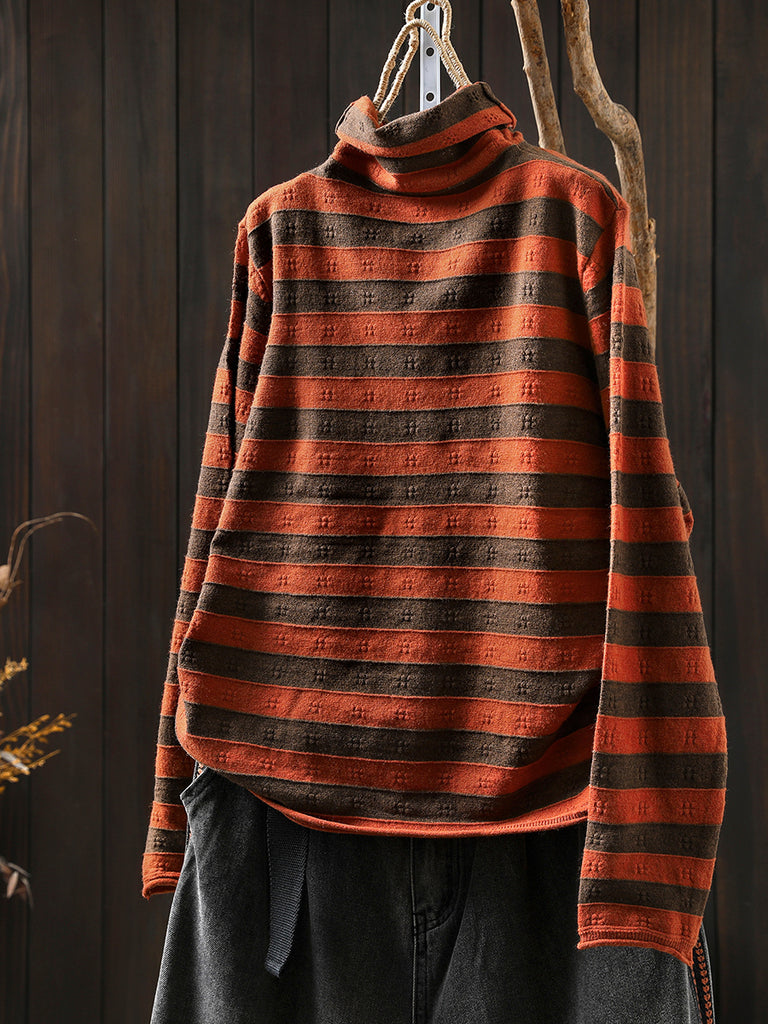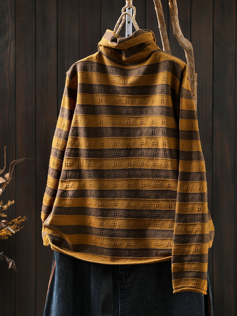 Crafted from a premium blend of 55% acrylic and 45% cotton, this winter essential delivers warmth without compromise. The classic stripe pattern pairs seamlessly with the structured turtleneck collar, while full-length regular sleeves provide complete coverage. Designed for effortless layering, this casual blouse transitions beautifully across autumn and winter seasons, making it an in