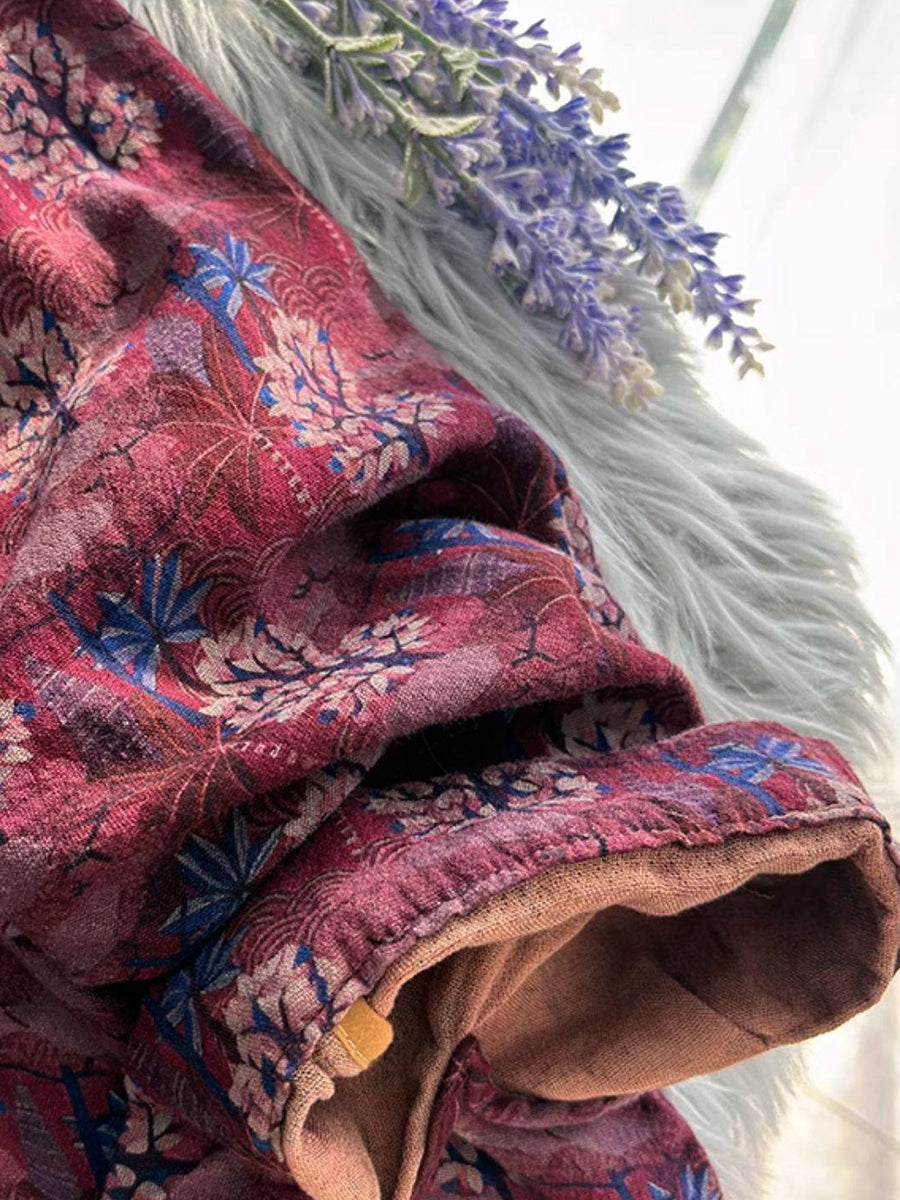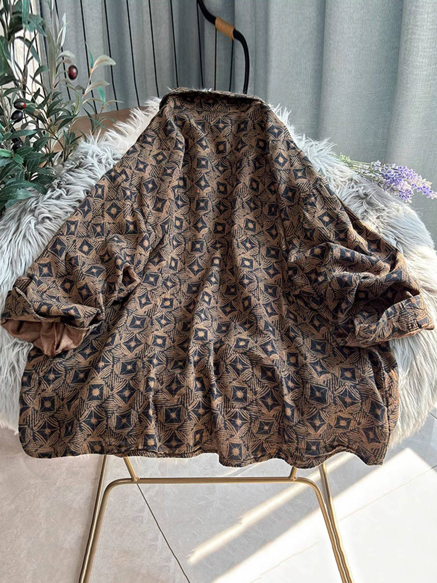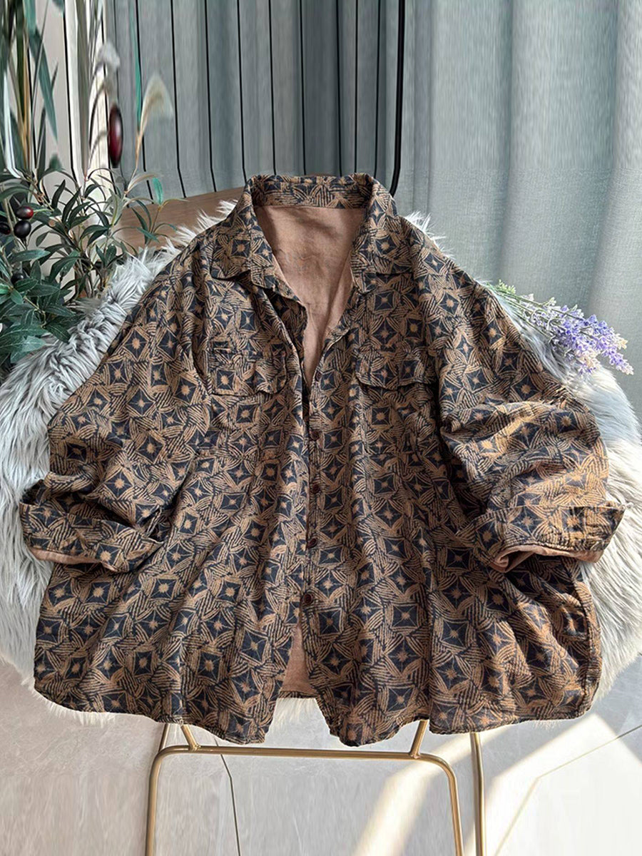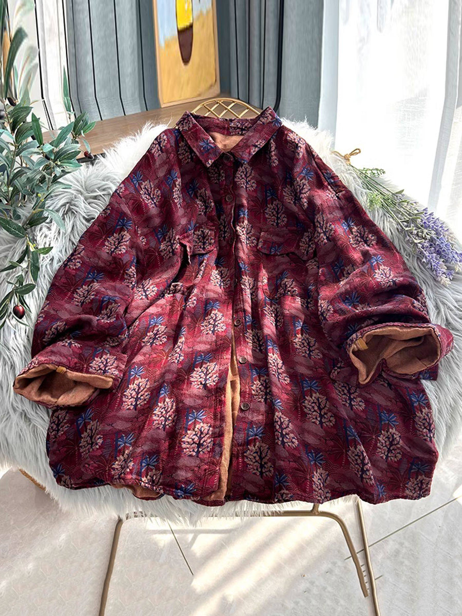 Women Retro Flower Turn-down Collar Shirt Coat