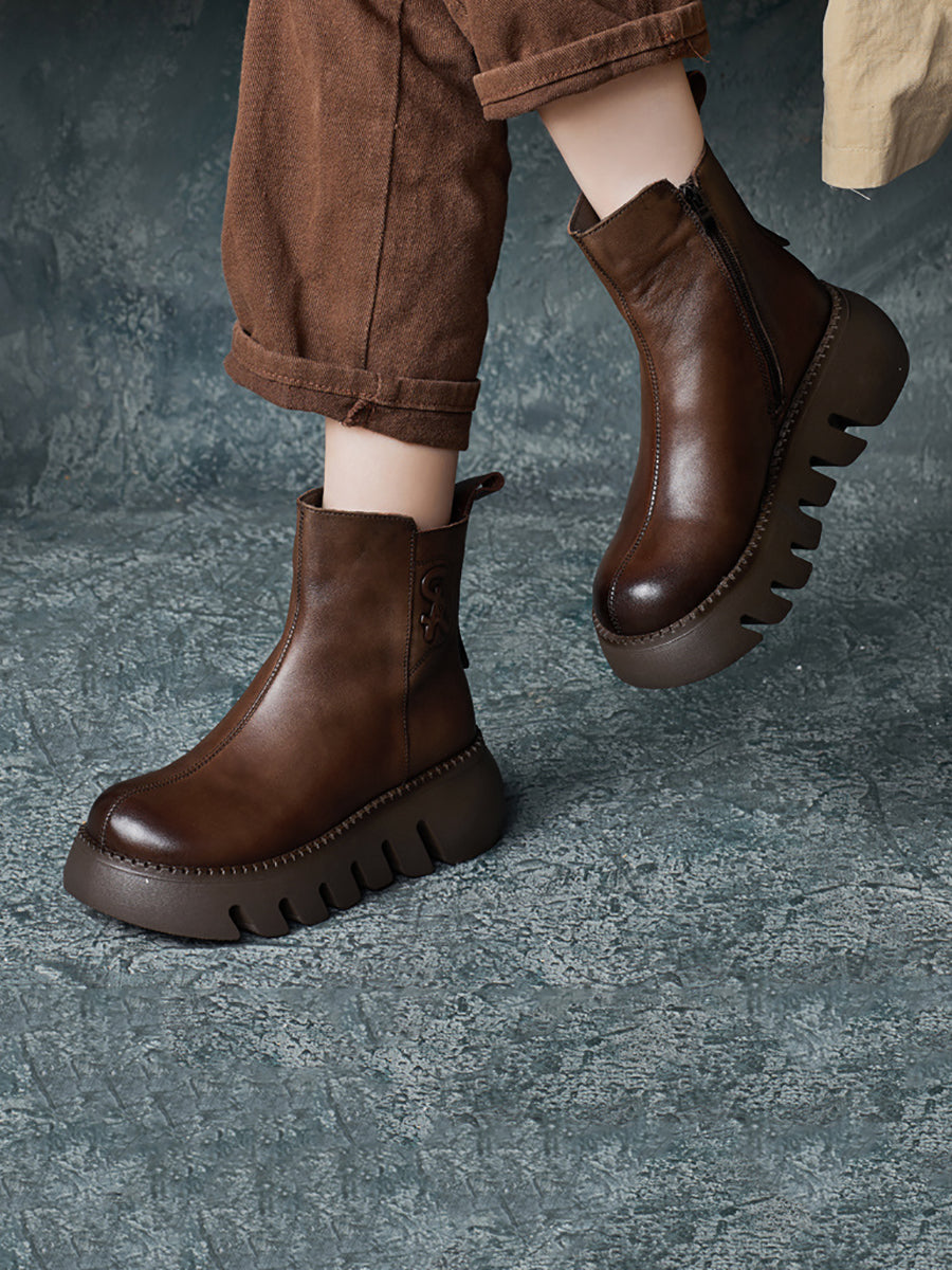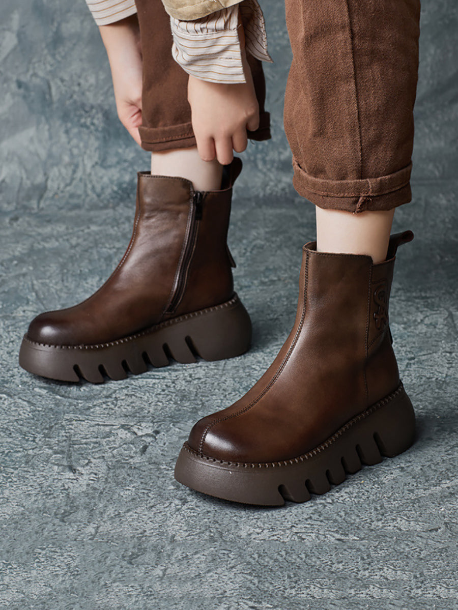 Women Retro Genuine Leather Platform Boots