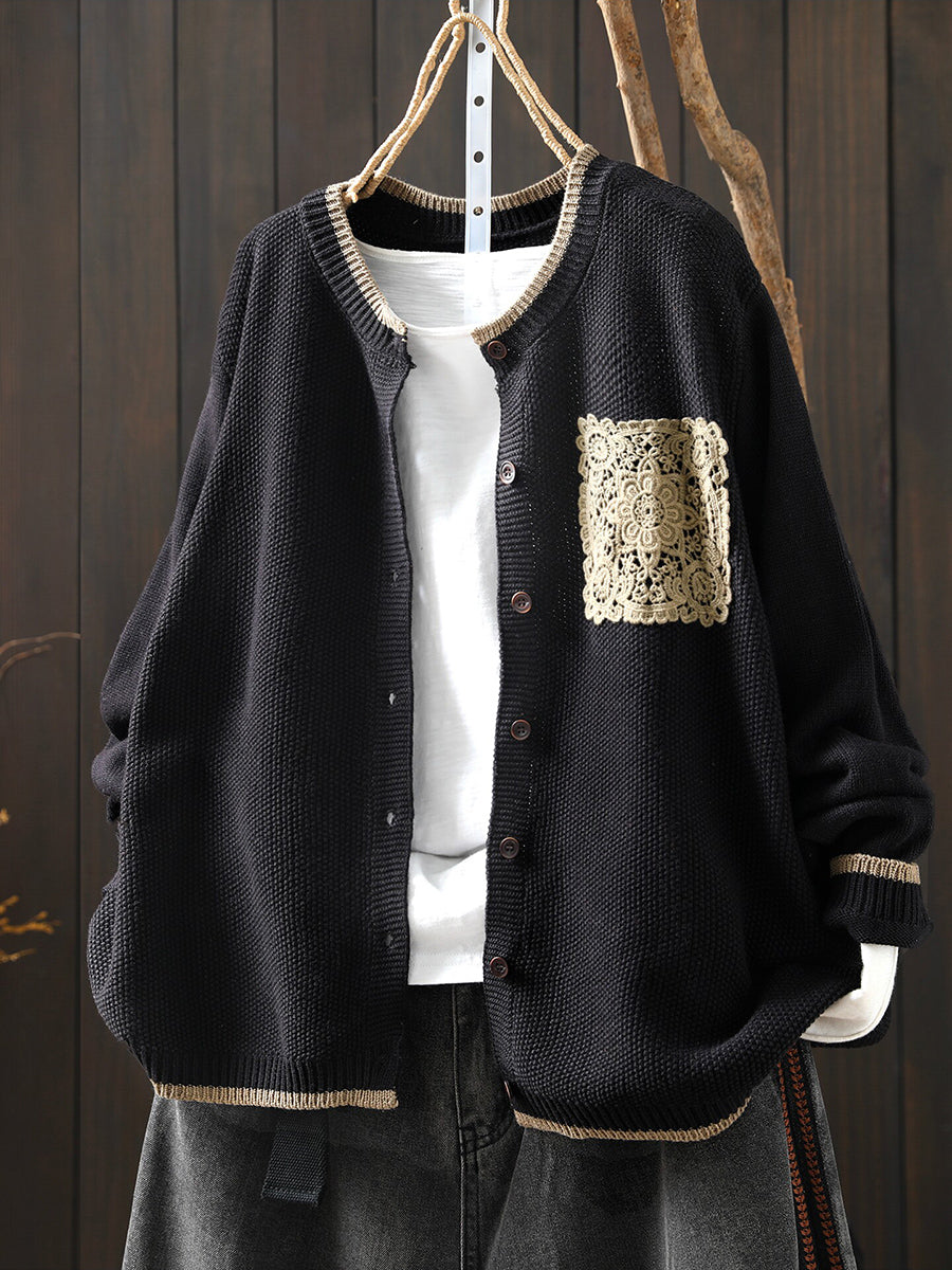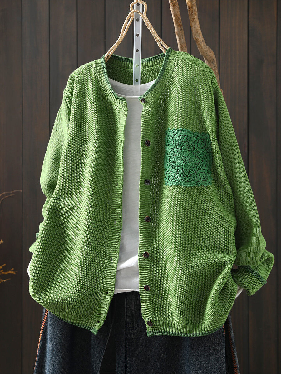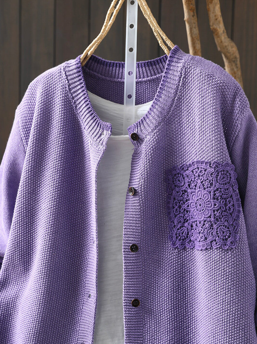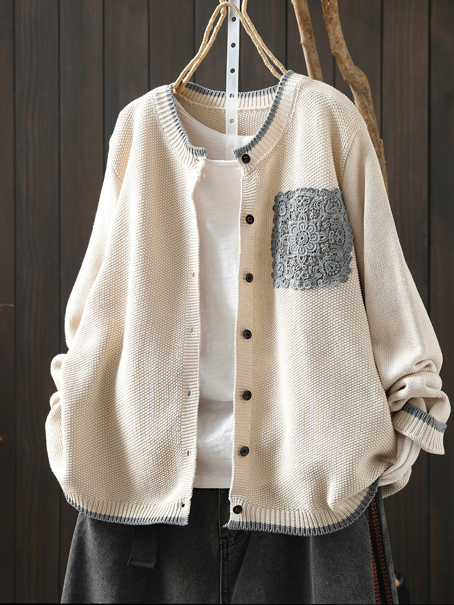 Women Spring Artsy Lace Patch Cotton Cardigan