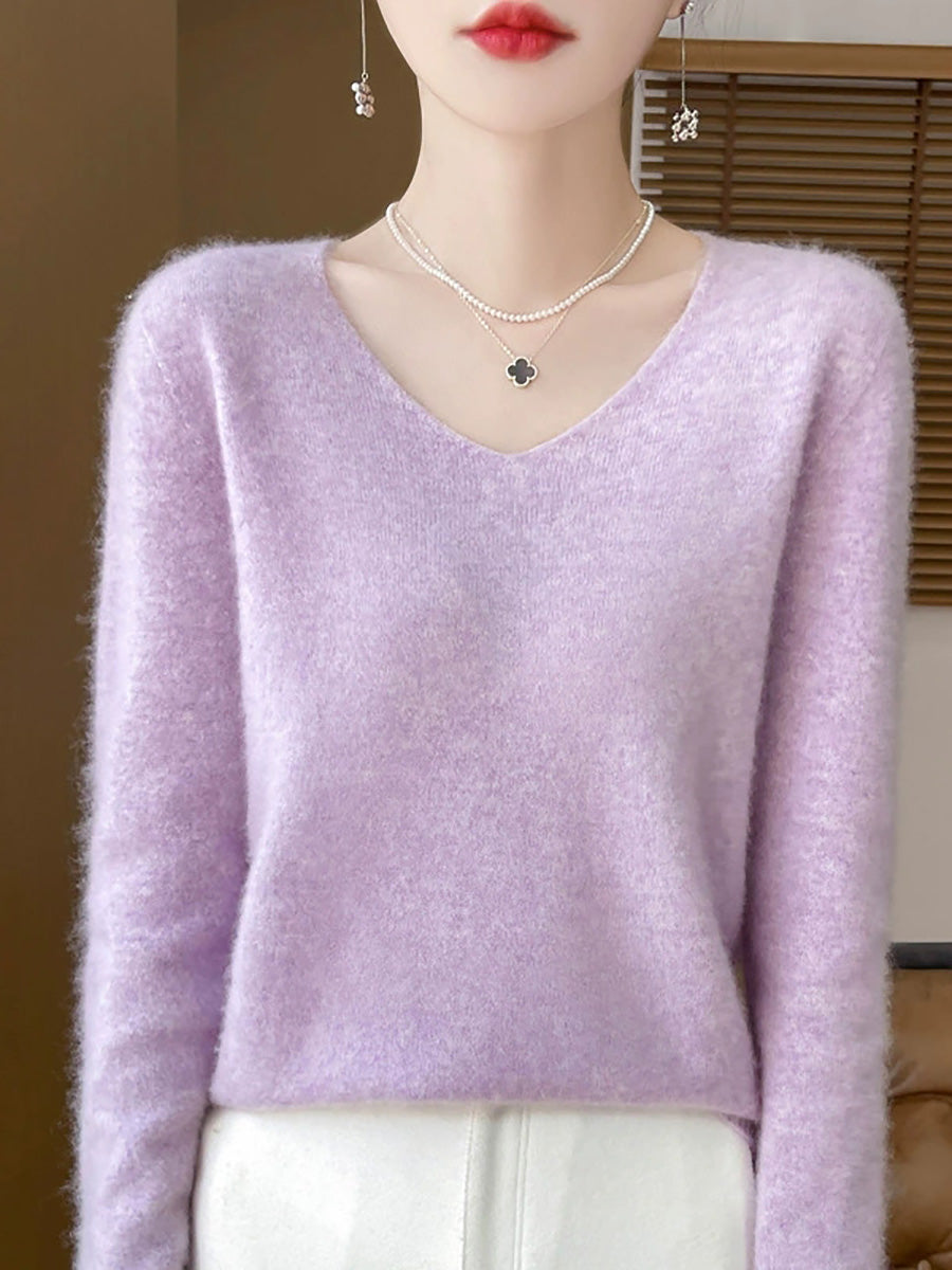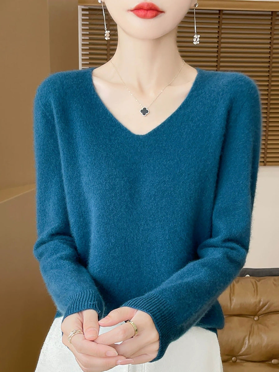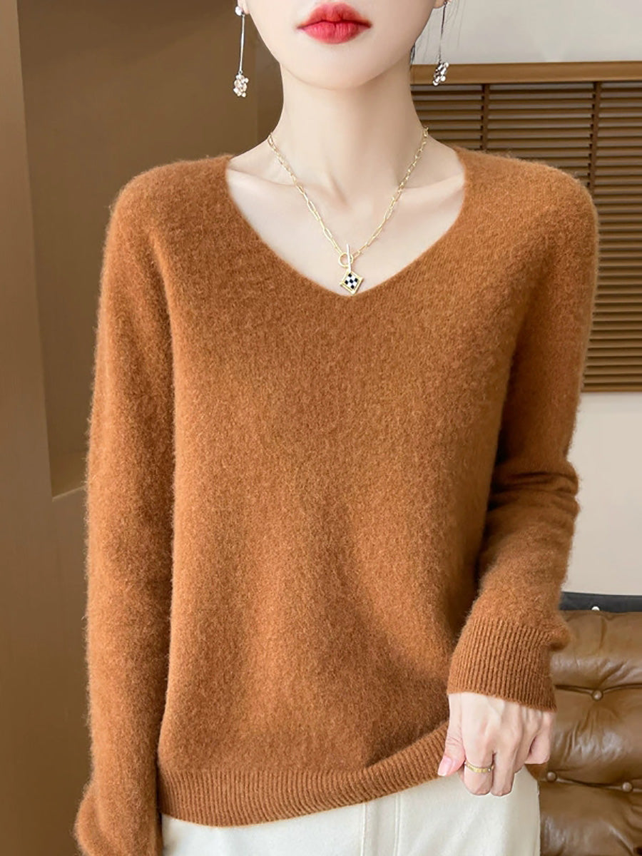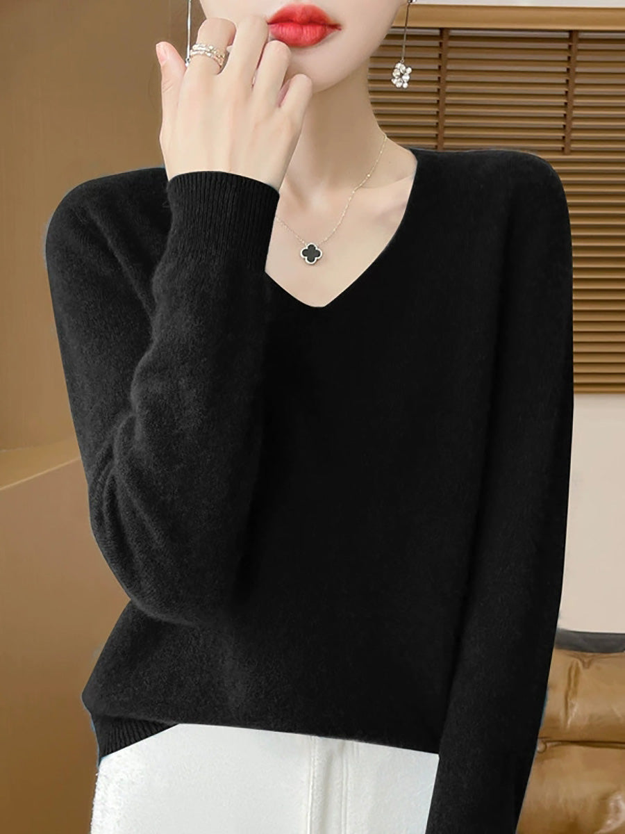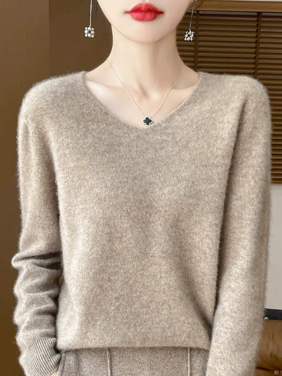 Women Spring Artsy Pure Color V-Neck Sweater