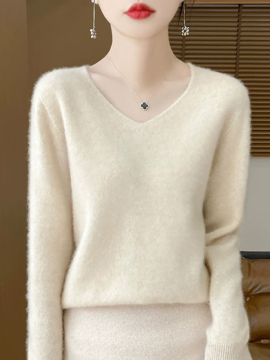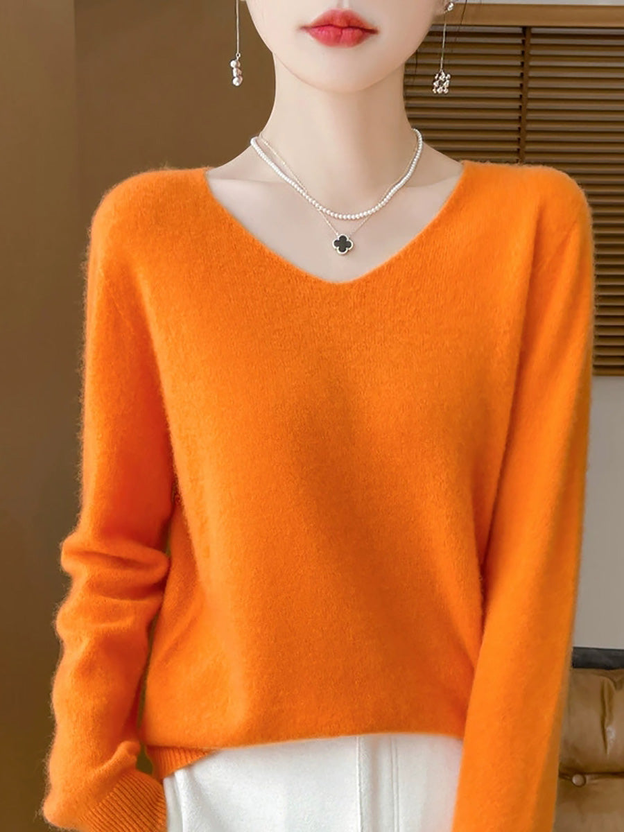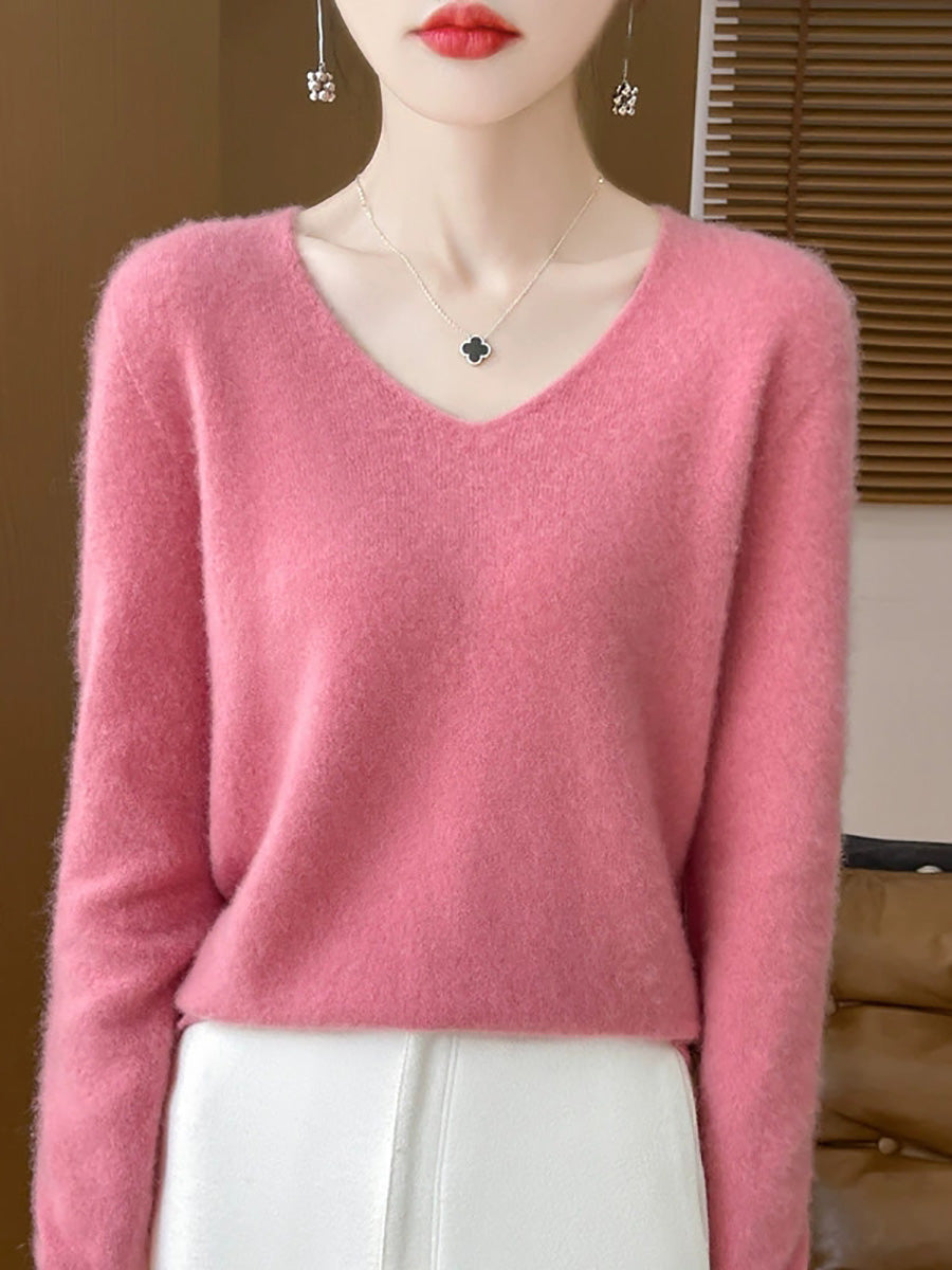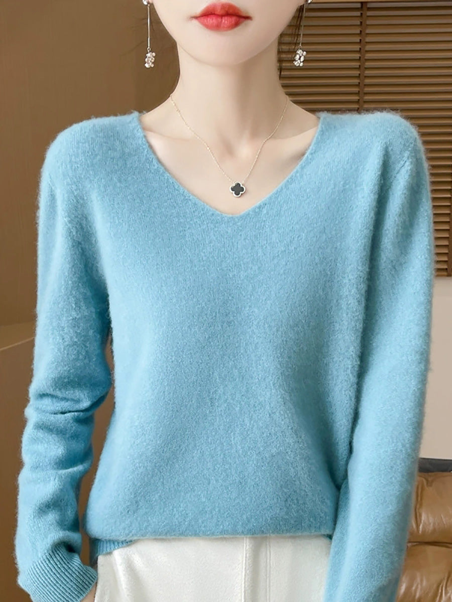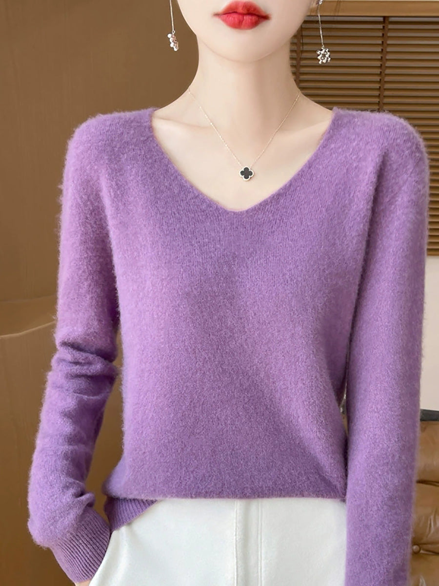 Women Spring Artsy Pure Color V-Neck Sweater