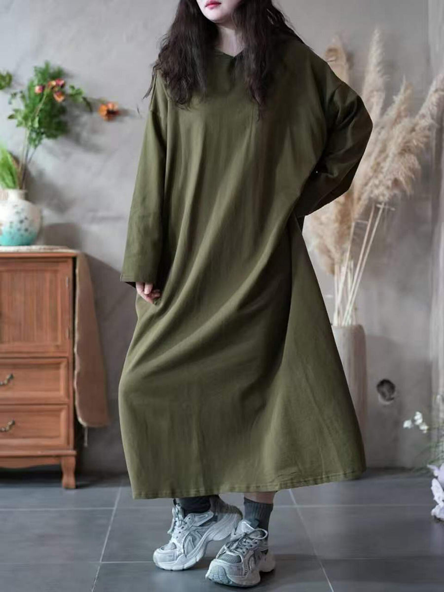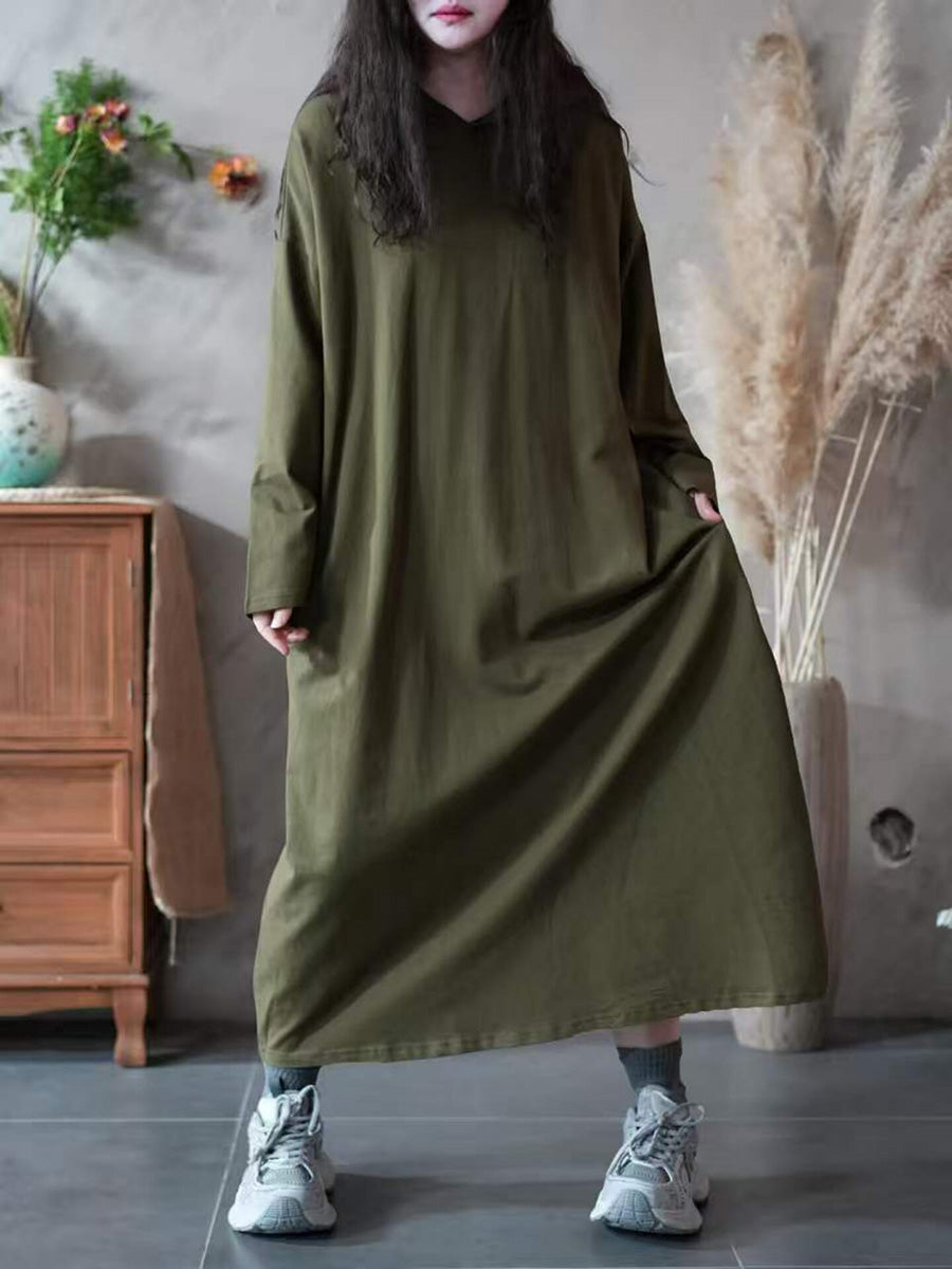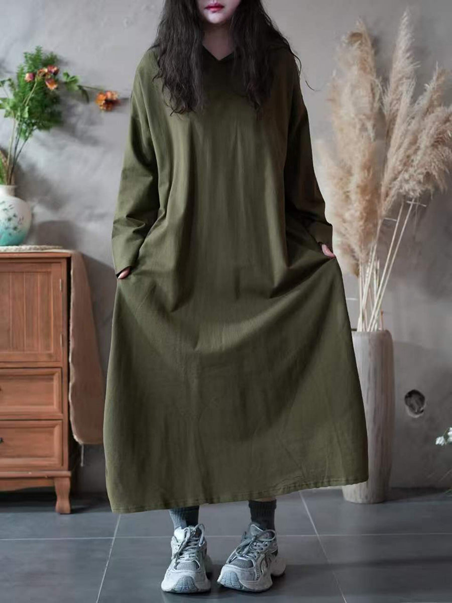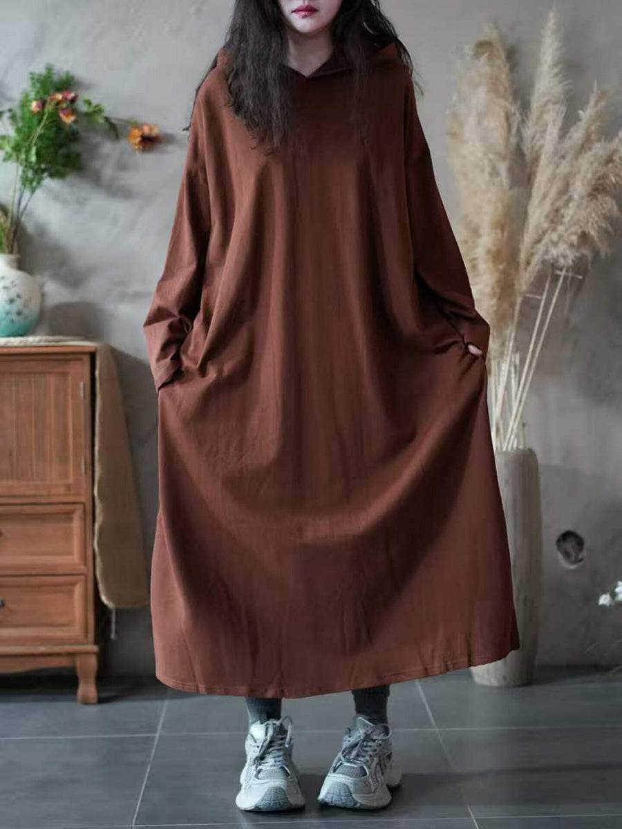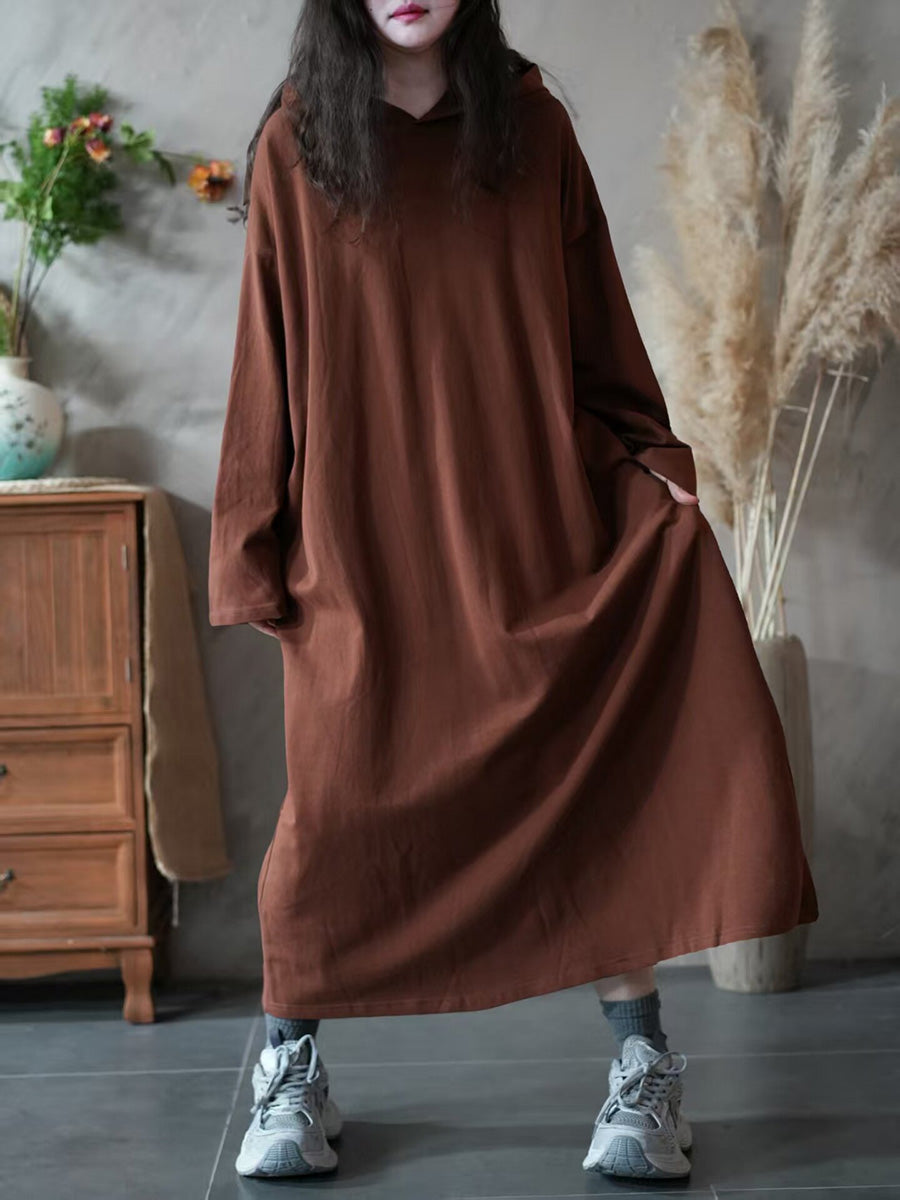 Women Spring Casual Pure Color Hooded Dress