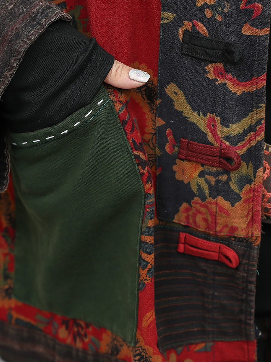 Women Spring Ethnic Stripe Spliced O-Neck Suits