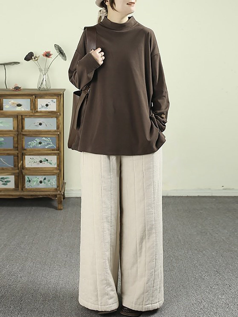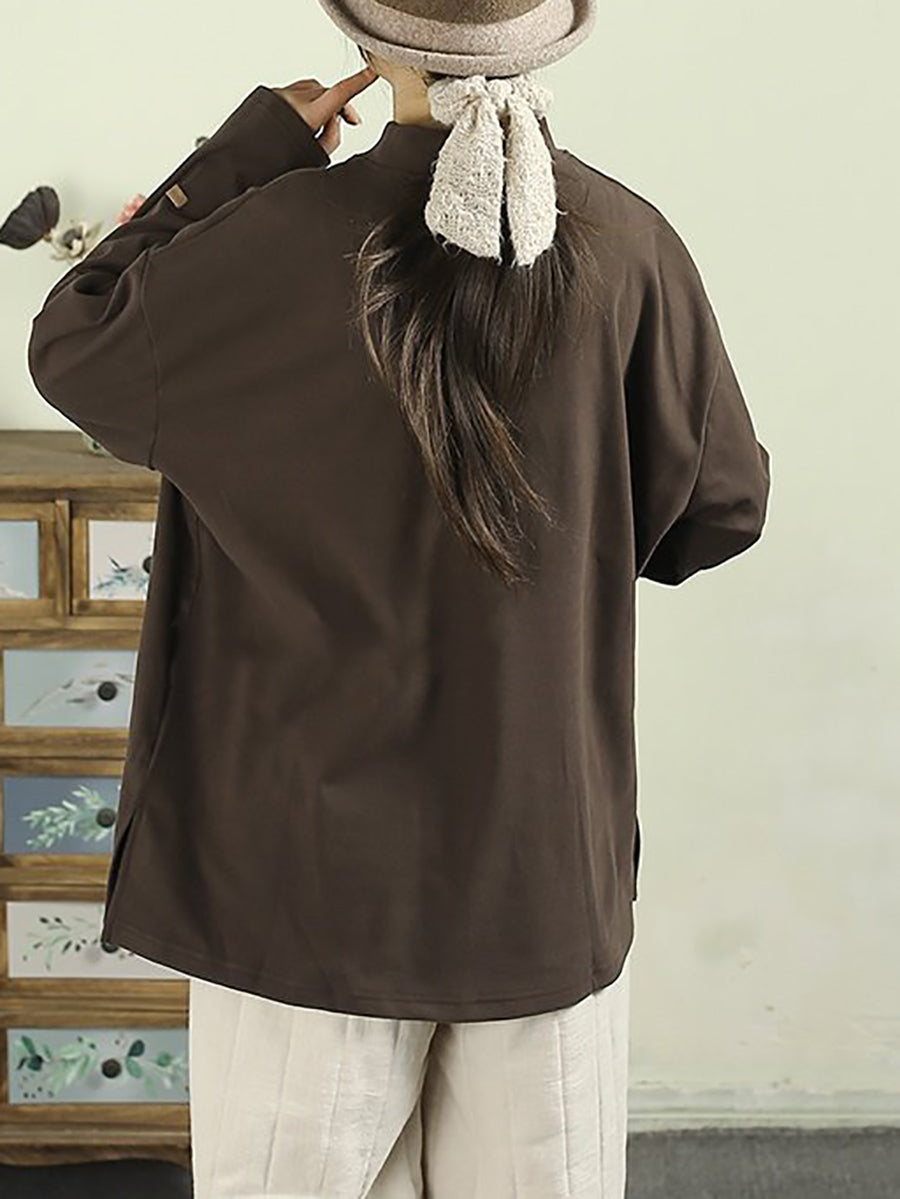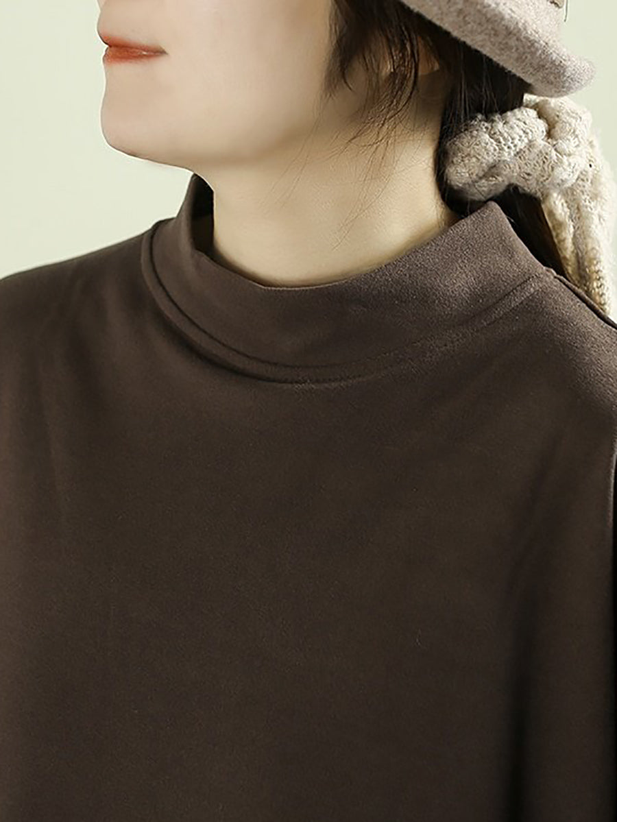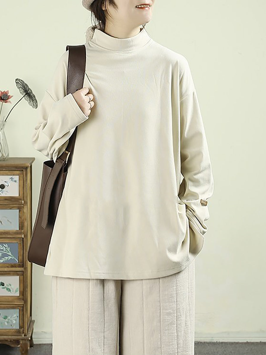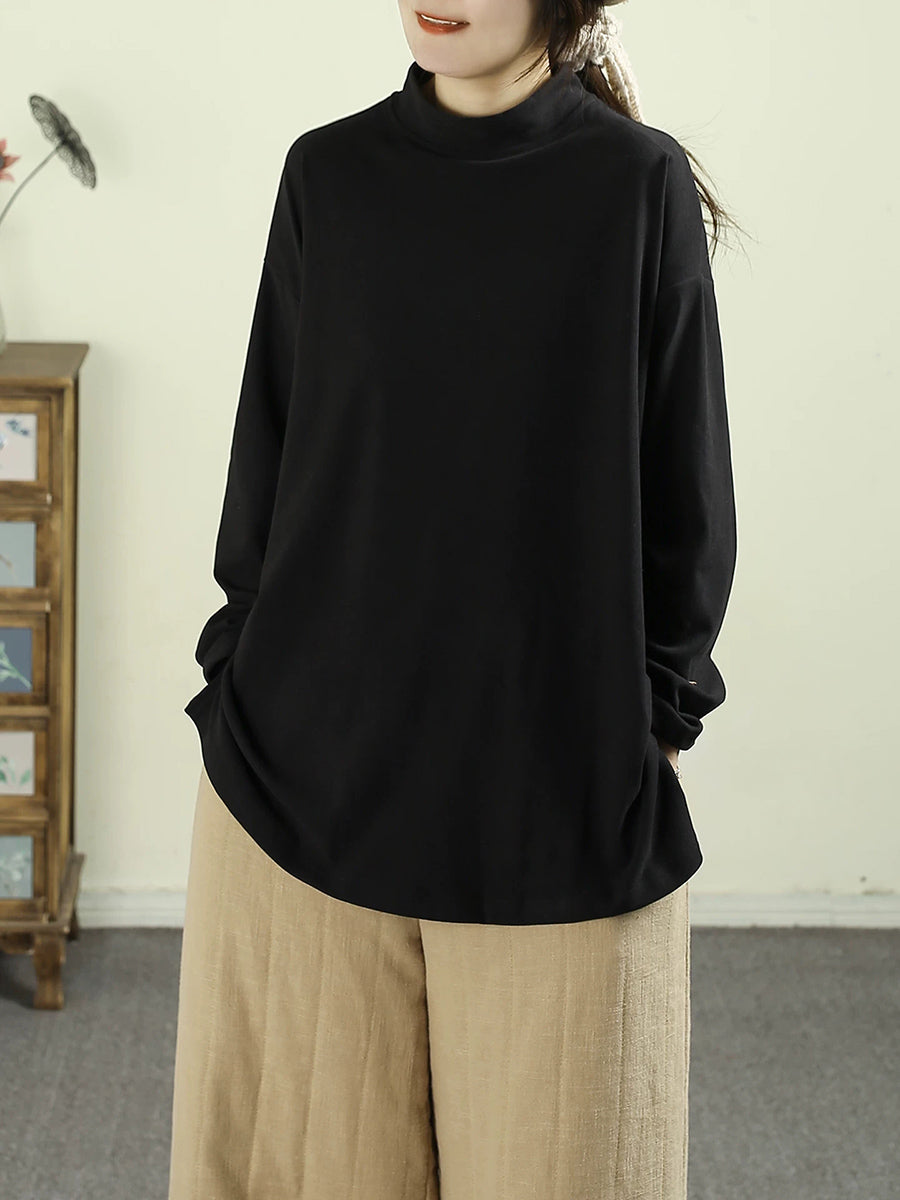Women Spring Pure Color Half-Turlteneck Bottom Shirt