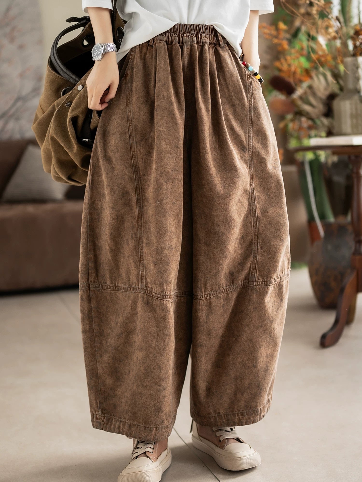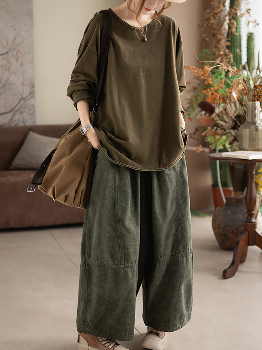 Women Spring Retro Denim Harem Pants