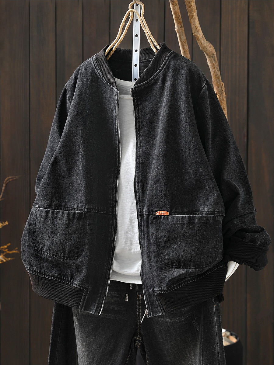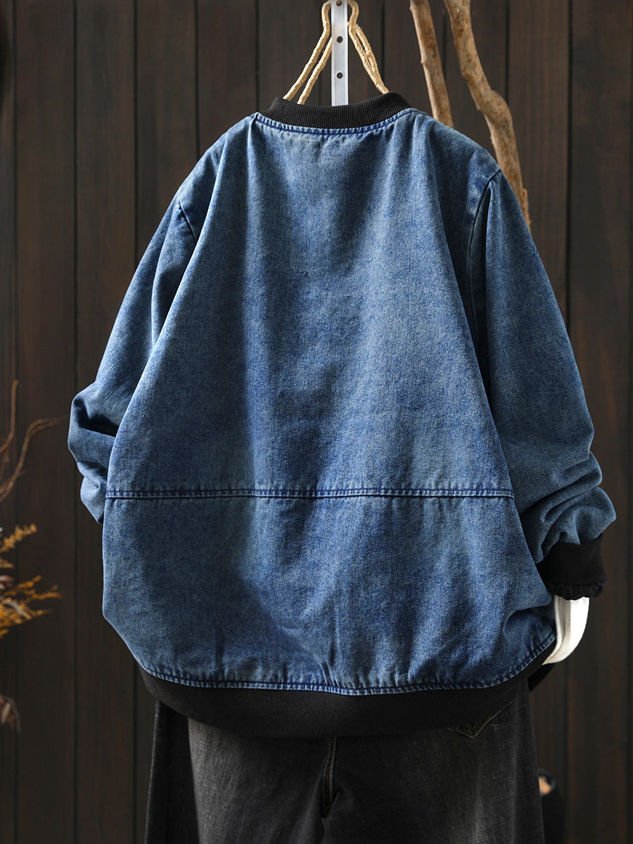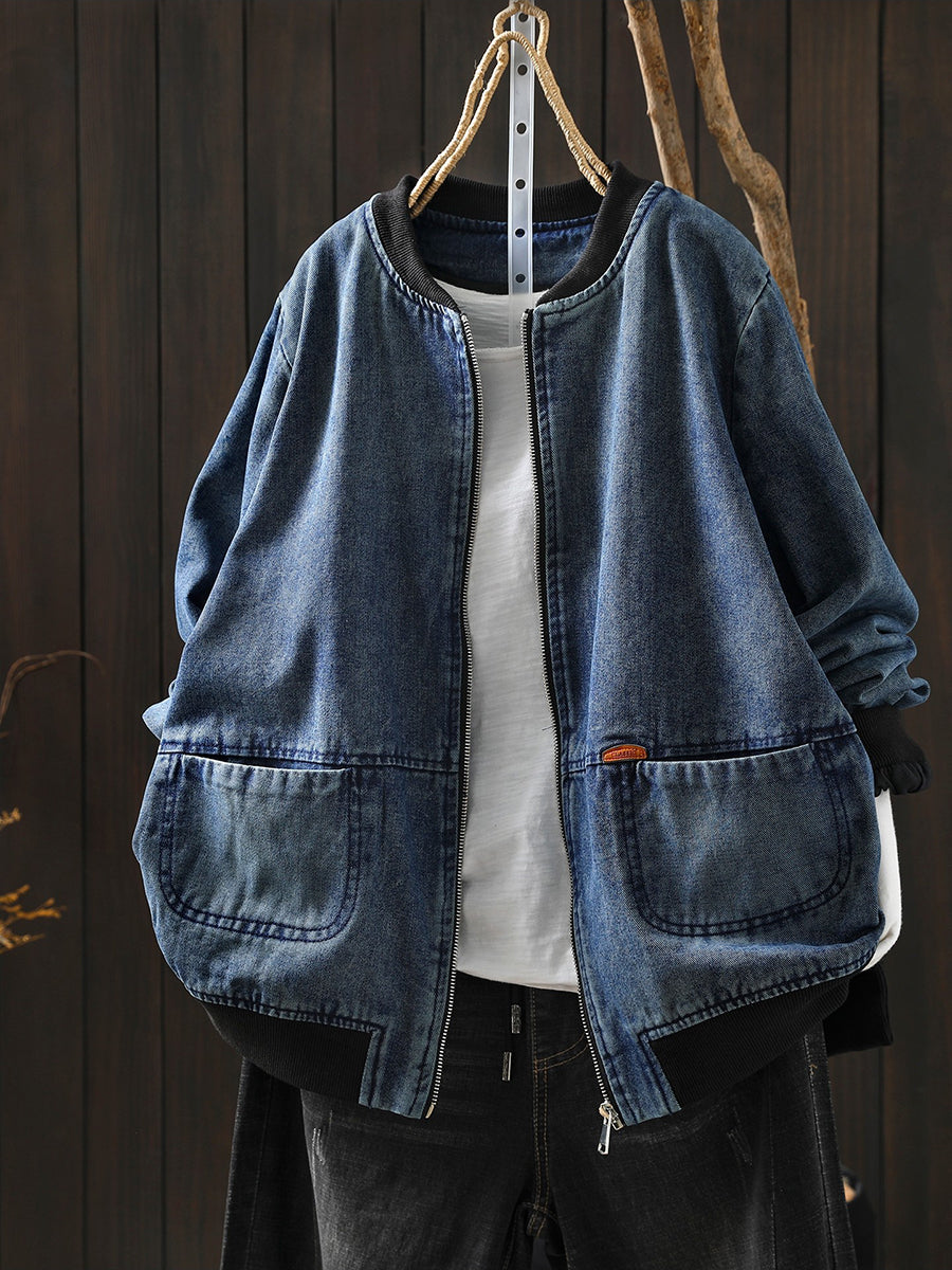 Women Spring Retro Denim Stand Collar Coat