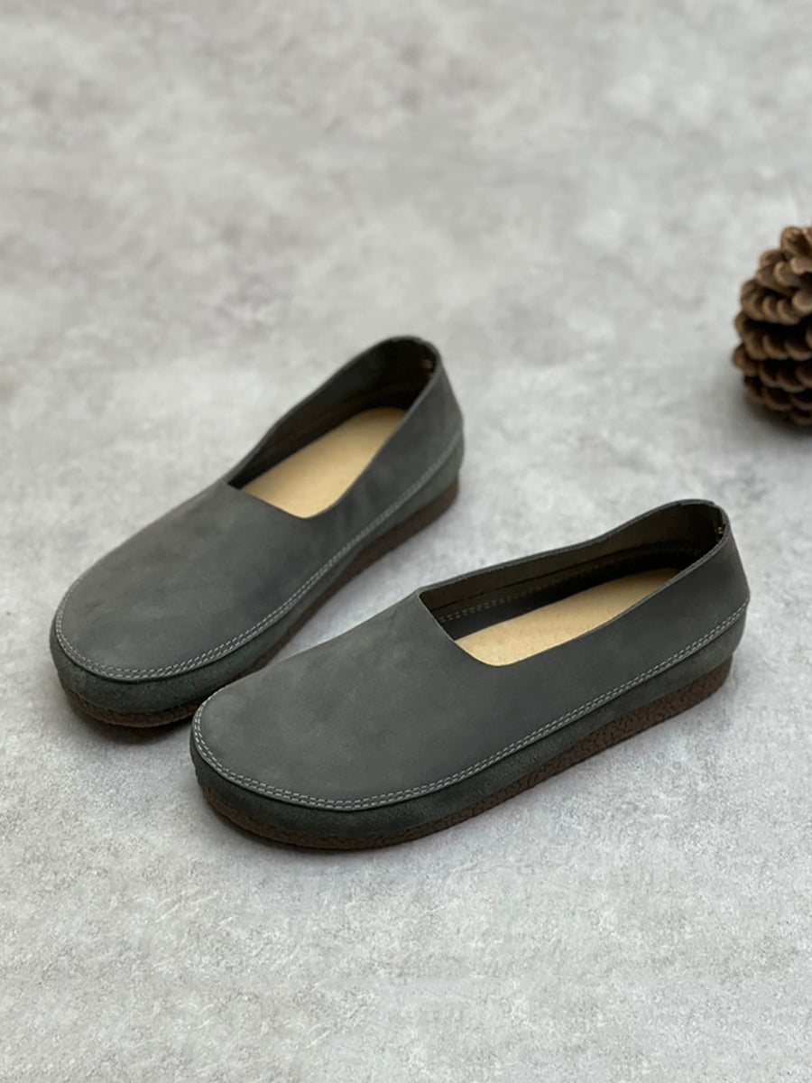 Women Spring Retro Genuine Leather Low Heel Shoes