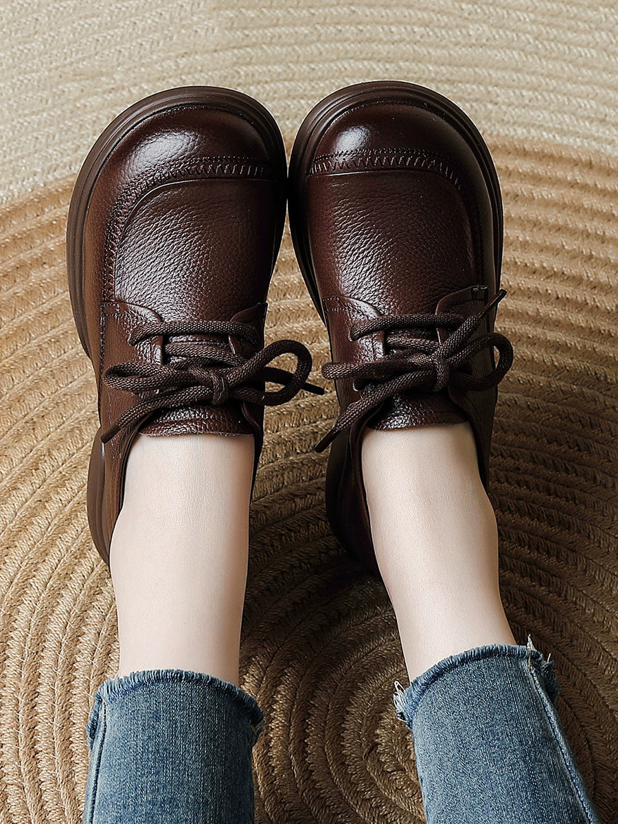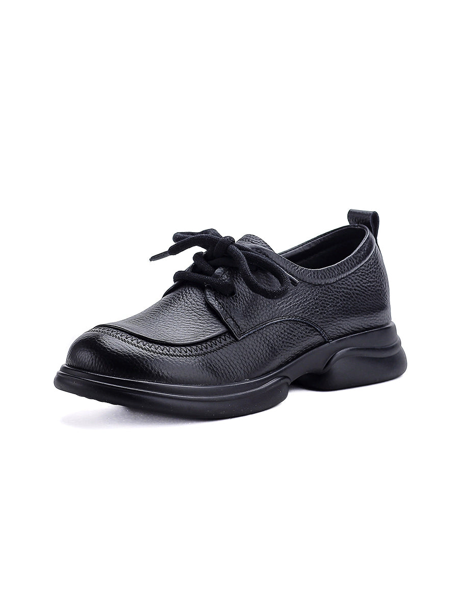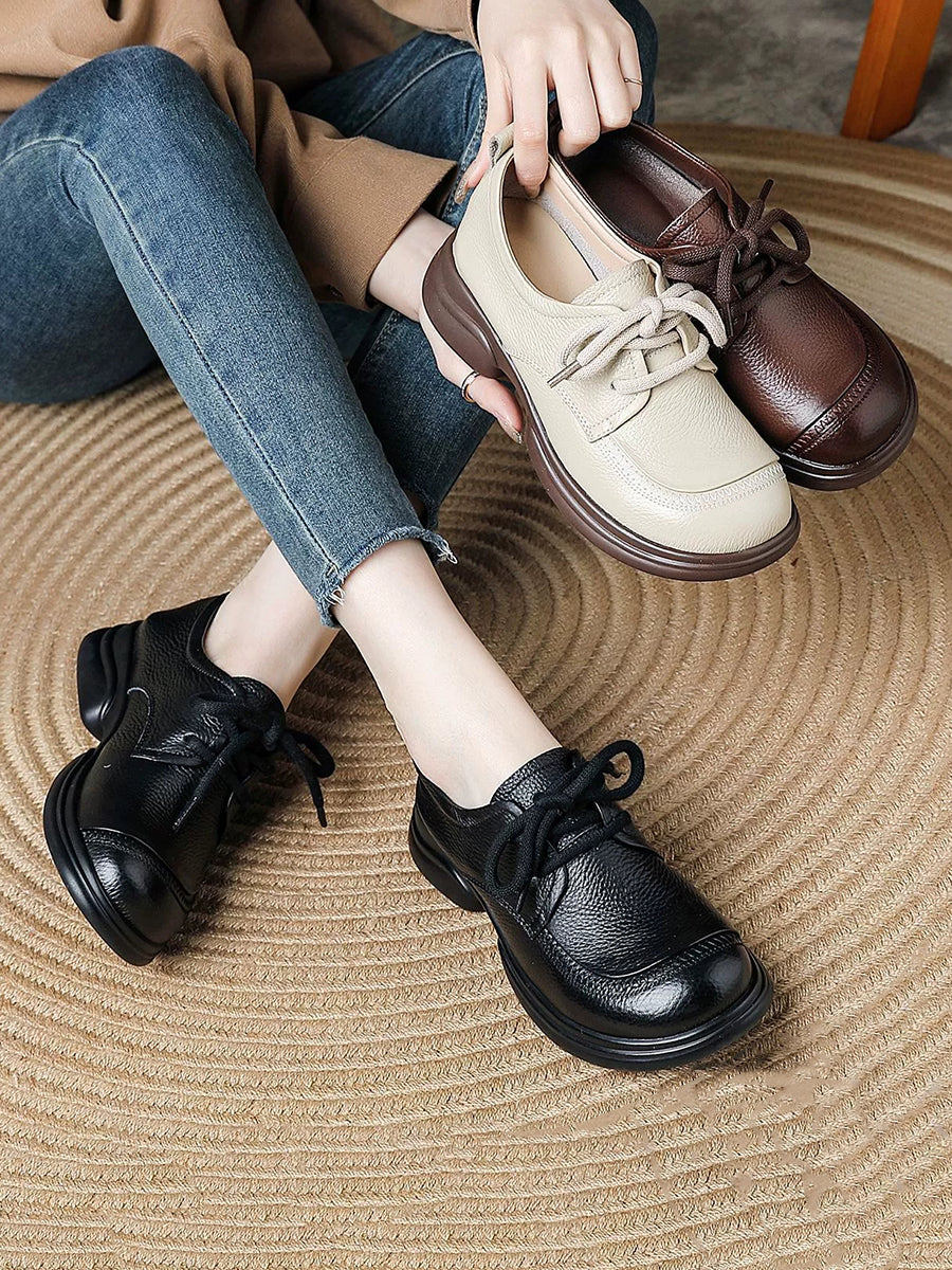 Women Spring Retro Genuine Leather Low Heel Shoes