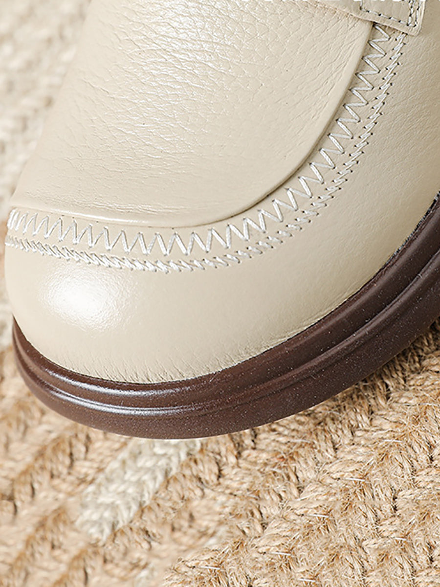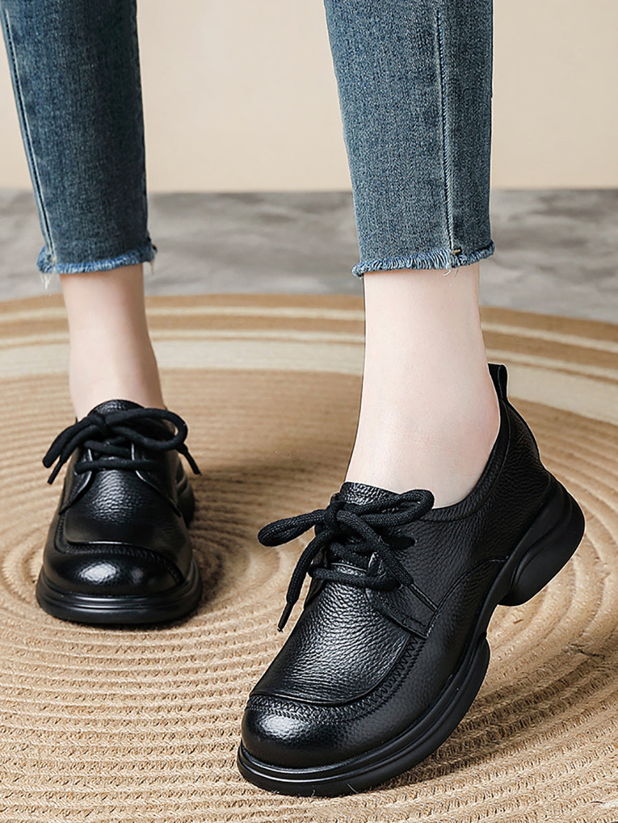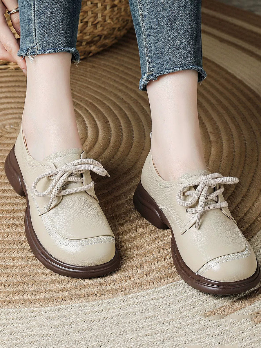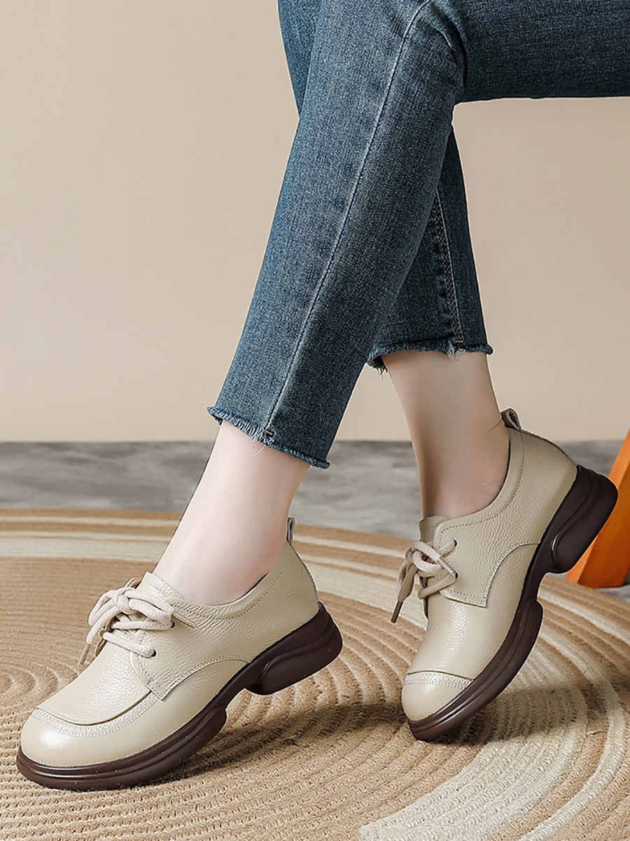 Women Spring Retro Genuine Leather Low Heel Shoes