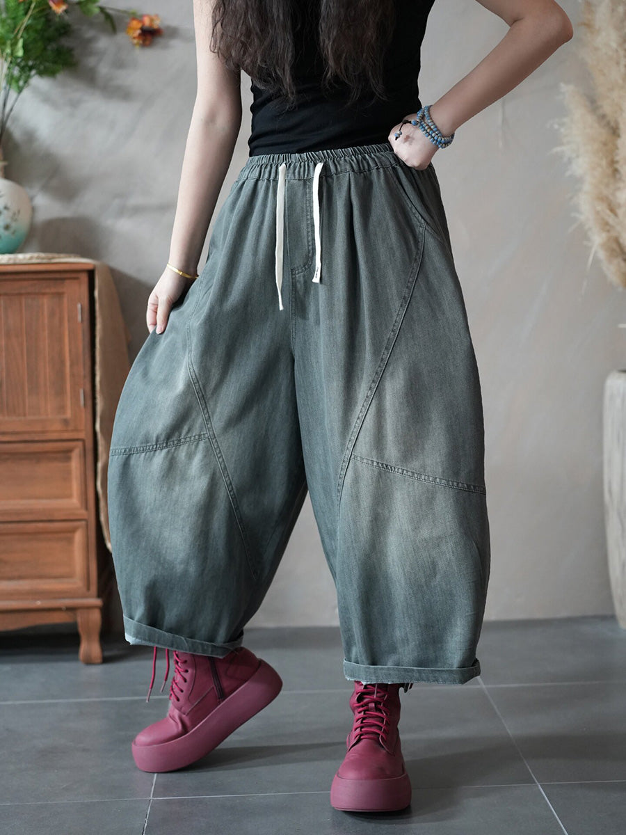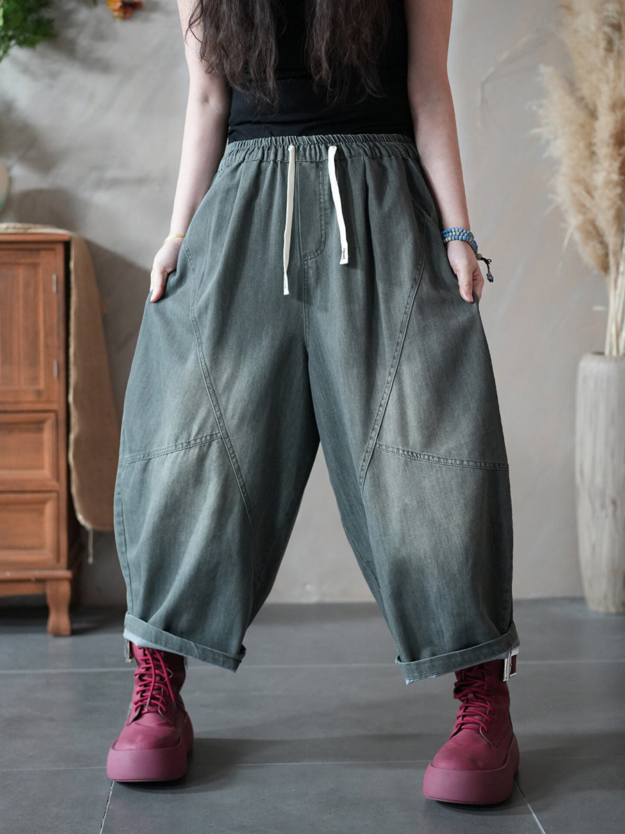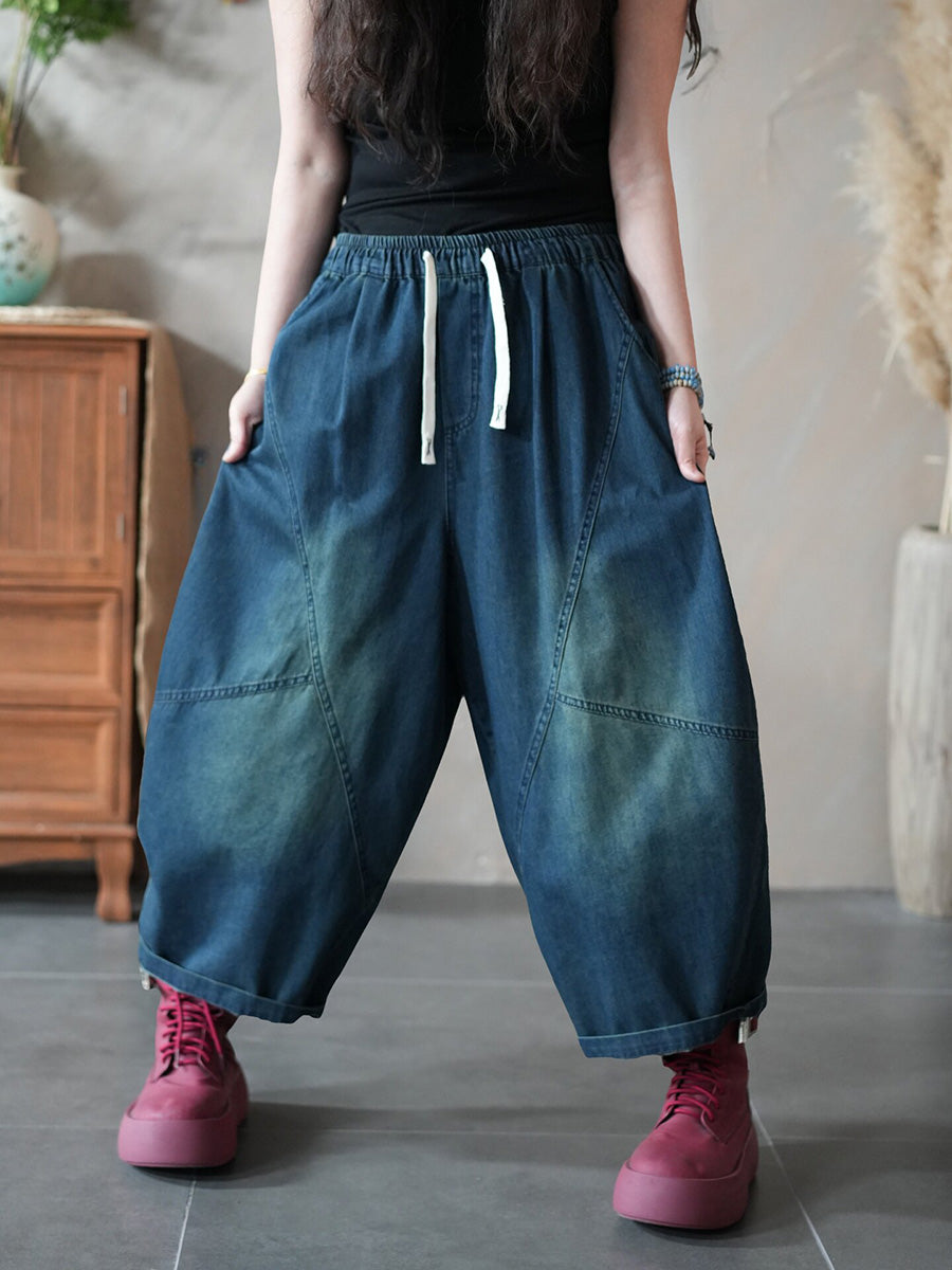 Women Spring Retro Pure Color Denim Harem Pants
