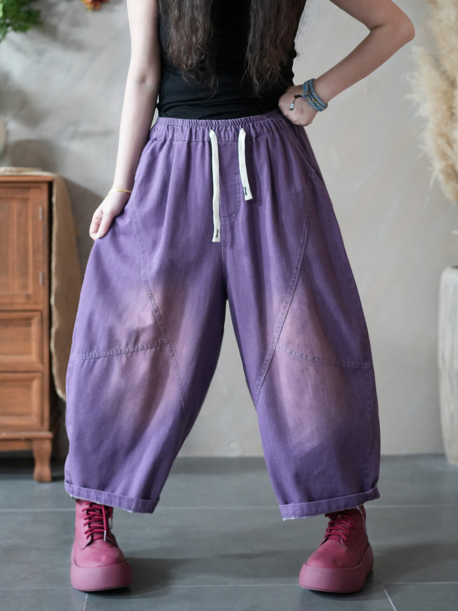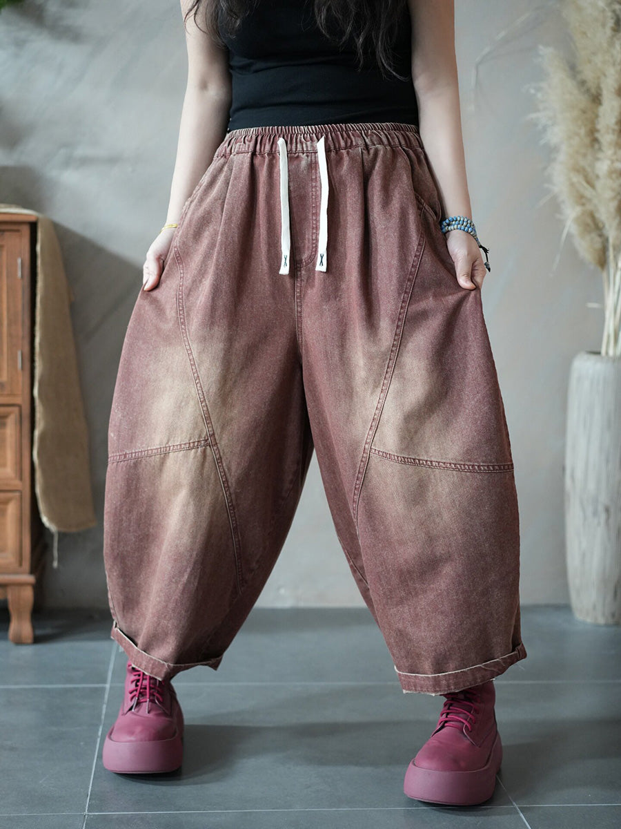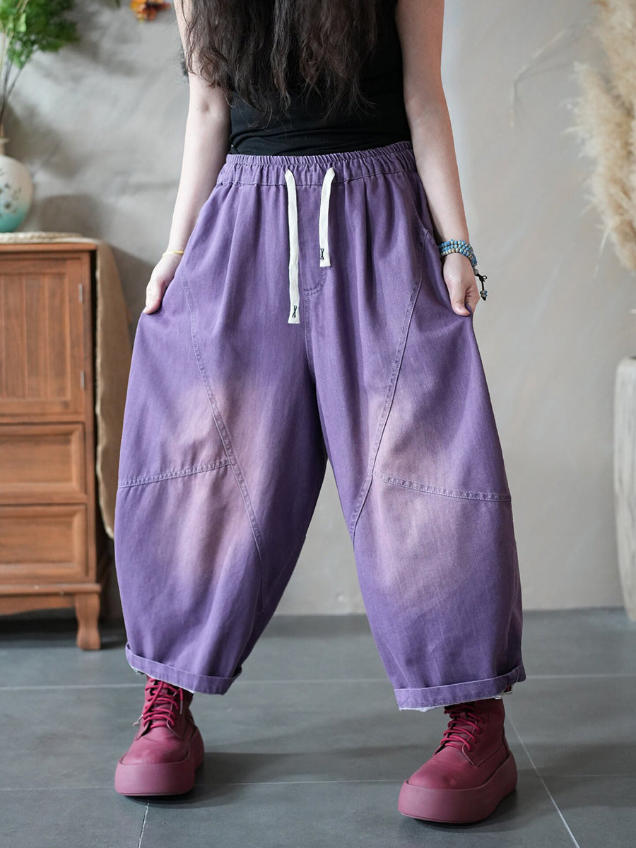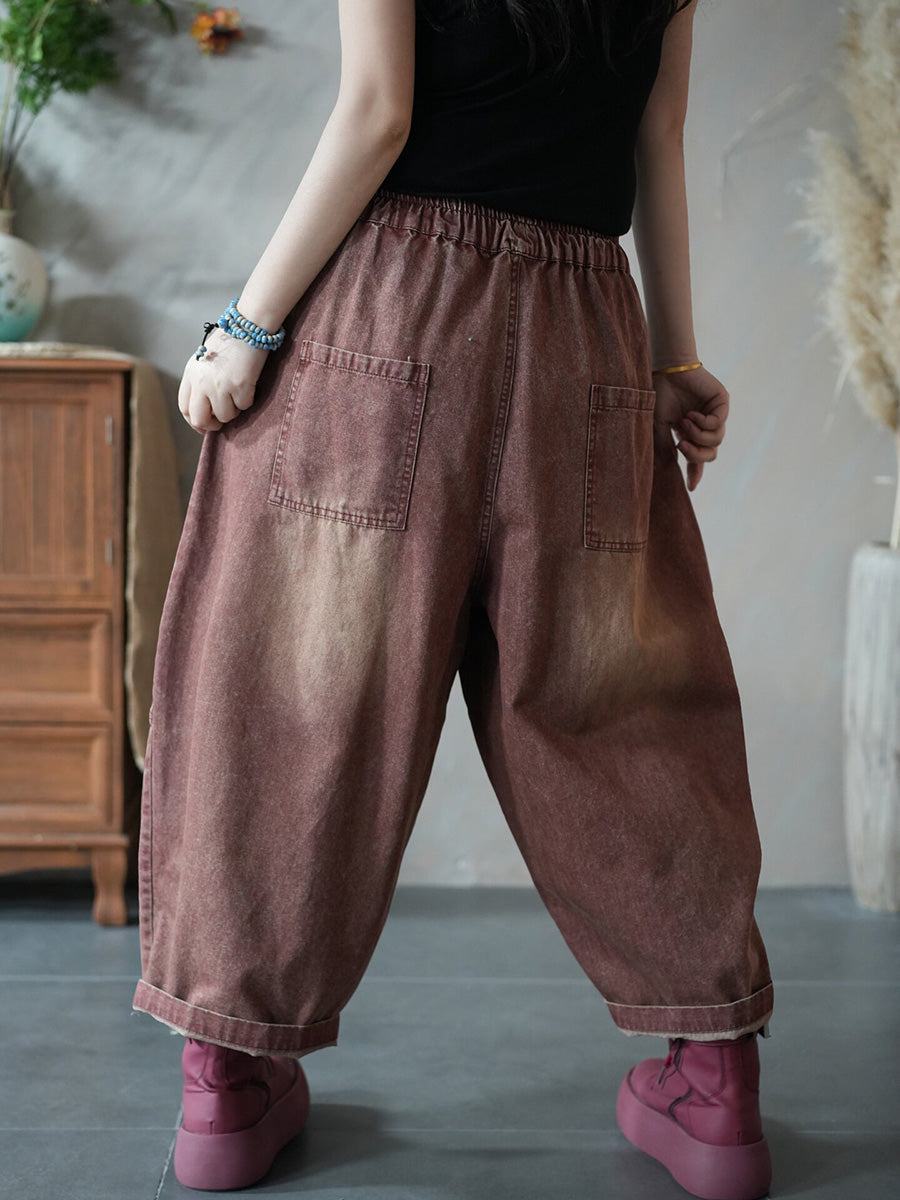Women Spring Retro Pure Color Denim Harem Pants