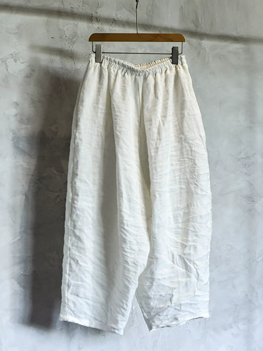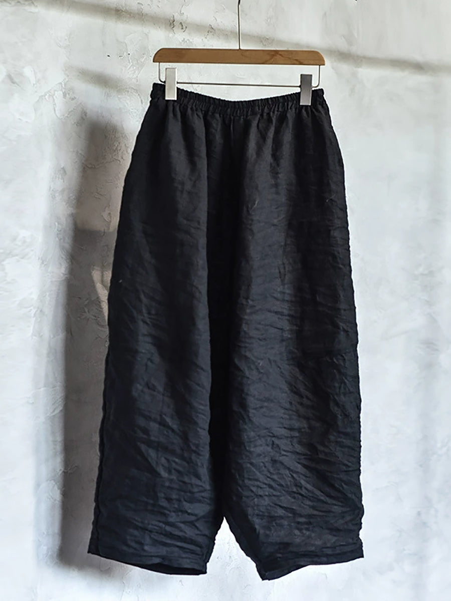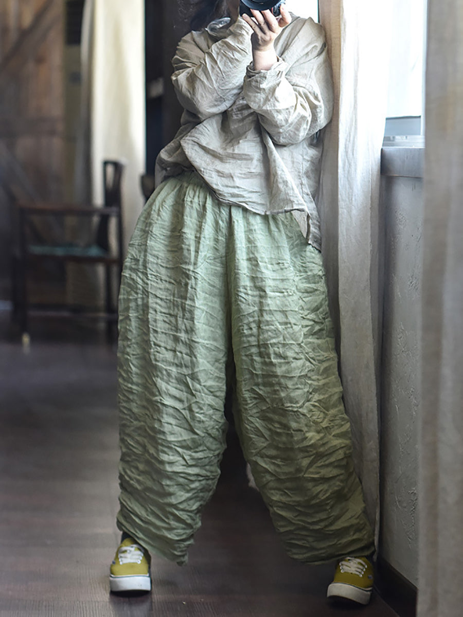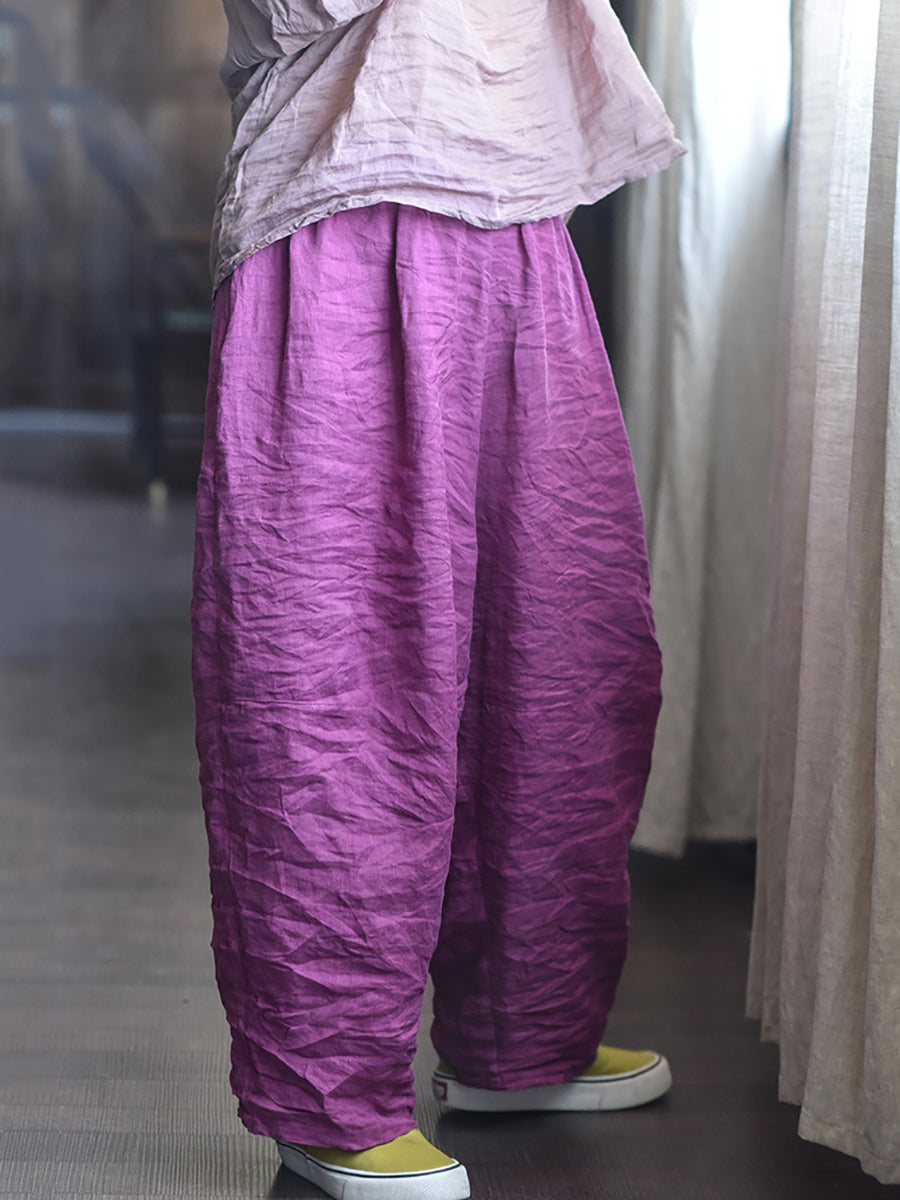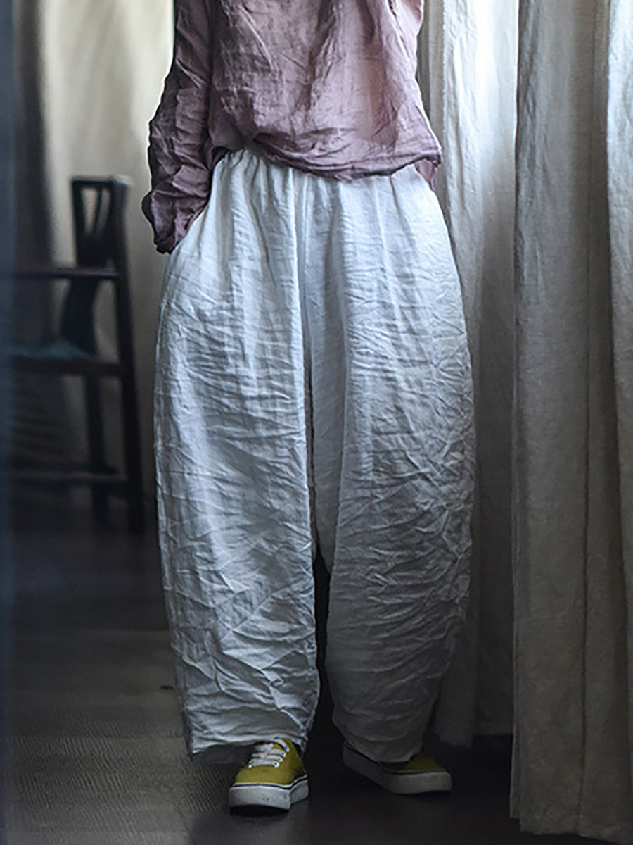 Women Spring Retro Pure Color Linen Wide-leg Pants
