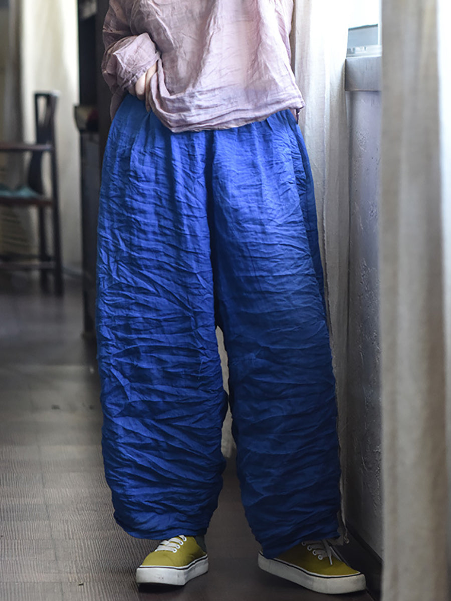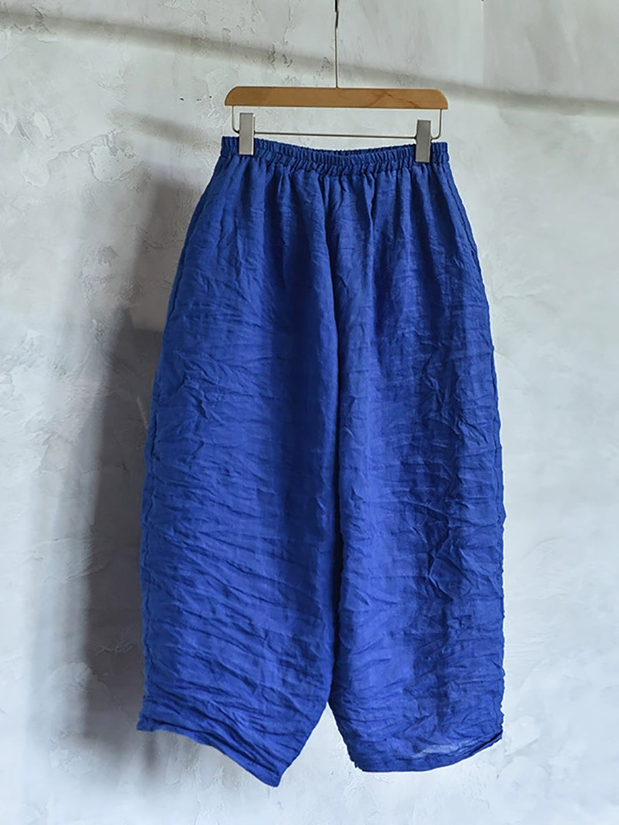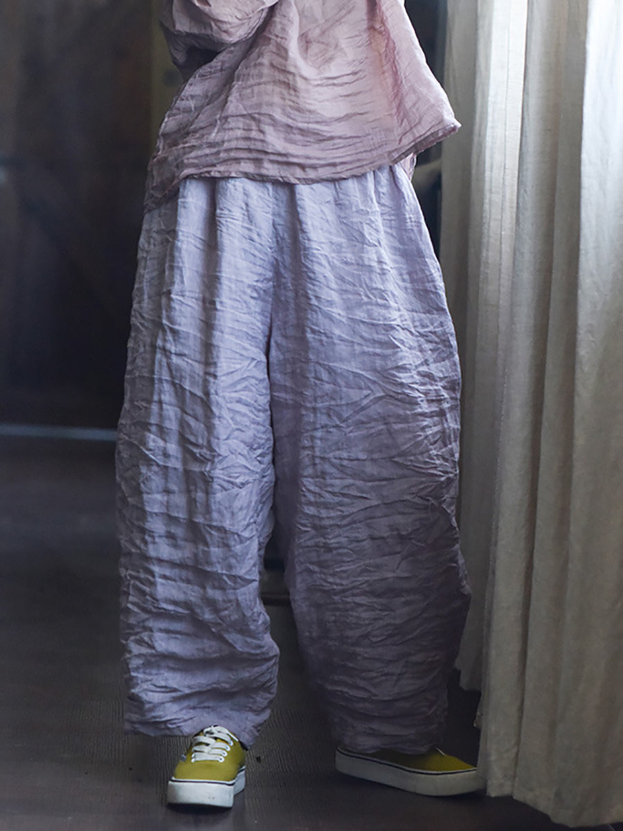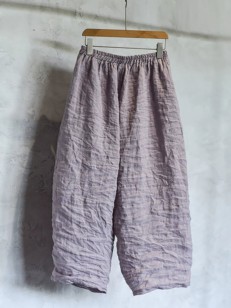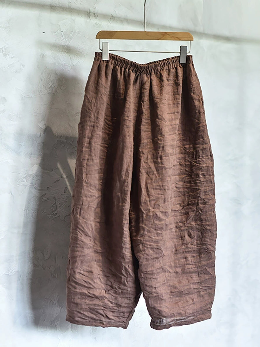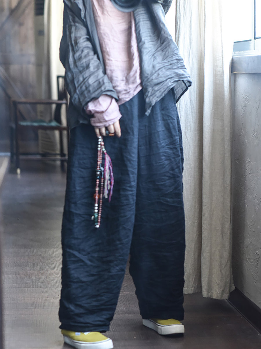 Women Spring Retro Pure Color Linen Wide-leg Pants