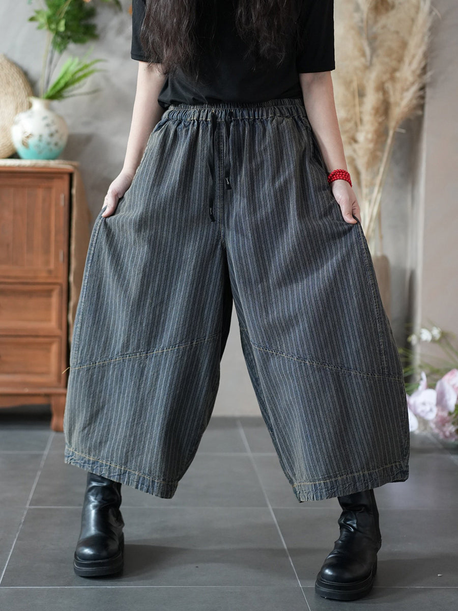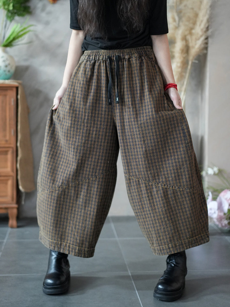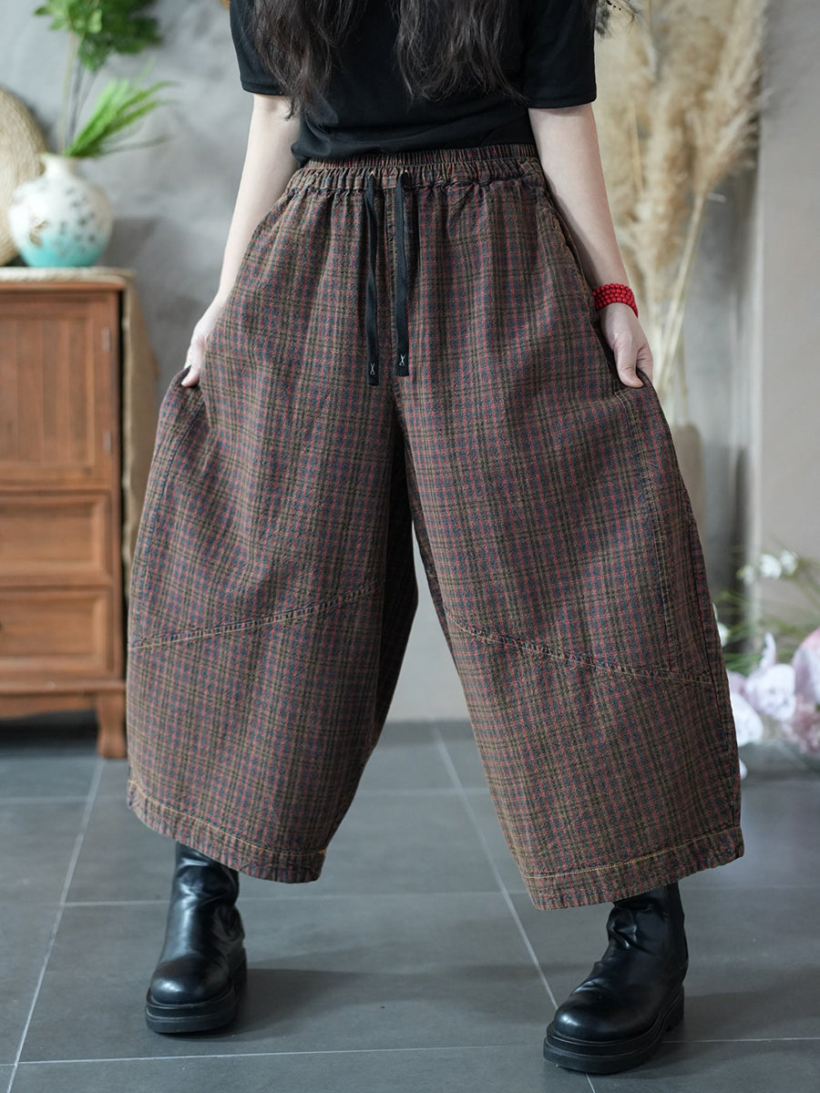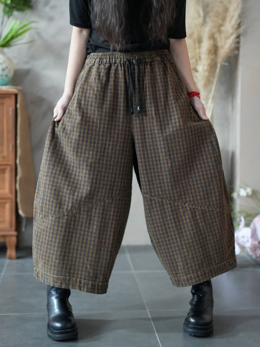 Women Spring Retro Plaid Wide-leg Pants