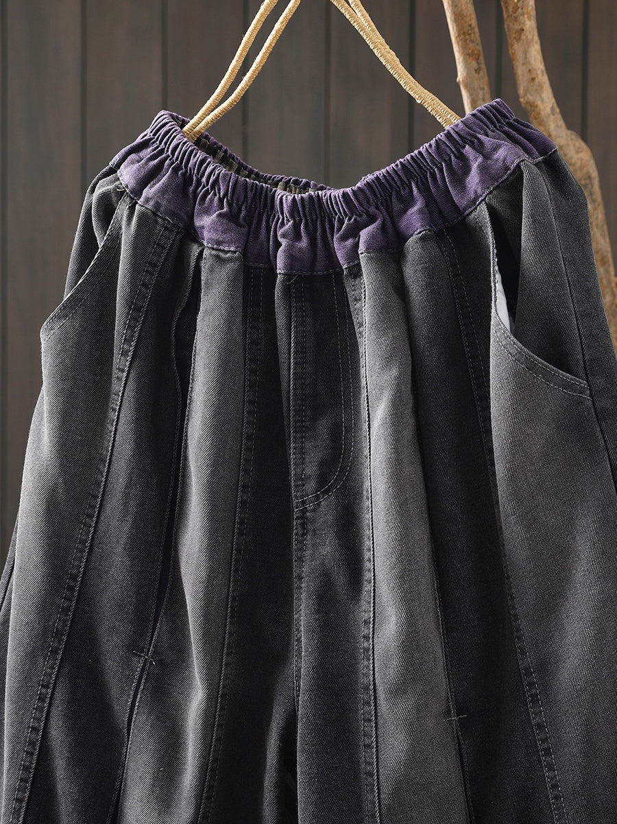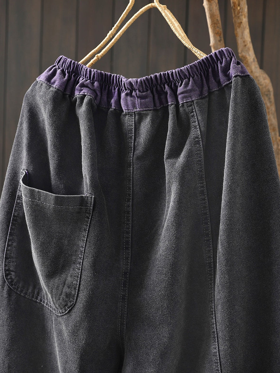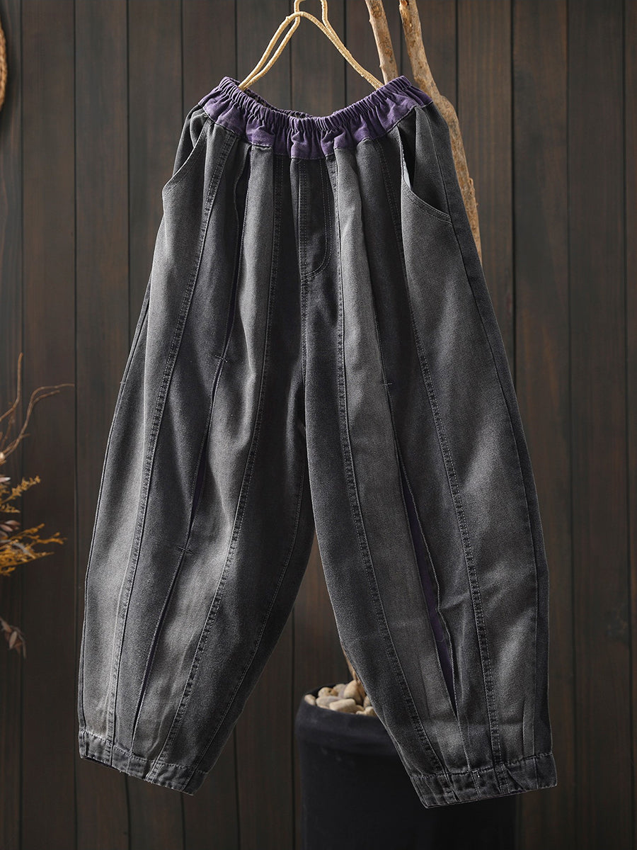 Women Spring Vintage Denim Spliced Harem Pants