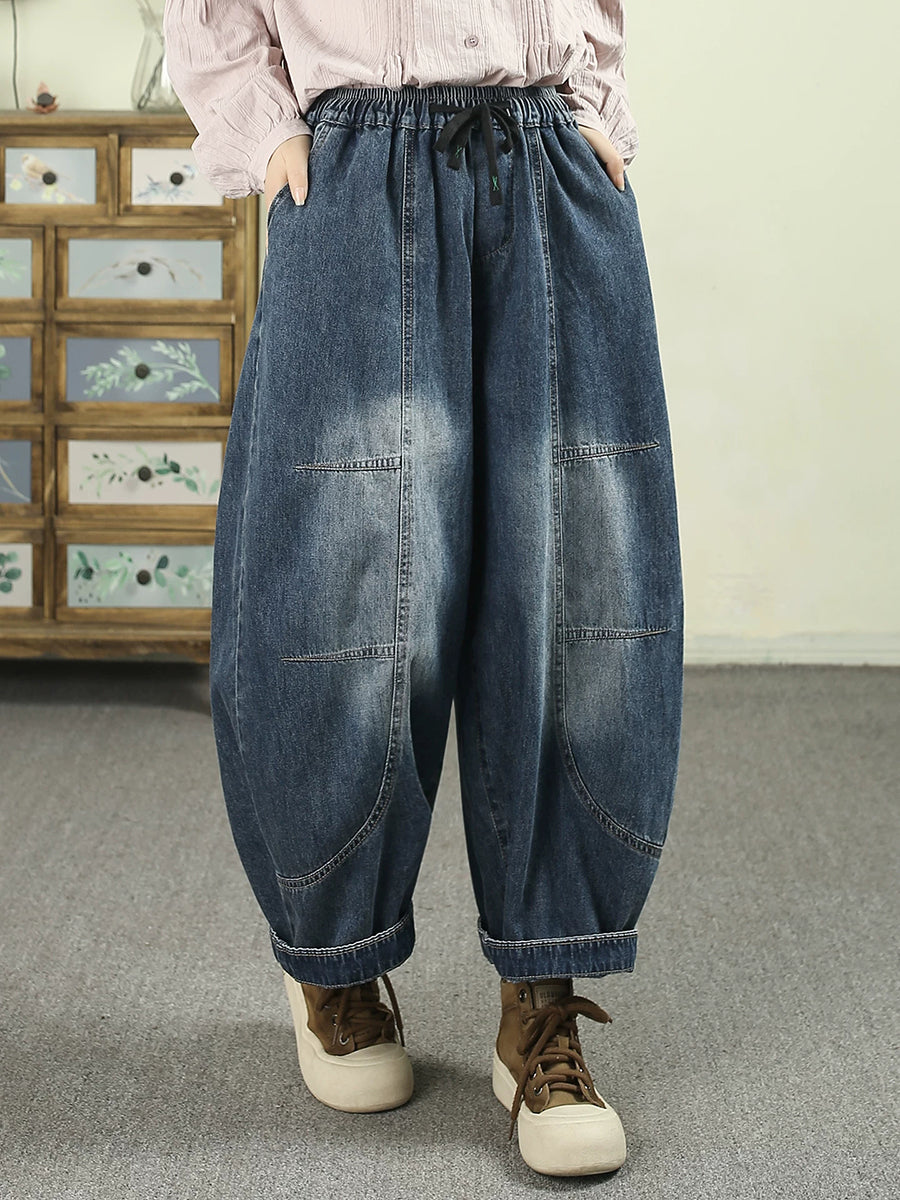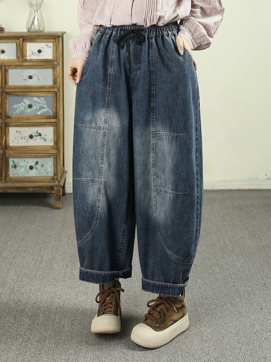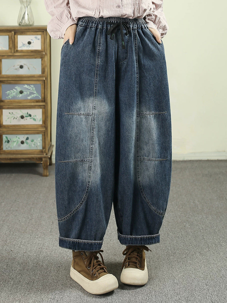 Women Spring Vintage Denim Spliced Harem Pants